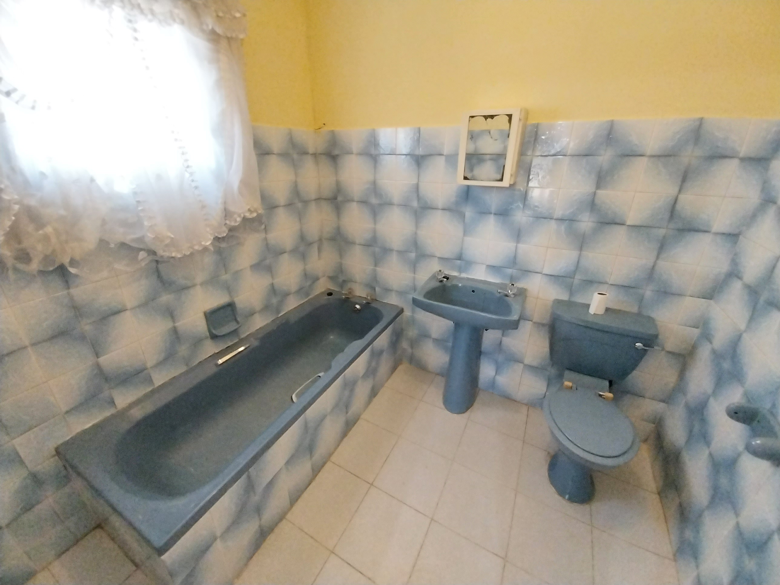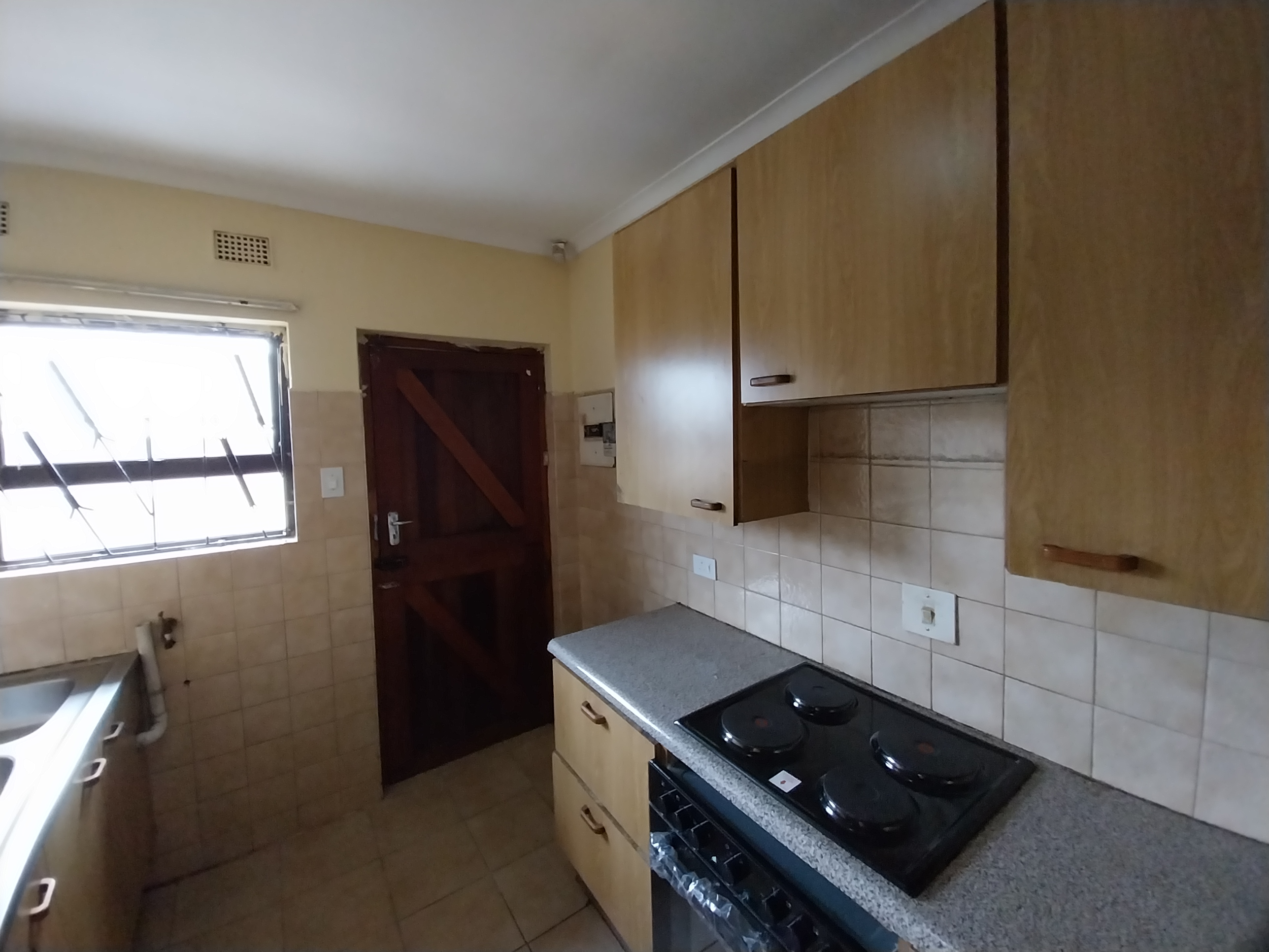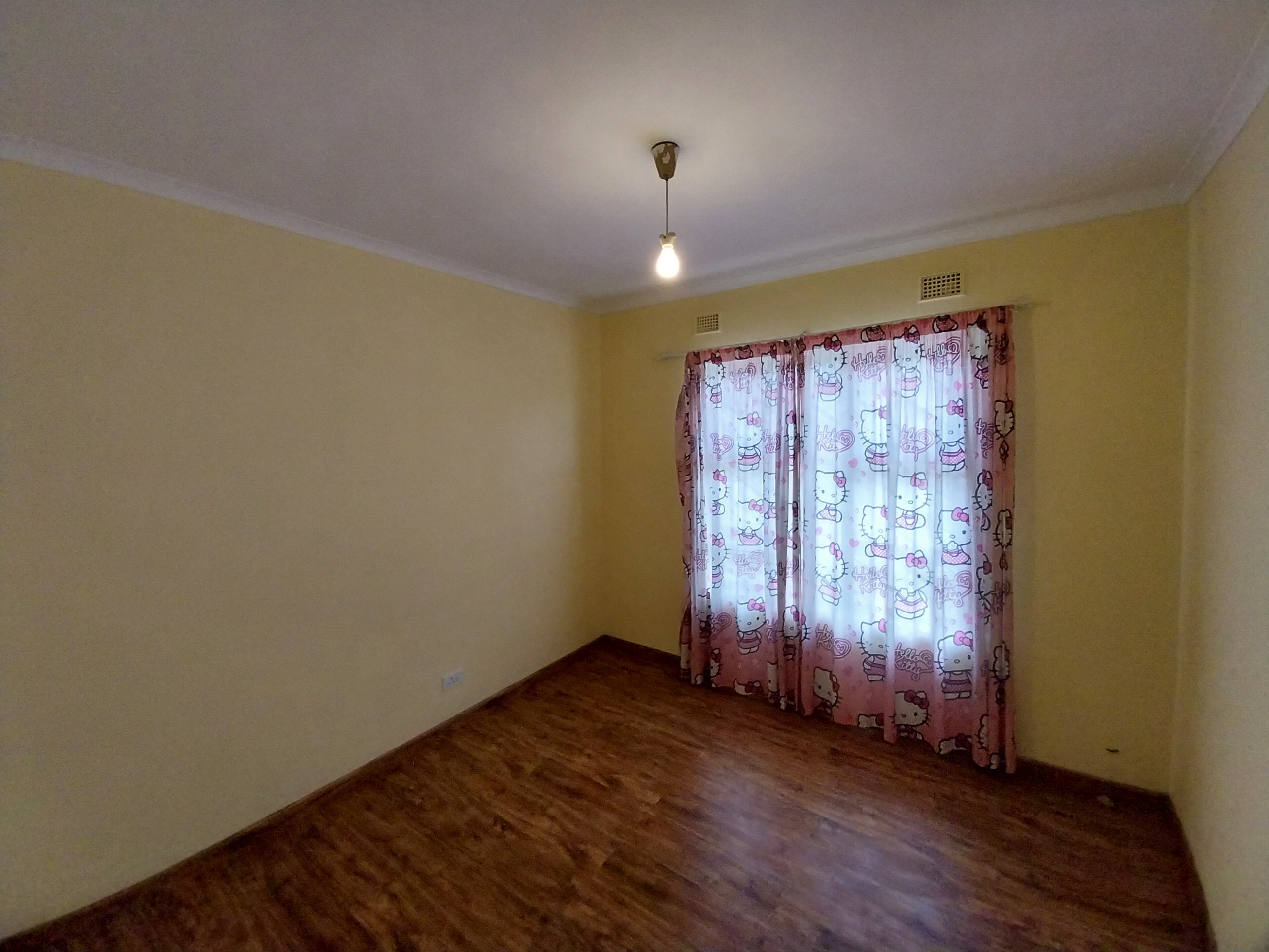 The yard is nice and tidy with a concrete pavement and a manicured garden. It's secured with a wall allaround the peremeter, two sliding gates and burglar bars on all aopening doors and windows.