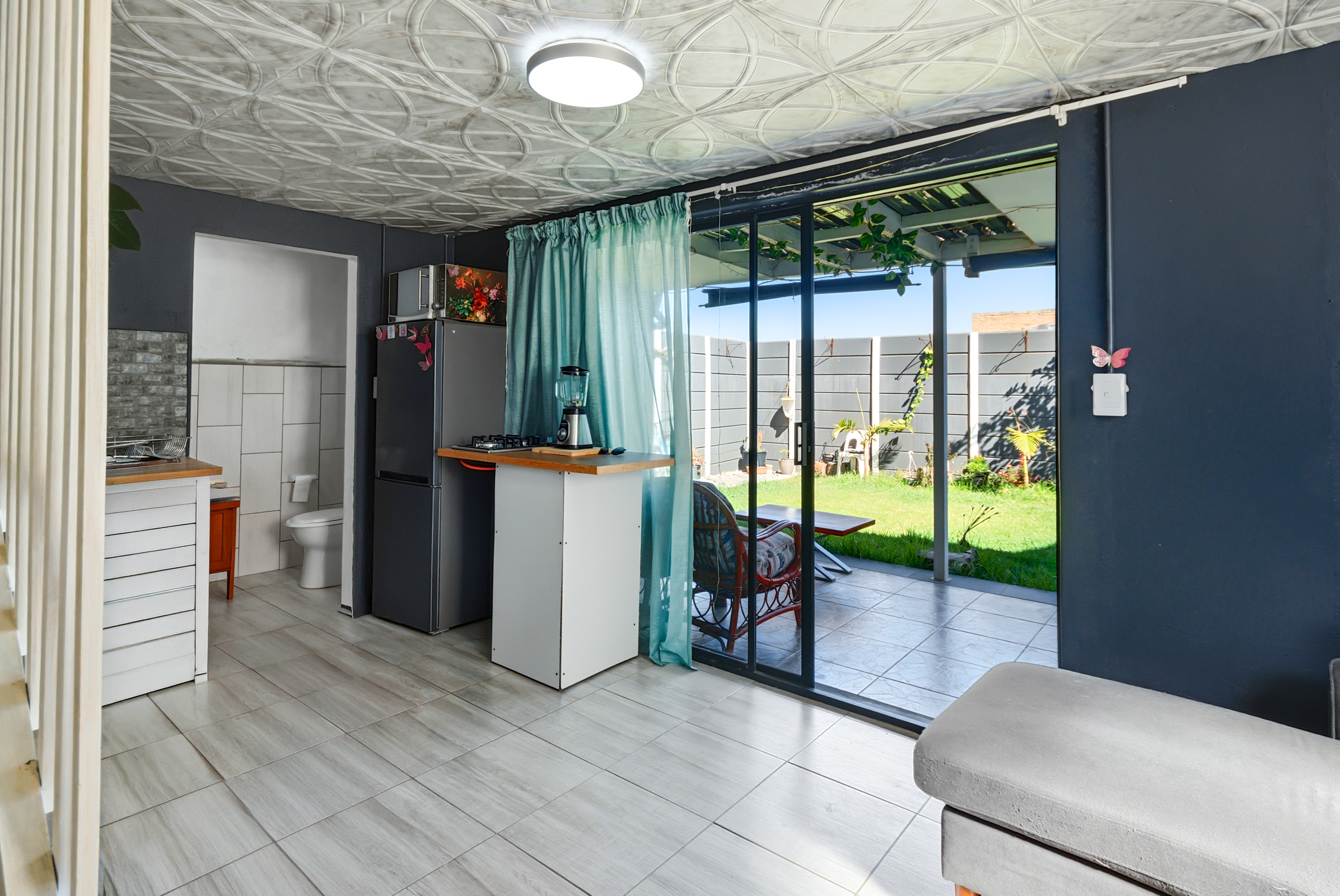 The main house comprises three bedrooms and two bathrooms, including a main en-suite with shower, toilet and basin, as well as a full family bathroom. The home features a well-equipped open-plan kitchen, lounge, and dining area, offering practical everyday living.