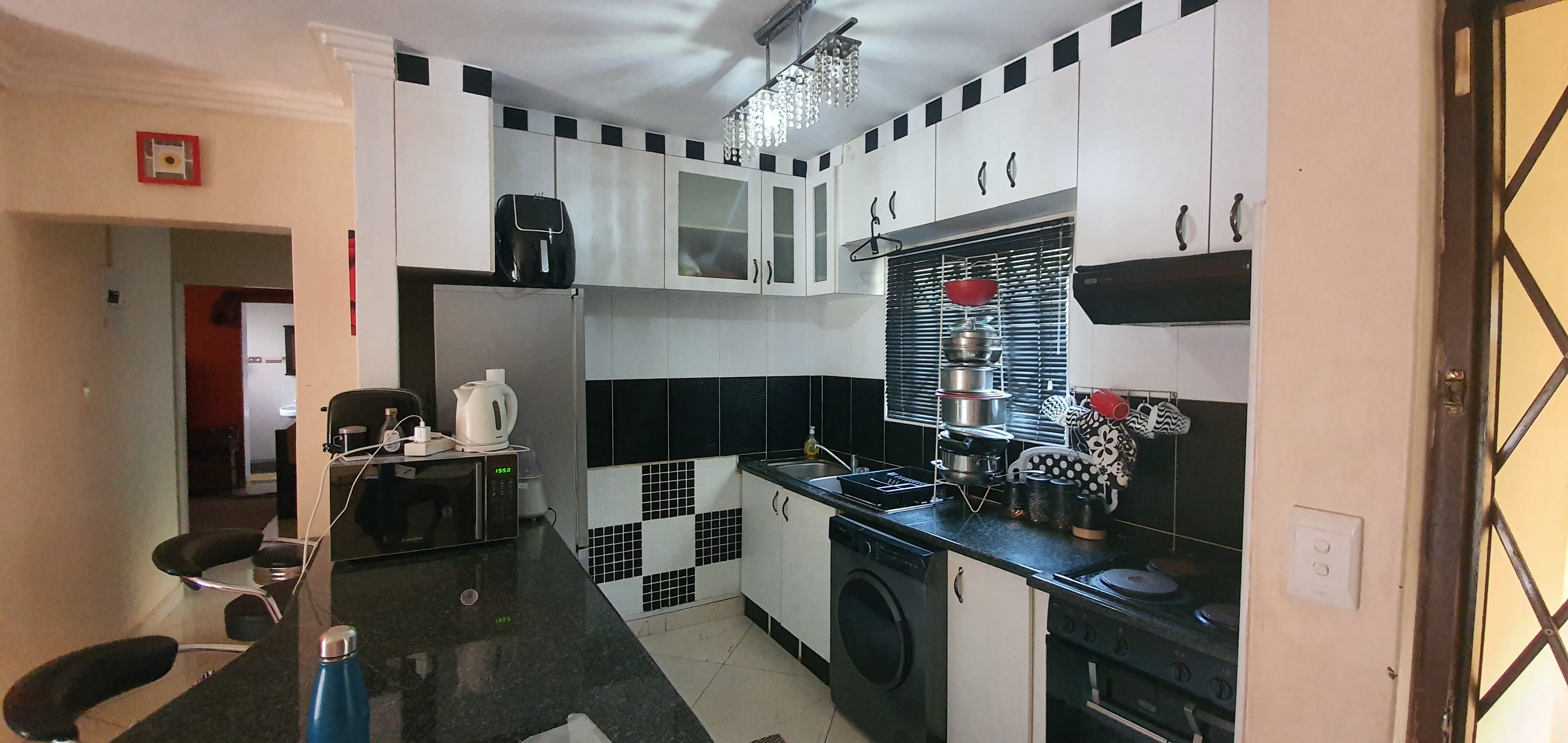 Kitchen: Fully equipped modern kitchen with appliances, ample storage and breakfast counter.