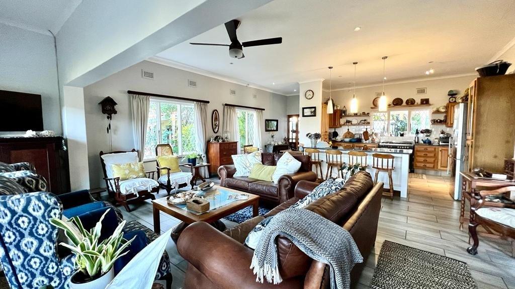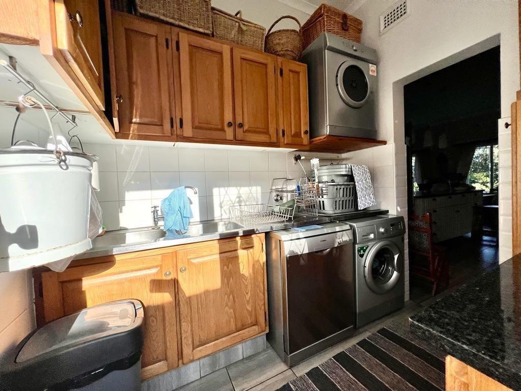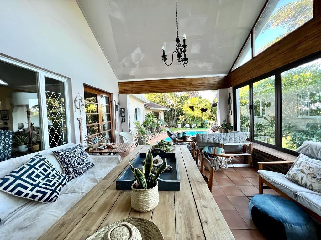 The main house boasts 4 bedrooms and 2 bathrooms, the main bedroom has a full en-suite bathroom and the main bedroom also leads out onto the pool area. All the bedrooms are large and spacious with built in cupboards and they have fans. There is a spacious entrance hall leading into an open plan kitchen with centre island, gas hob, ample cupboard space and laundry and scullery area. The open plan dining and lounge area lead out to a family room or entertainment room which leads out onto the well manicured garden and sparkling pool area.