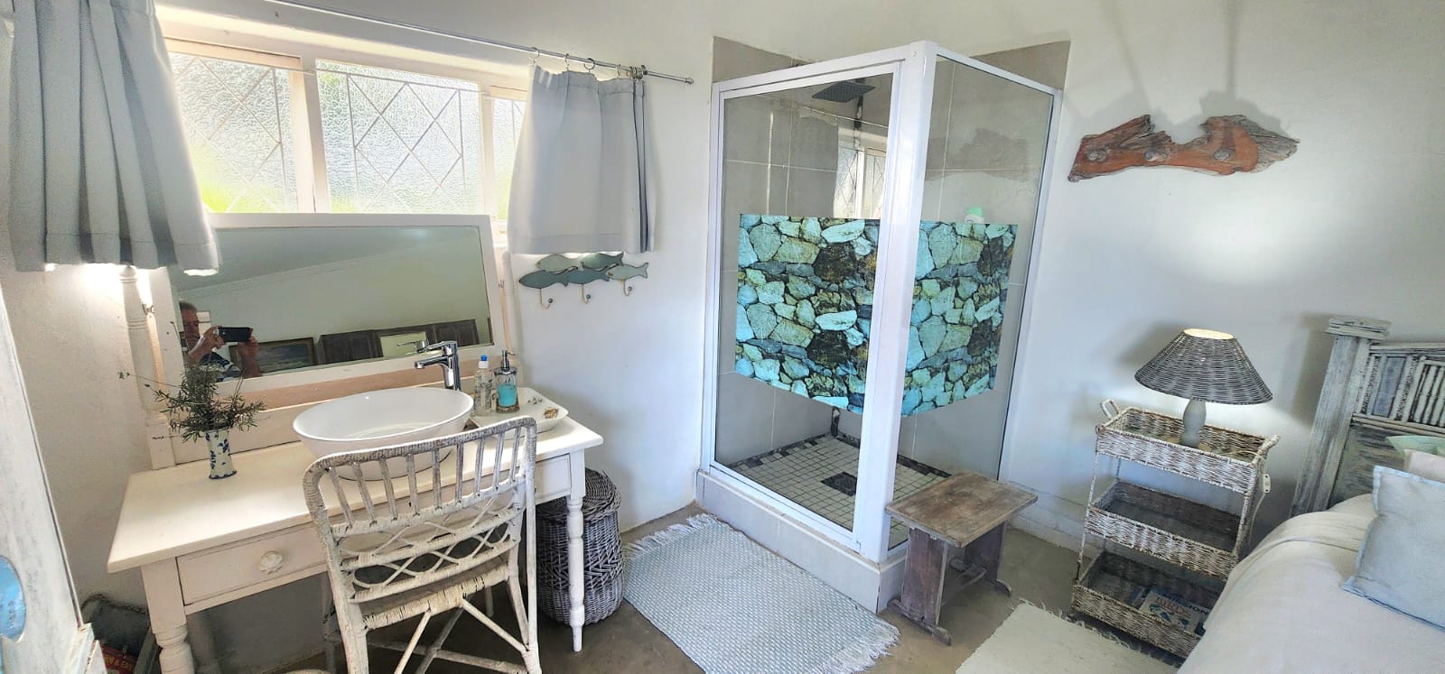 The main home has large covered patios with lovely ocean views, a covered entertainment area, a fire pit and a stunning swimming pool. From the patio one enters the large open plan living area comprising a lounge, dining area and funky kitchen. Off this area is the first room, which could be used as a study or remain as a bedroom, a further 3 bedrooms (one having an ensuite bathroom and a private lounge) and finally at the end of the passage is a large guest suite, with French doors opening to a patio overlooking the ocean and garden, plus an open plan bathroom. Lovely gardens with amazing shrubbery, plenty of secure parking, water storage tanks and an inverter complete the picture.