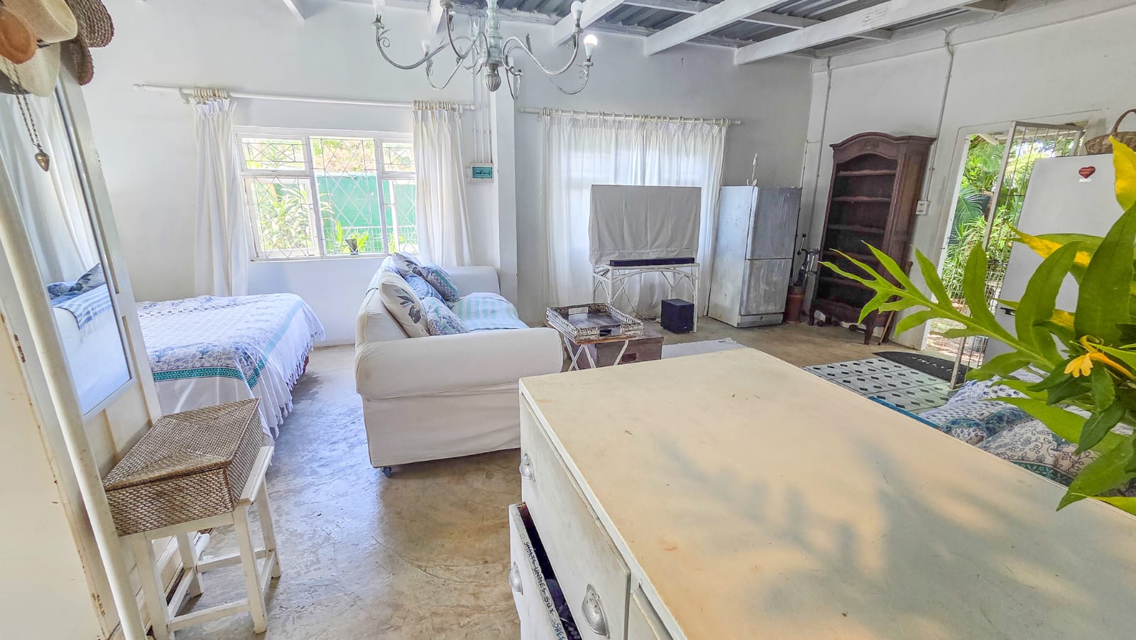The property also includes a self-contained cottage with an open-plan layout comprising a lounge, dining area, kitchenette, built-in cupboards, shower, and toilet—perfect for guests, extended family, or rental income.