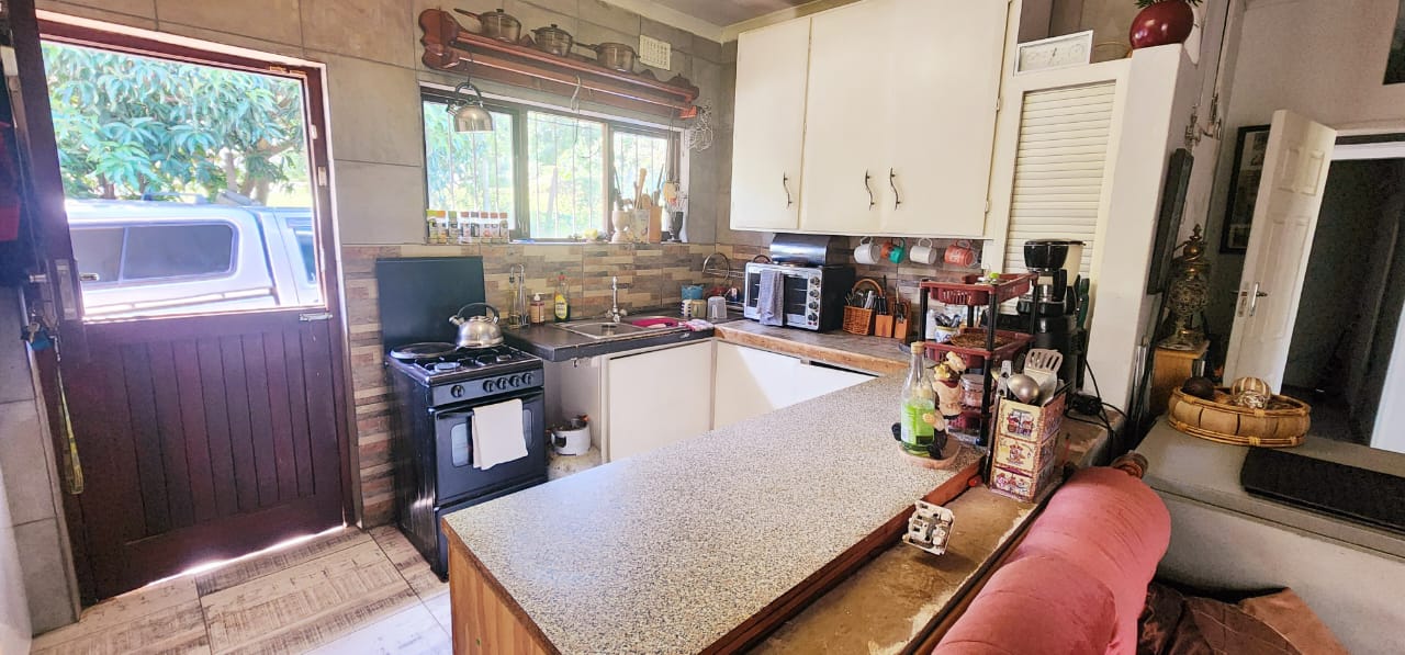 Situated in a quiet area of Southport, within walking distance to the main beach with restaurant, picnic areas, lifeguards and tidal pool. The main home consists of an open plan lounge, dining and kitchen, which open to the front expansive covered deck offering views over the neat treed garden. There are 3 bedrooms and one bathroom consisting of a large open shower, basin and toilet. The main bedroom is large and has a door to the front deck. The flat is completely separate and has a covered patio, kitchen, lounge, bathroom and 2 bedrooms, the main bedroom is extra large and has a walk in closet. In the garden is a large covered veggie garden, water tanks plumbed, the property is walled on 3 sides with a wire fence on the fourth. The main house has a new IBR roof and there are gas geysers and security is in place. This property is perfect for earning extra income from the rental of the flat. Please call ANYTIME to discuss further and arrange a viewing.