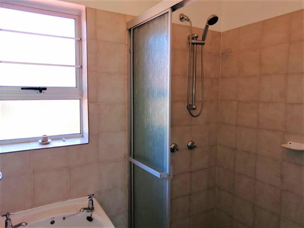 There is also 3 bedrooms, with the main bedroom having a private balcony and a sea view. All 3 bedrooms have built in cupboards. There is a bathroom with bath, basin and toilet, as well as separate shower and basin. Downstairs is a guest toilet with basin.
