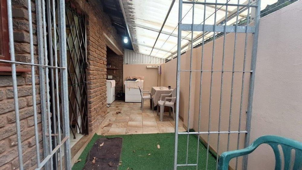 This property also prioritizes safety and convenience. Additional features include a backup water storage tank, an advanced alarm system with CCTV monitoring the perimeter, burglar bars on all windows, and security gates on every doorway. For effortless access, one of the garage's roll-up doors is motorized.