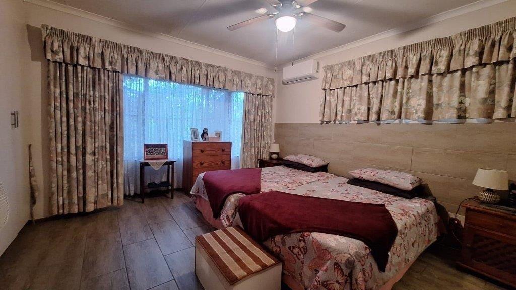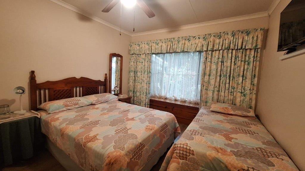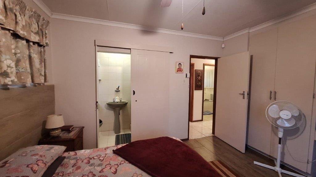 The air-conditioned main bedroom features an en-suite bathroom for your privacy and convenience. The remaining two bedrooms, serviced by a second well-appointed bathroom, are equipped with ceiling fans for added comfort. All bedrooms include built-in cupboards, with bay windows in two rooms adding character and natural light.