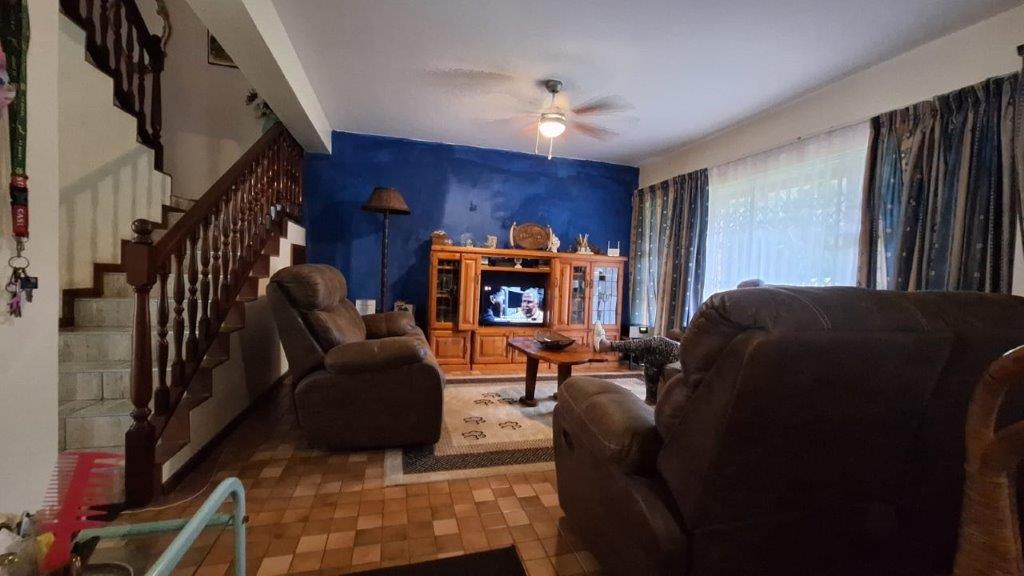 The unit boasts three well-sized bedrooms, all with built-in cupboards, ceiling fans, and tiled floors. Each bedroom easily fits a double bed, while the main bedroom opens onto a private balcony, perfect for morning coffee or evening relaxation. There are two bathrooms upstairs, plus a guest toilet on the lower level for added convenience.