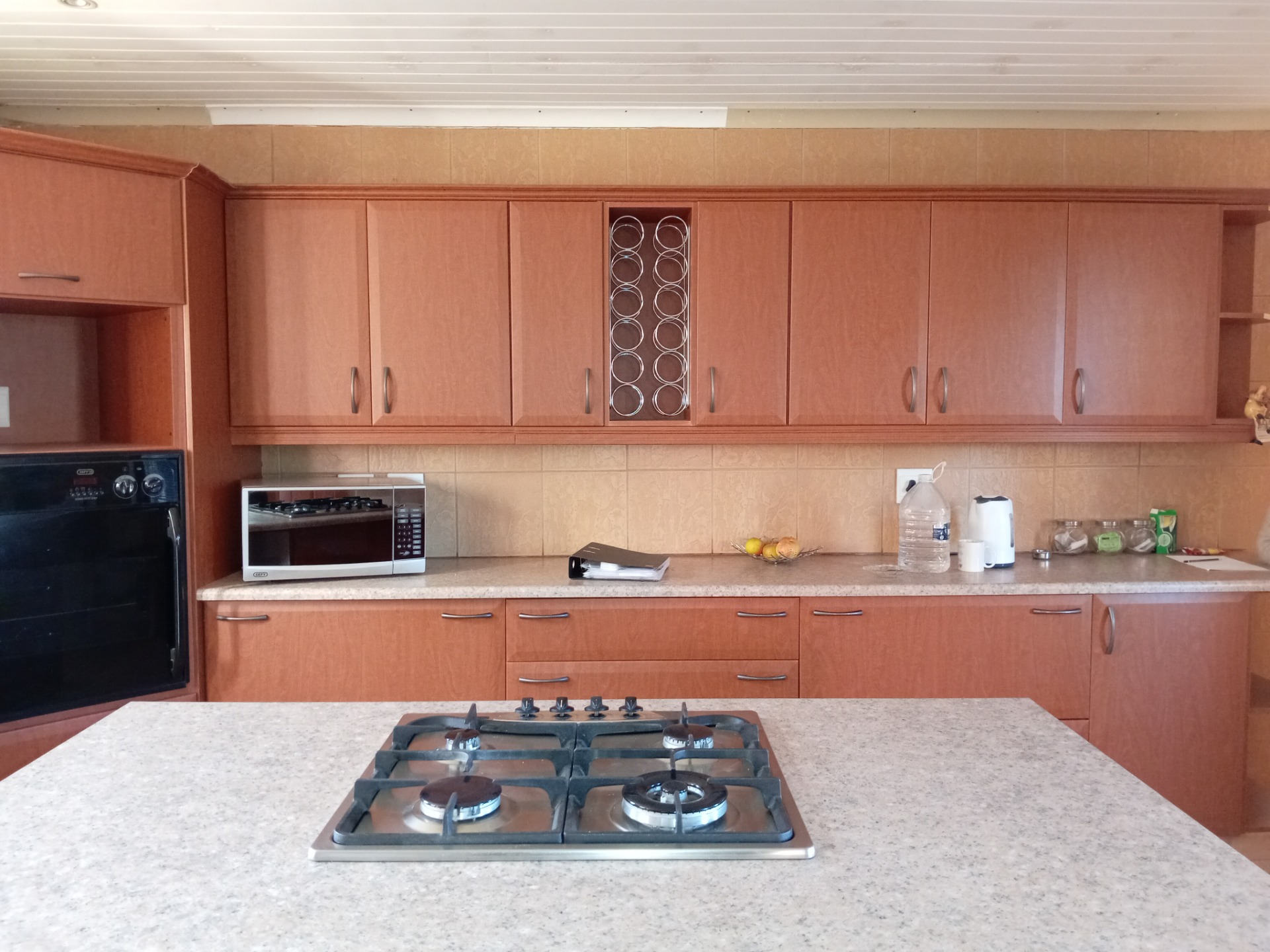 - Culinary delight kitchen equipped with ample countertop space, built-in cupboards, a gas hob, and eye-level oven.