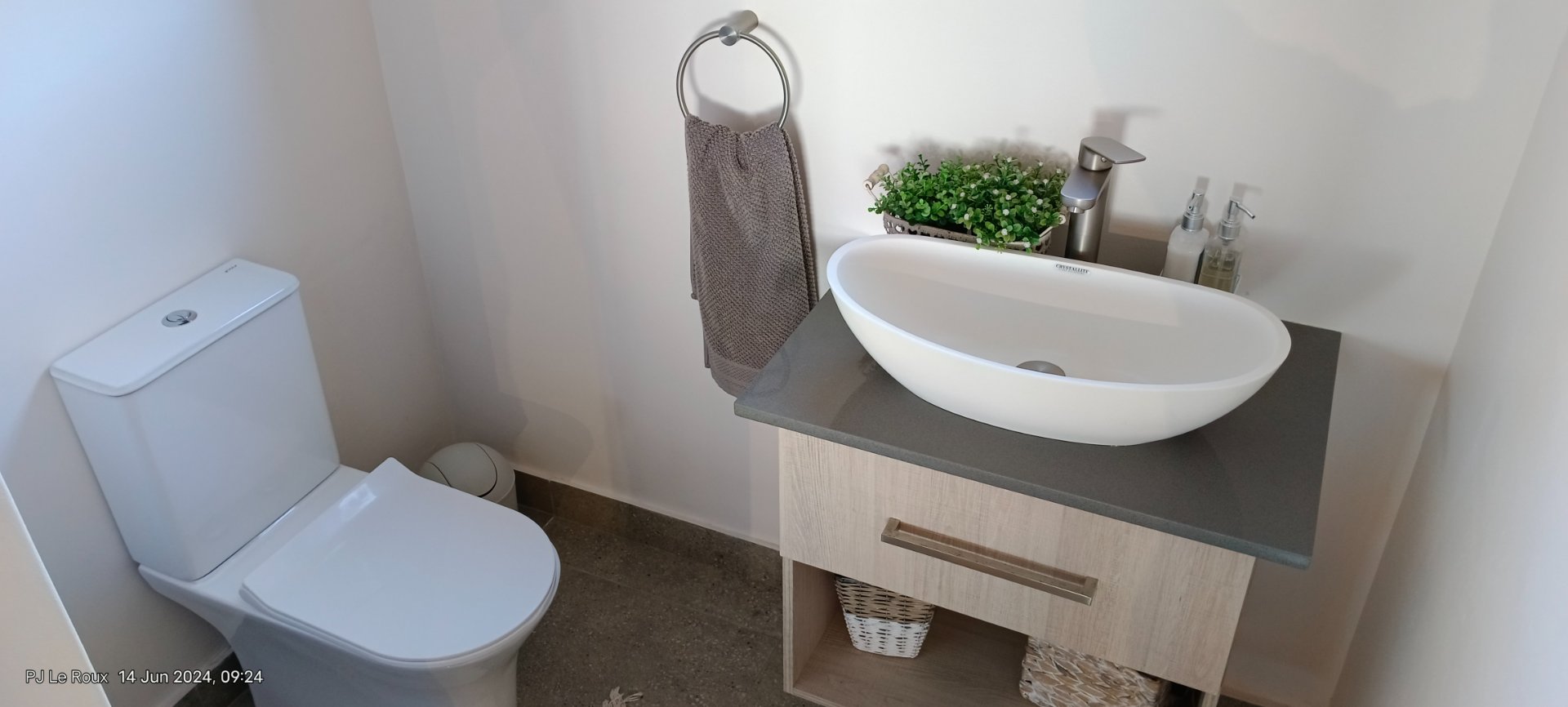 With panoramic ocean views, large windows, a spacious terrace, and an open floor plan, you can enjoy the waves crashing against the shore. The grand entrance leads to a stylish interior with high-quality fixtures and a tranquil ambiance, complemented by a convenient guest bathroom.