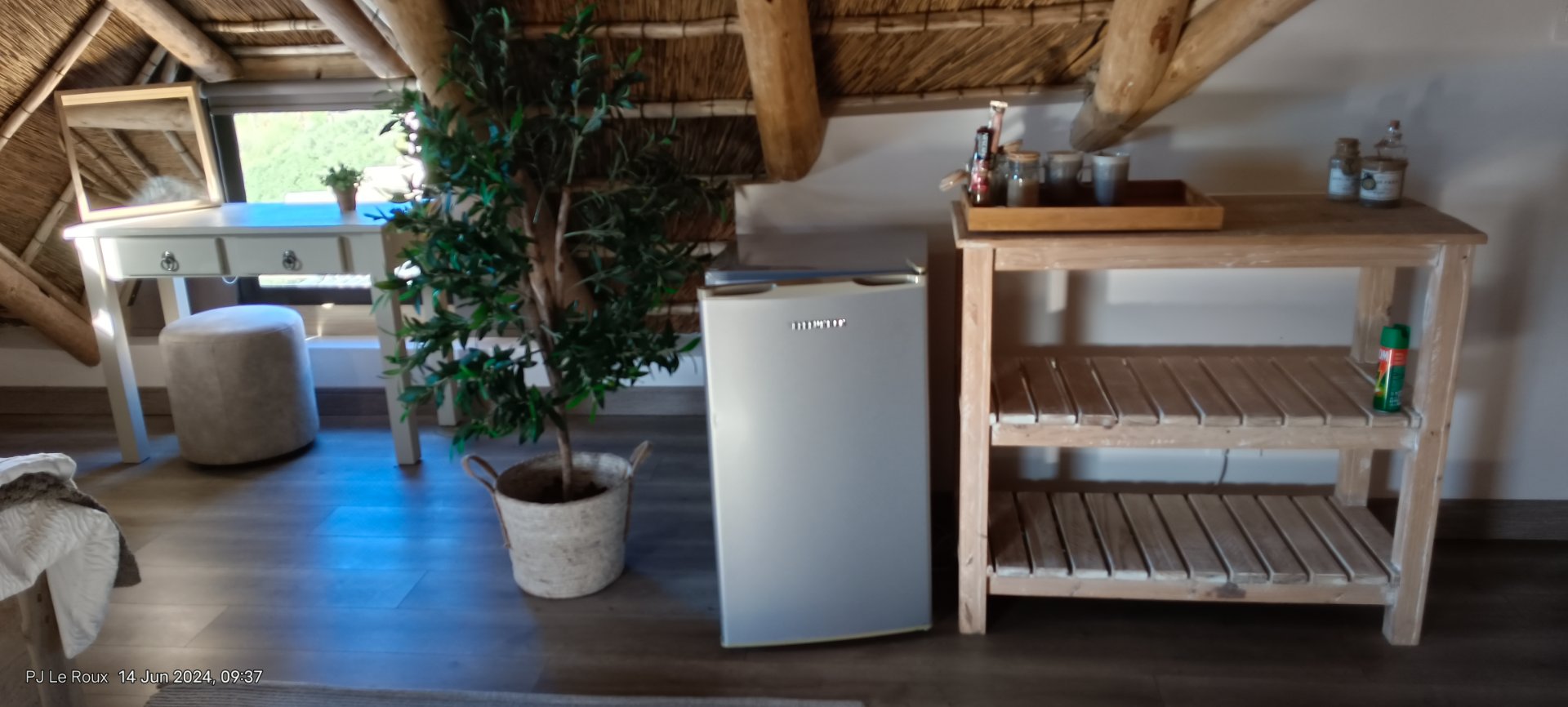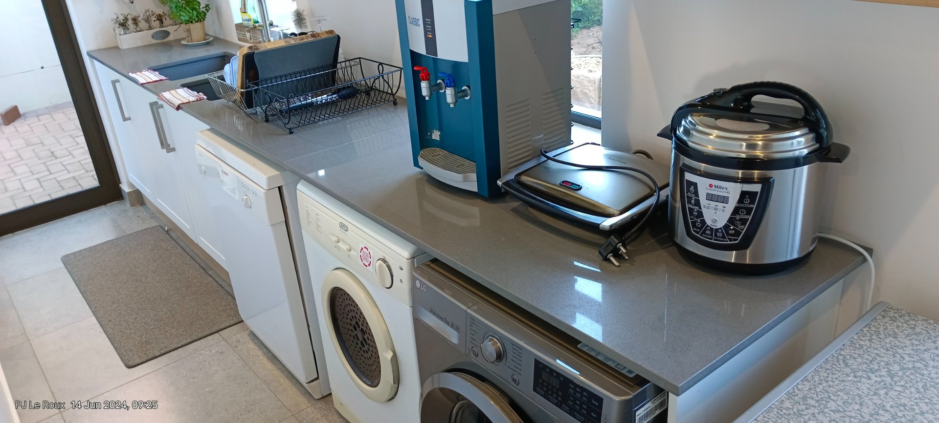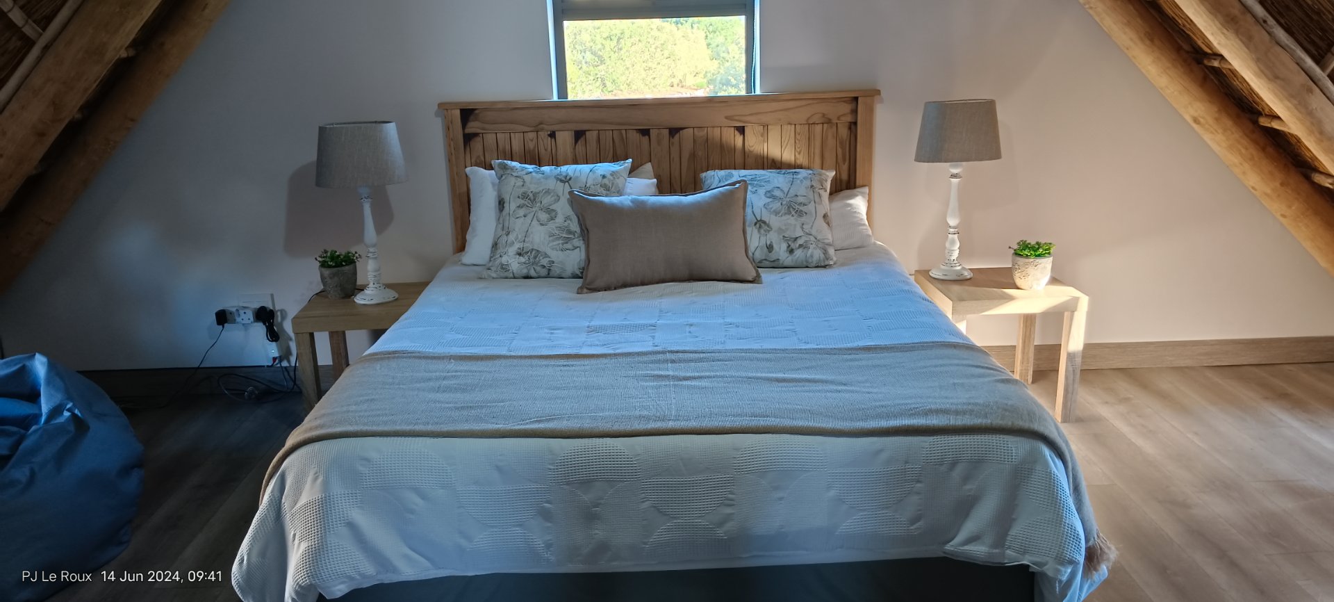 Located in a tranquil cul-de-sac, this home provides privacy and serenity. Additional features include cozy floors in the bedrooms, ample storage, and a 1000-liter water tank. An off-the-grid system ensures sustainable energy solutions.