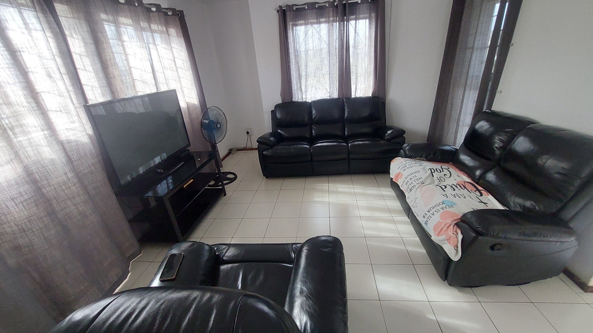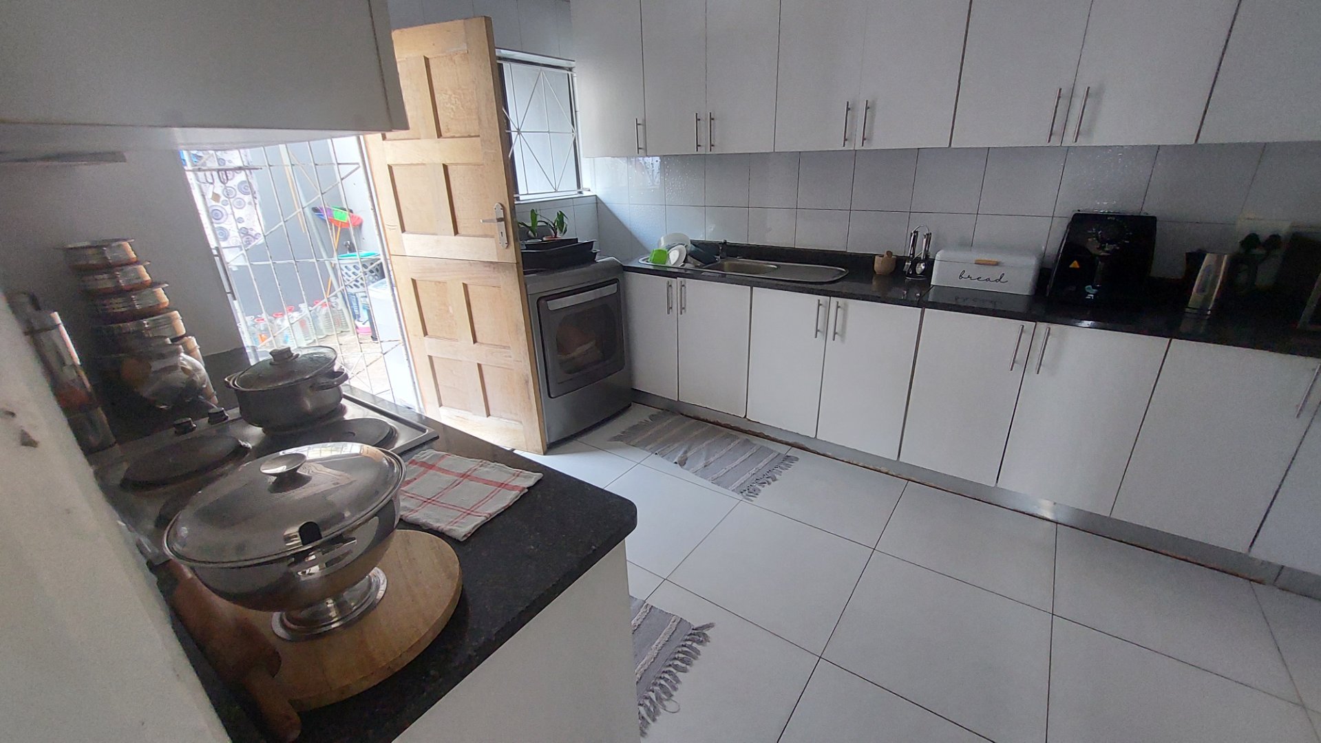 This home consists of three bedrooms with modern built in cupboards. Bathroom comes with bathtub fitted with shower device. Lounge and dining open plan is very spacious. Kitchen is spacious and fitted with modern built in cupboards. The property space outside of the building is massive and allows for further developments.
