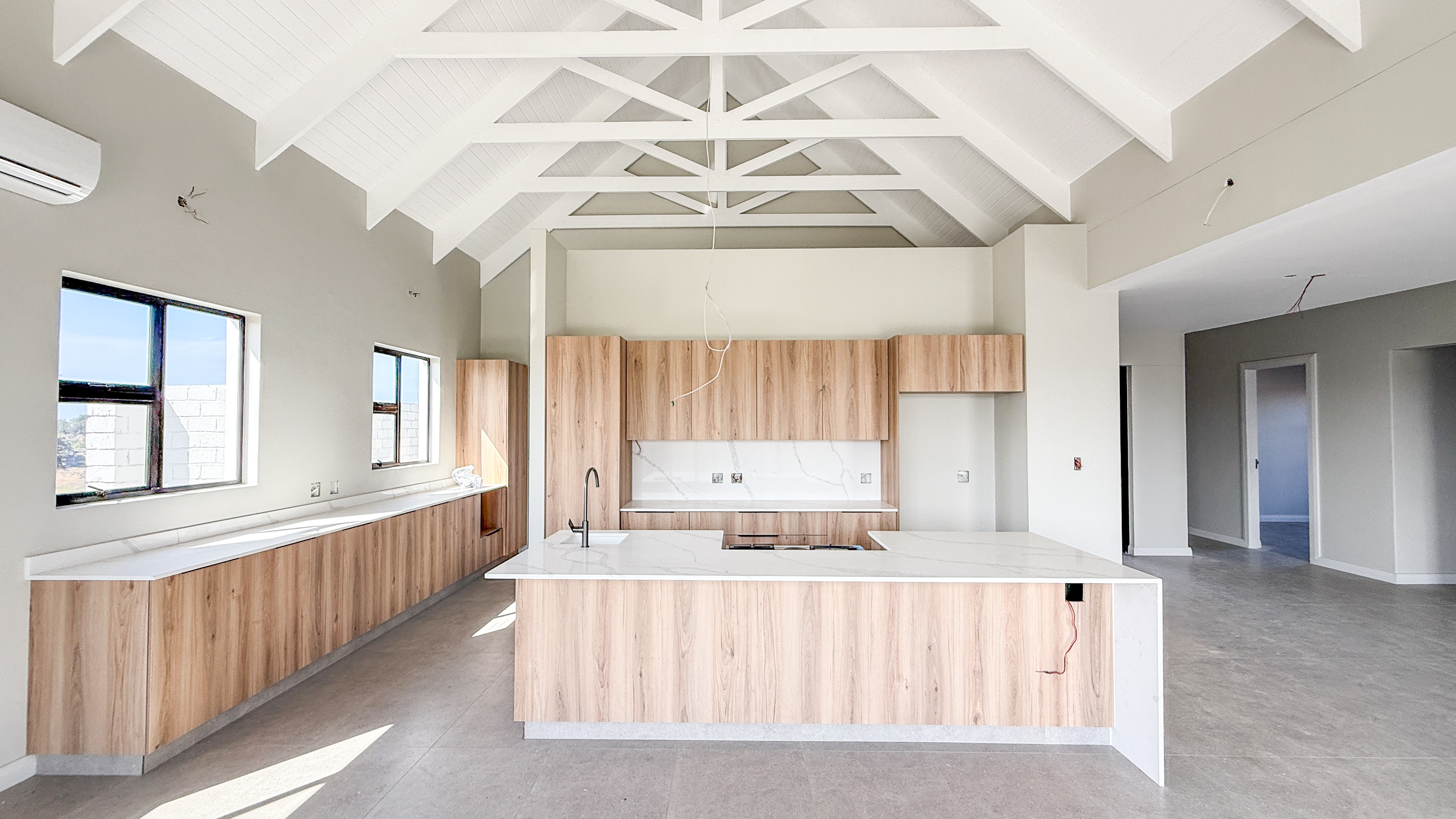 From the moment you walk in, the home feels light, airy and welcoming. High ceilings and a generous open-plan layout create effortless flow between the living areas and out onto the covered patio – the perfect spot to soak up north-facing sunsets and sweeping estate views.