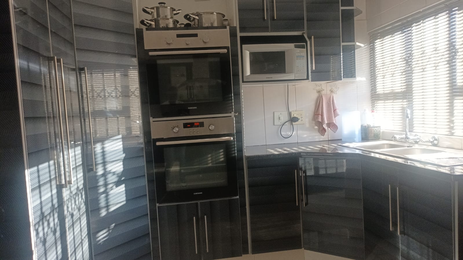 3 x fitted bedrooms main with ensuite . Bathroom toilet dinning lounge kitchen fitted single automated garage,gate automated walled paved in a quite area of Spruitview . Closer to shops and free way . A very clean house, well looked after .A dream house indeed.