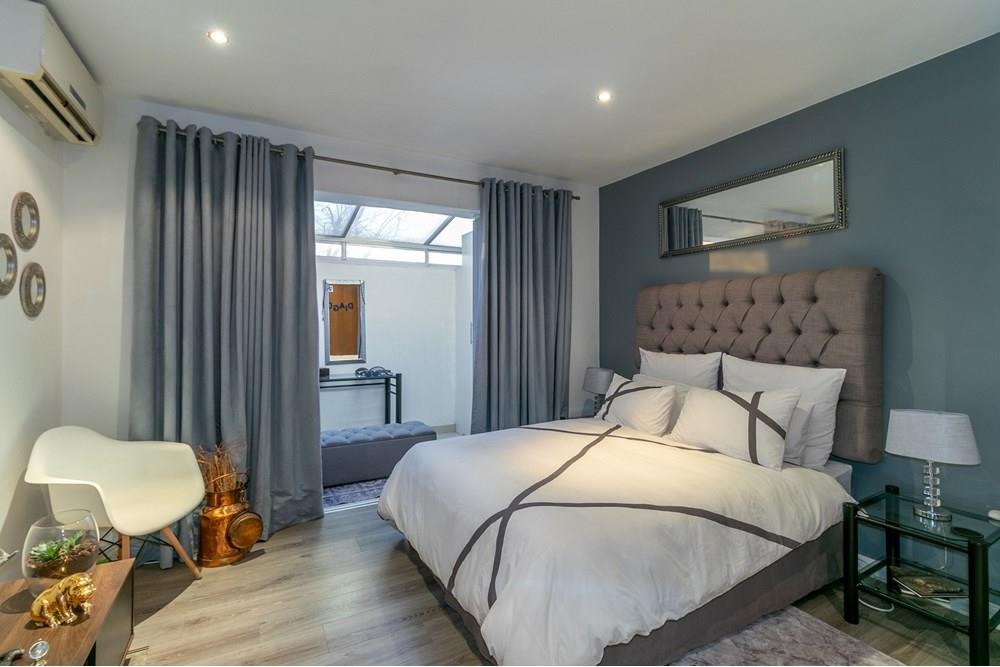 The large walk-in closet allowing for an extensive wardrobe and a stunning balcony perfect for Sunday sundowners or a romantic breakfast for two. The main room is air-conditioned and has stunning floor-to-ceiling windows, creating a serene ambience.