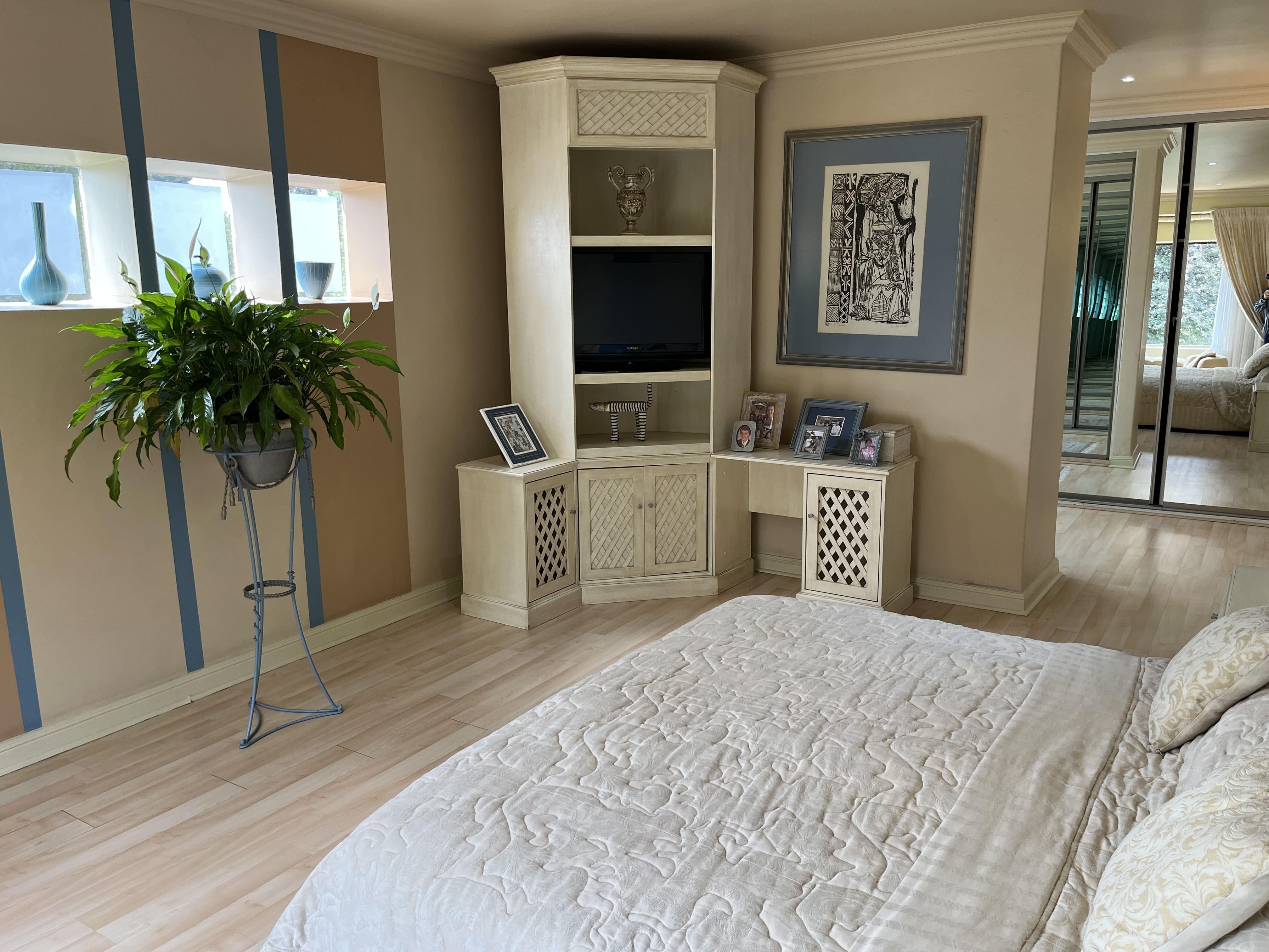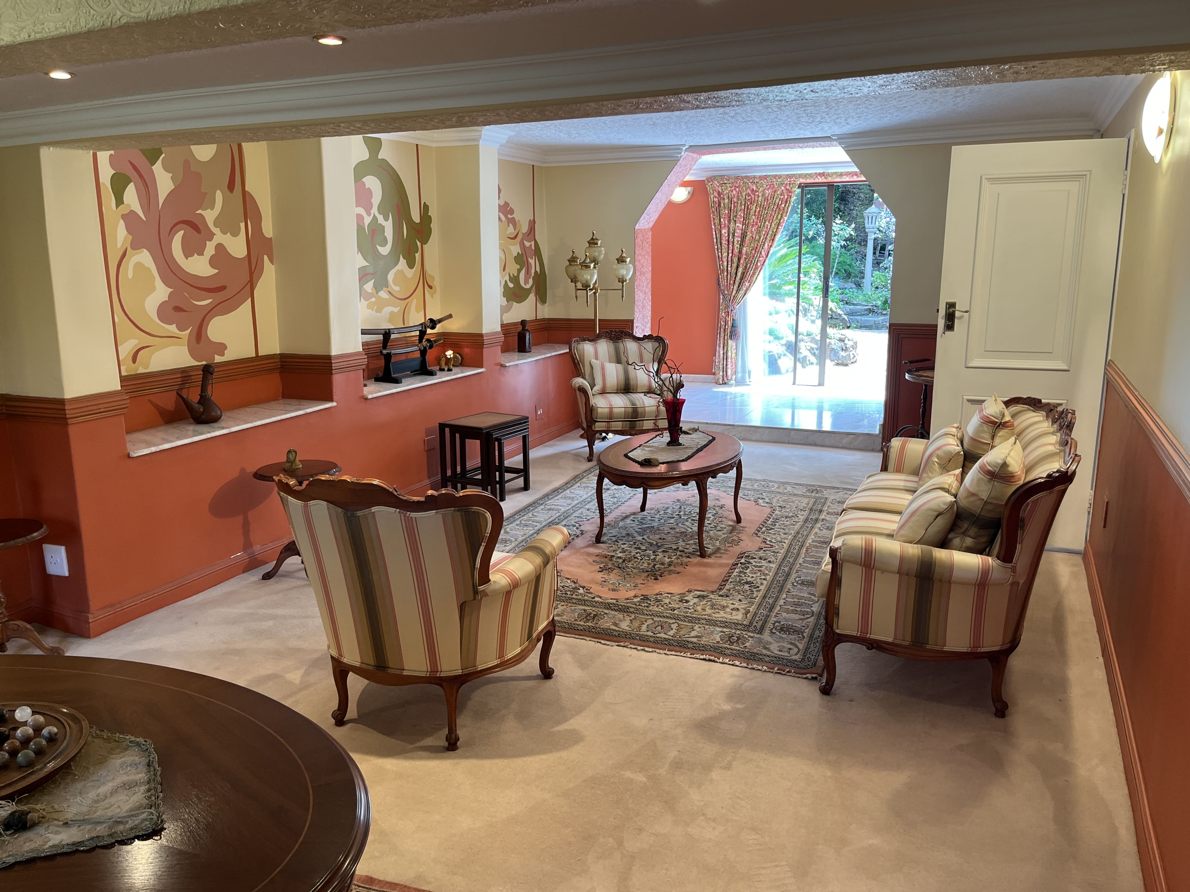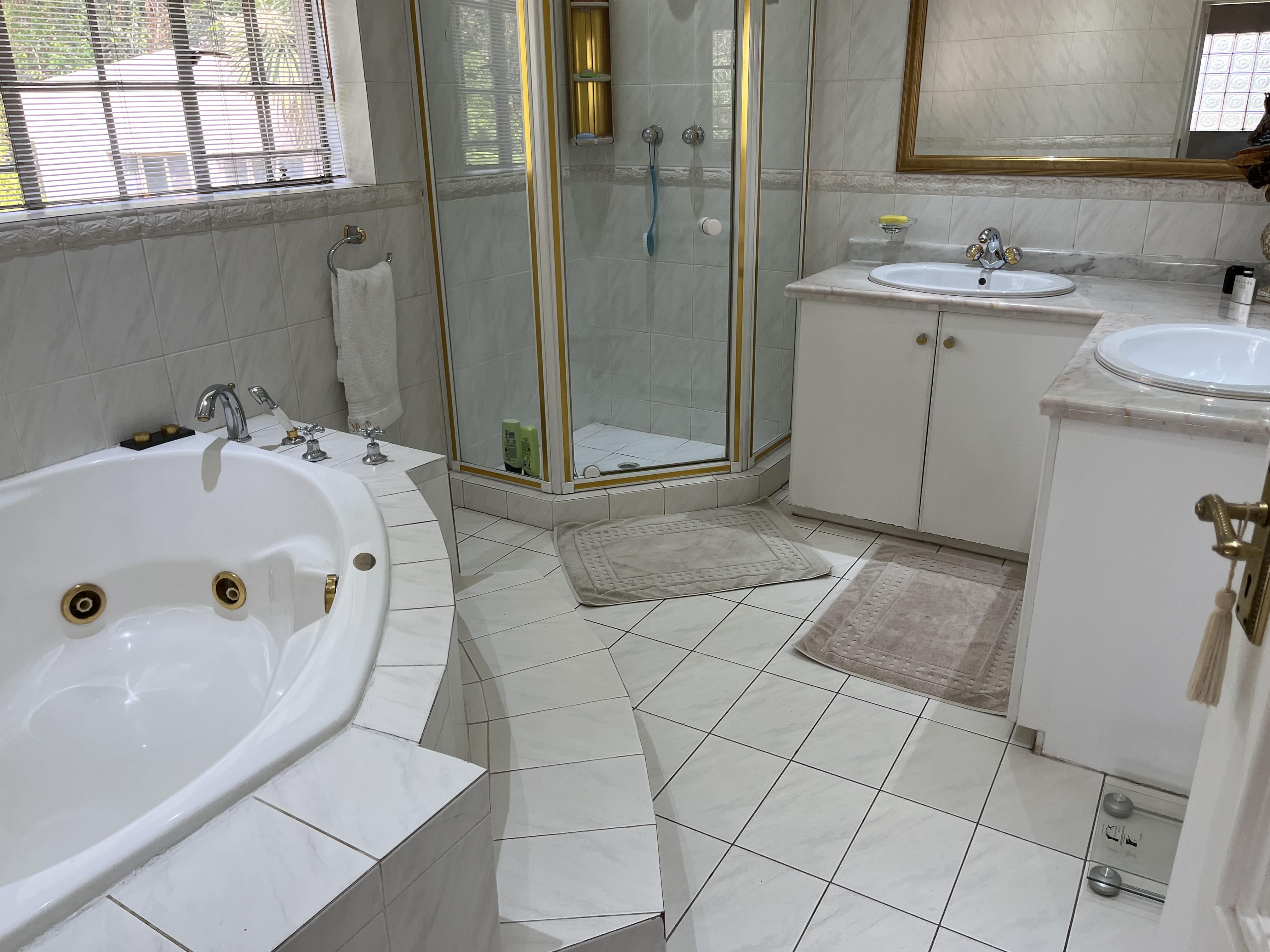 The bedroom wing comprises a 4 expansive bedrooms. The master suite: spacious, with large built-in wardrobes or walk-in closet, an ensuite bathroom with double vanity, a separate bath and shower. Windows with views of the garden.