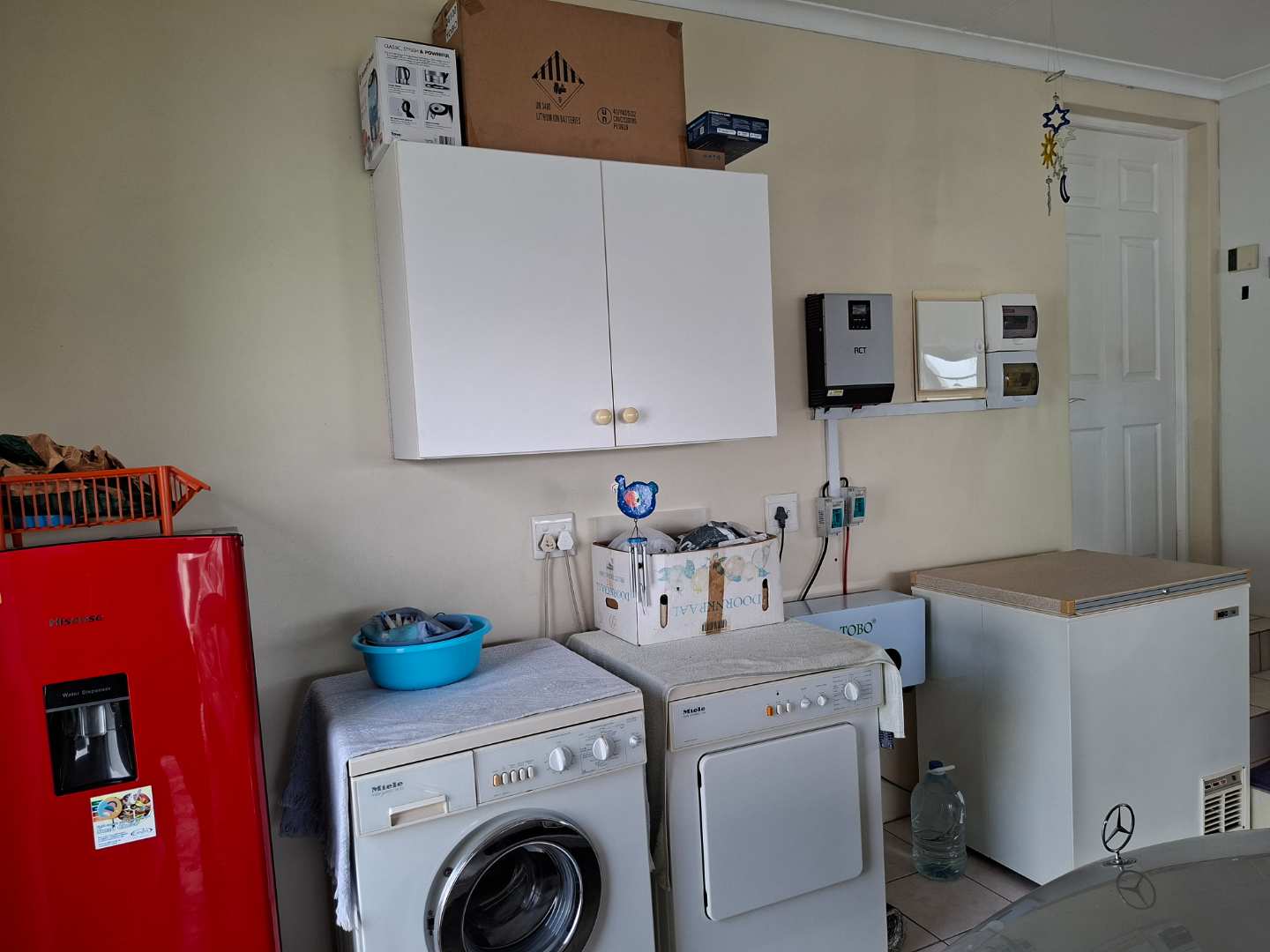 Practicality meets luxury with an inter-leading double garage that provides ample space for your washing machine, extra fridges, and additional storage needs. The home is equipped with modern amenities such as a water tank, solar panels, and an inverter, ensuring efficiency and sustainability.