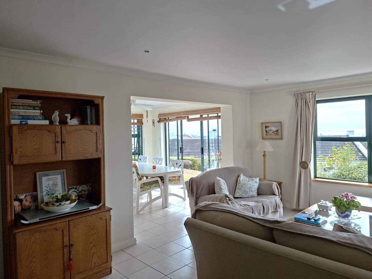 The well-appointed kitchen boasts elegant granite countertops, along with an oven and hob, making it a delight for any home chef. The open floor plan seamlessly connects the kitchen, dining room, and lounge to the enclosed patio, where you can enjoy stunning ocean views year-round. Whether you're savoring your morning coffee or unwinding with evening sundowners on the outside patio, this space is perfect for relaxation and entertainment.