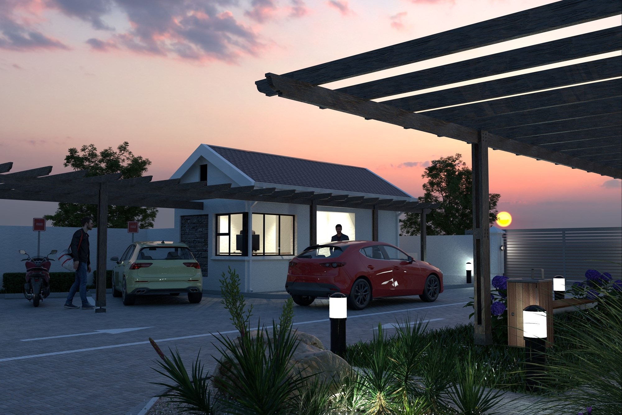 A double garage offers direct access into the kitchen for added convenience. The estate also features private access control, and brick-paved roads to ensure peace of mind for residents.