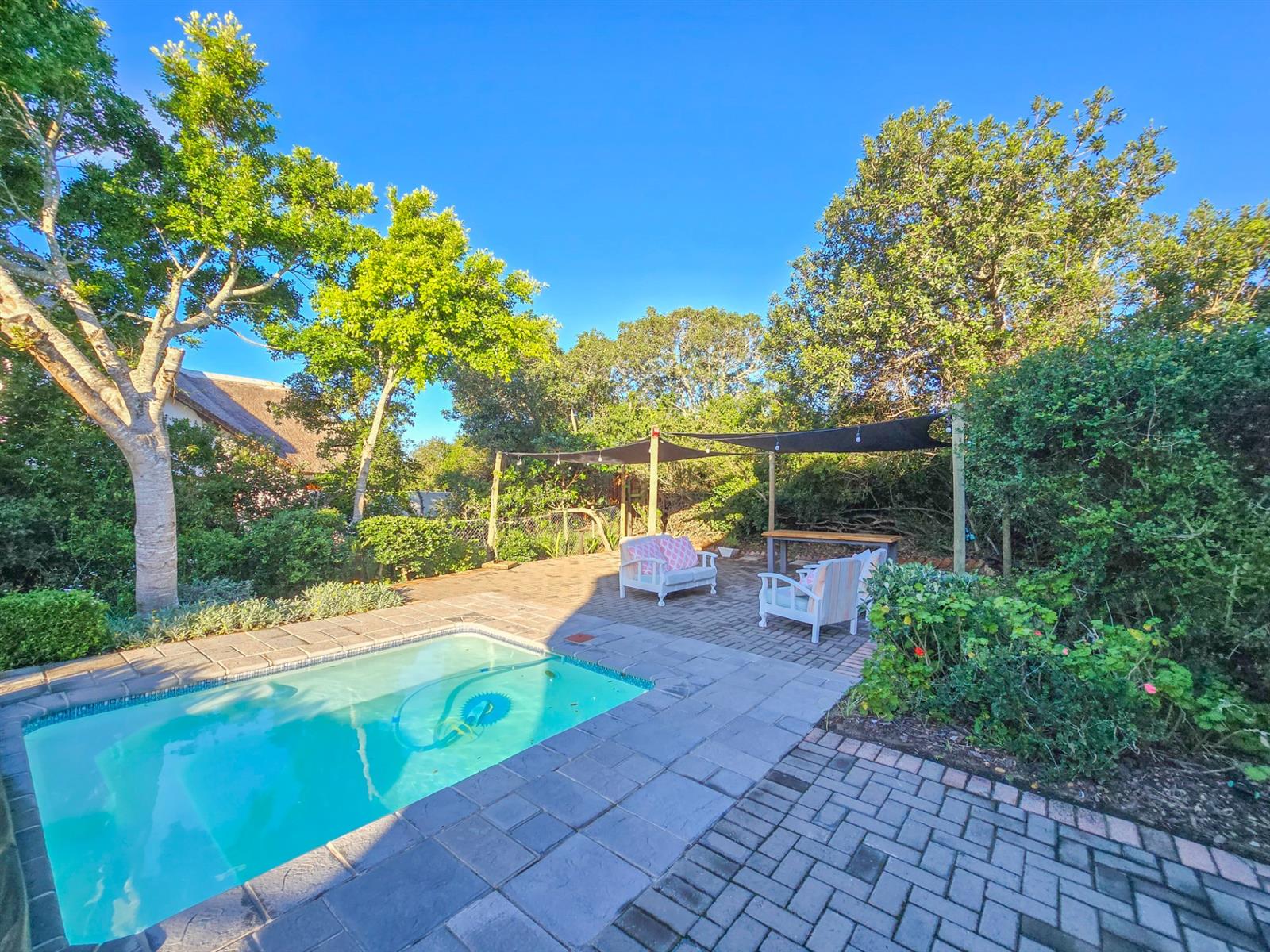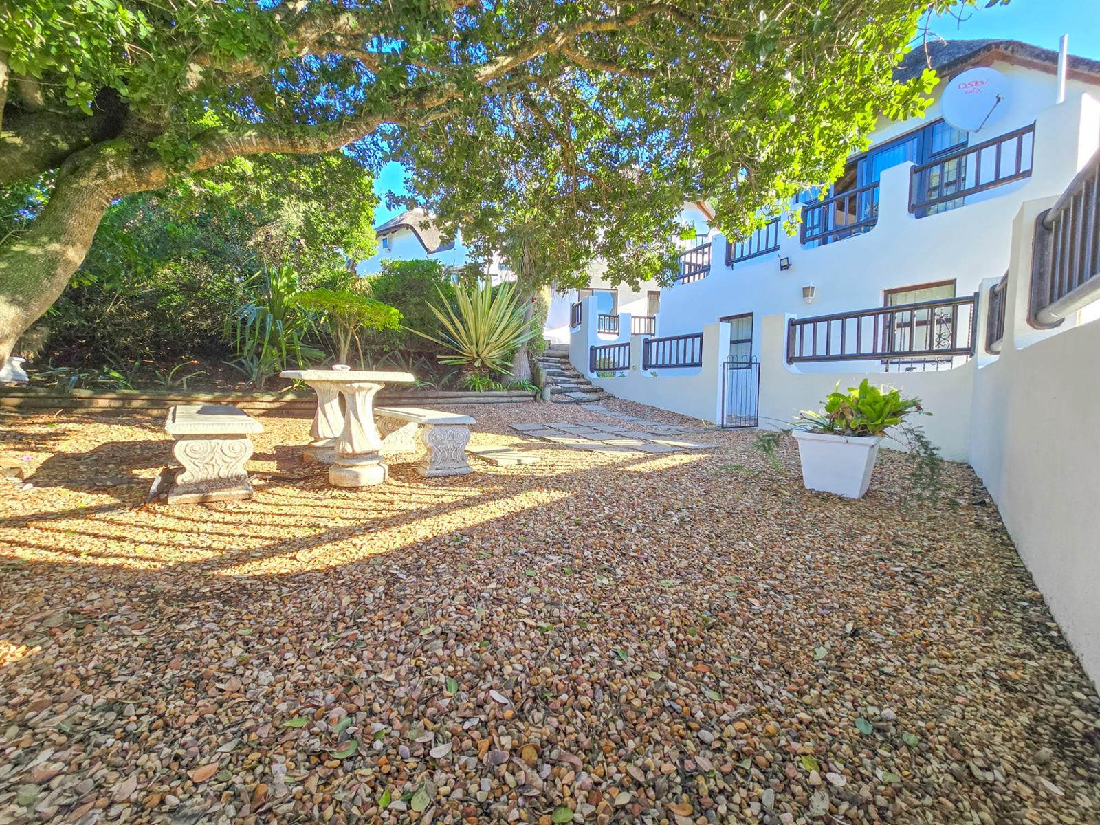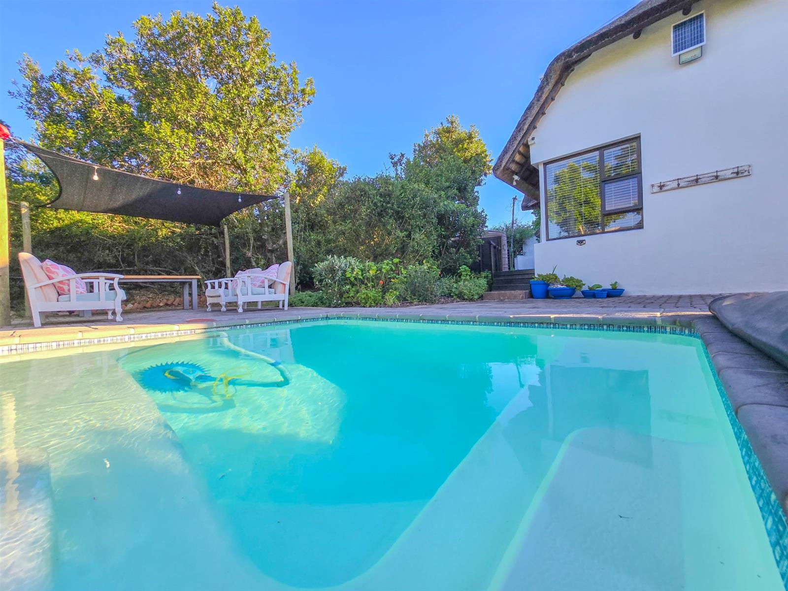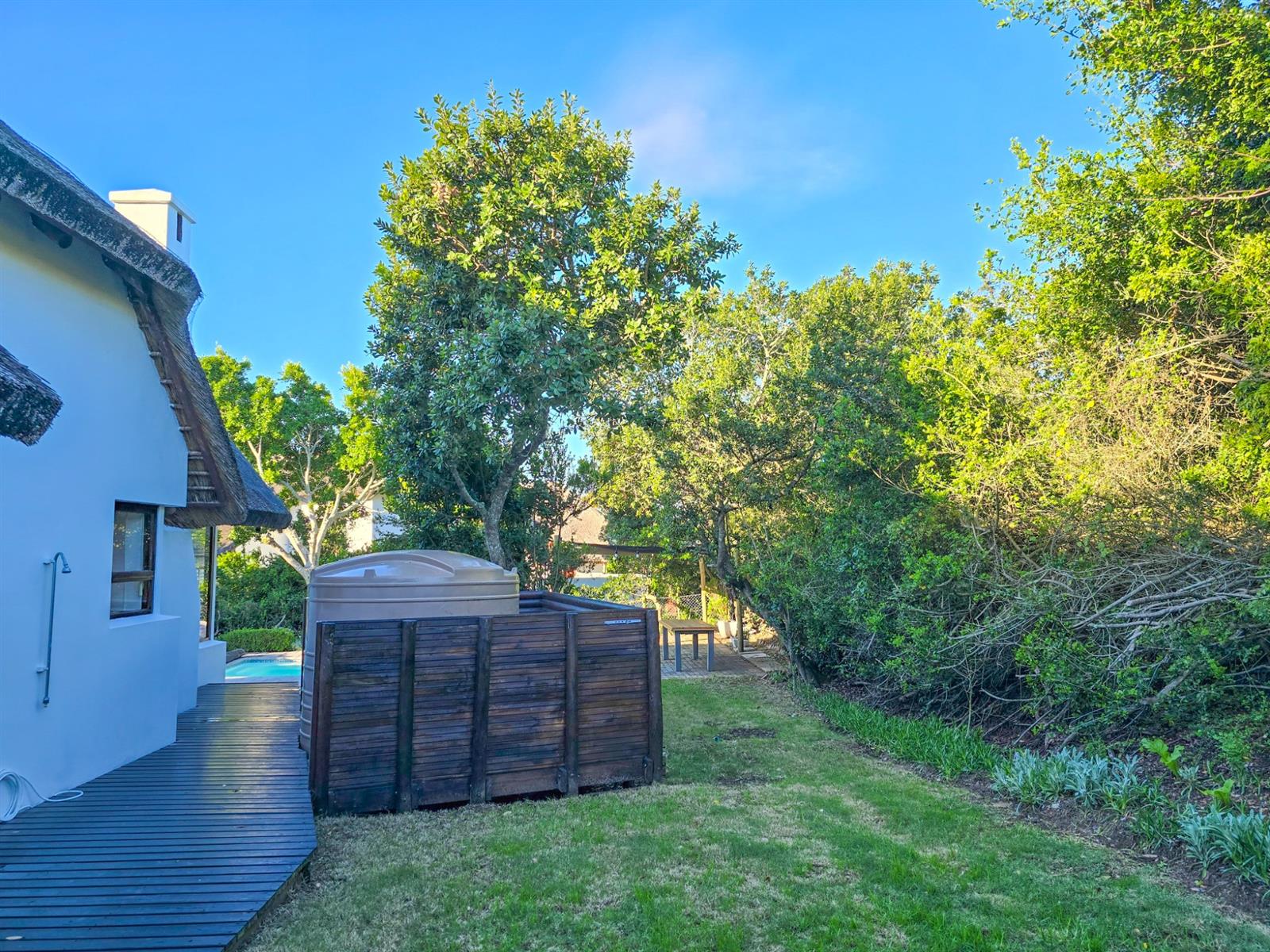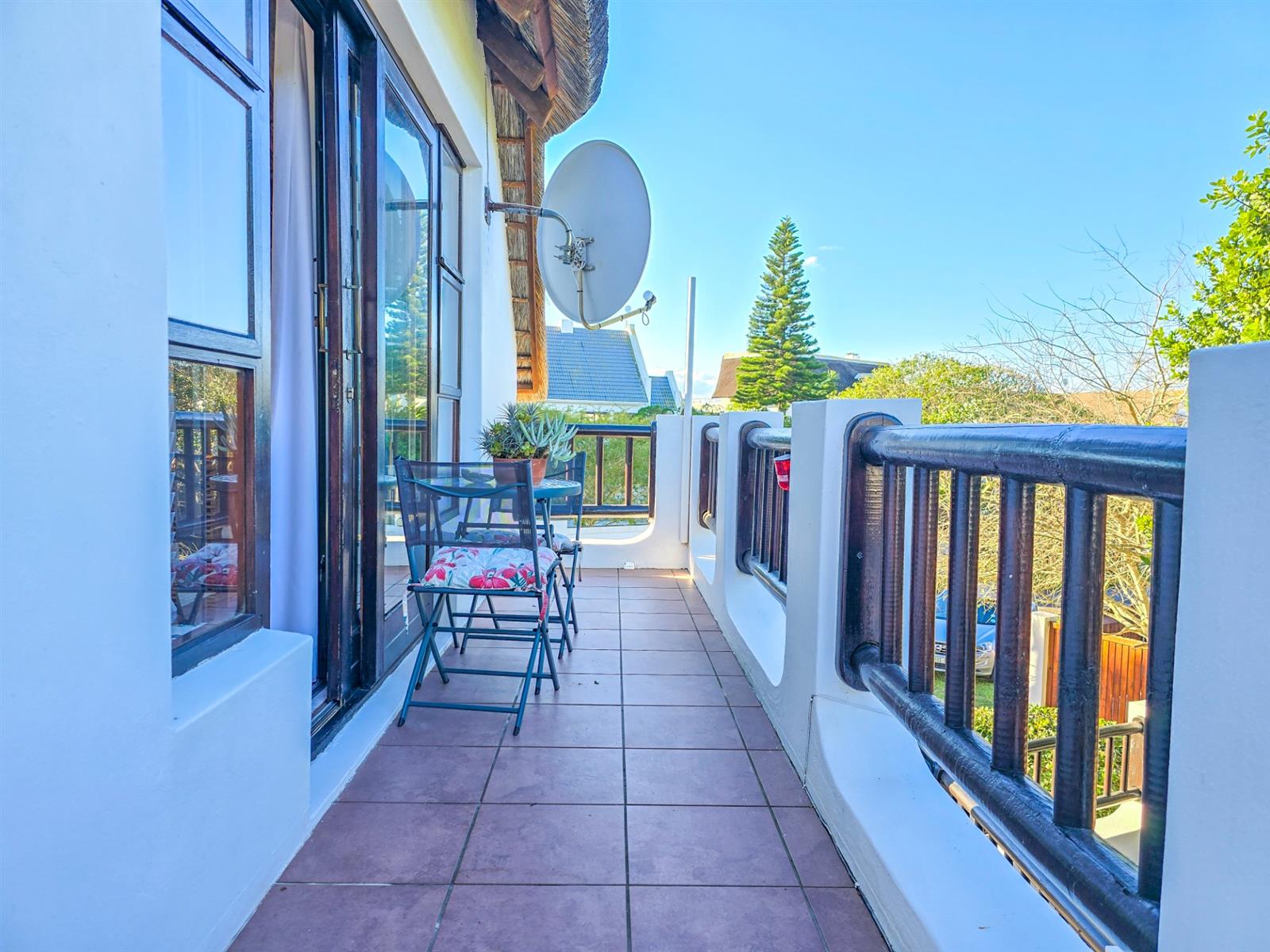 The main house offers three comfortable bedrooms. Two bedrooms share a modern bathroom, while the main bedroom provides a peaceful retreat with generous cupboard space, an en suite bathroom, and a private balcony — perfect for morning coffee or quiet downtime.