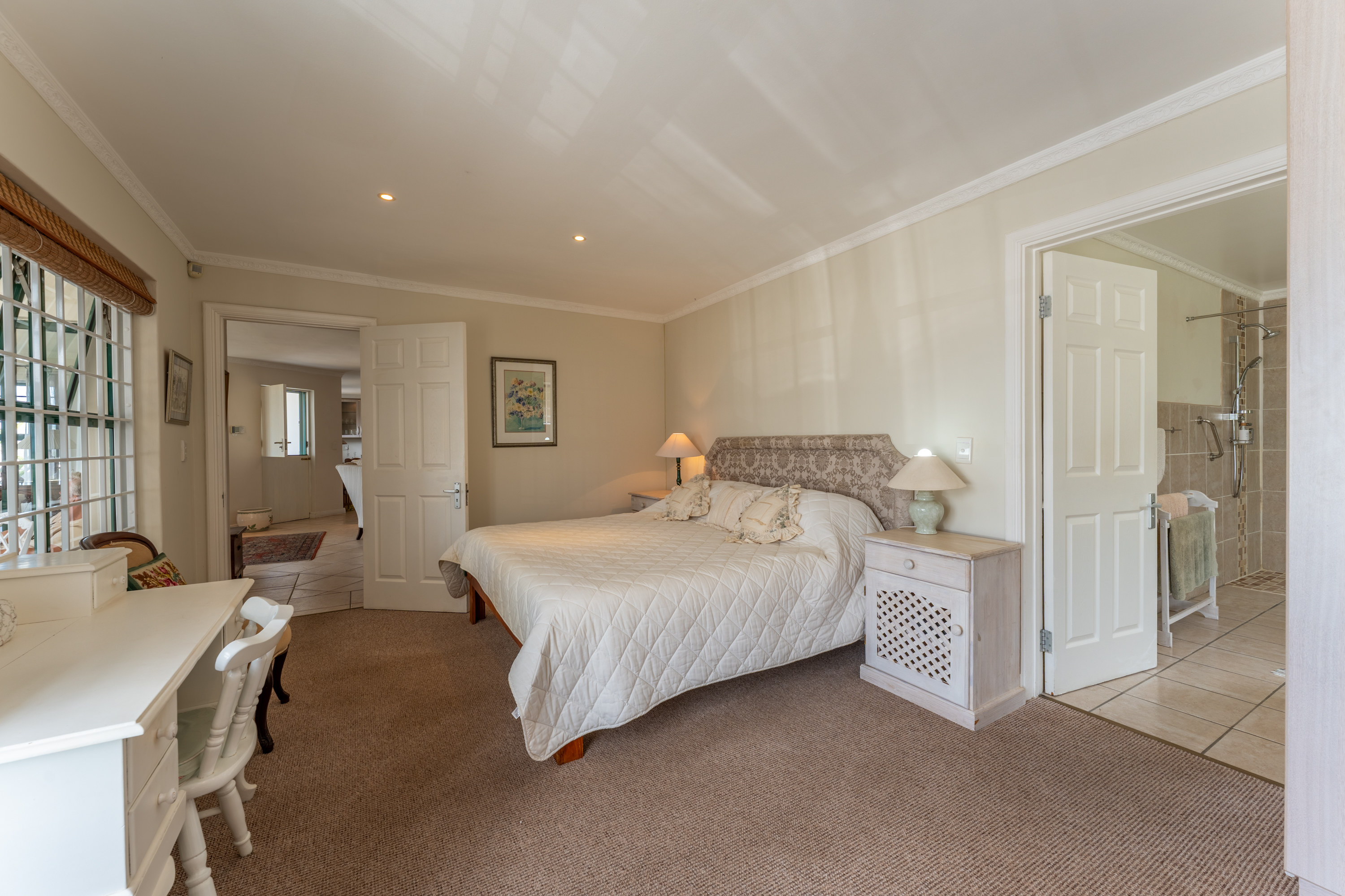 Offering three well-sized bedrooms, the home is both practical and comfortable. The main bedroom is a standout feature — expansive, beautifully finished and complete with a modern en-suite bathroom that truly delivers a “wow” factor. The two additional bedrooms are sunny and inviting, serviced by a full bathroom with both bath and shower. A separate loo offers additional convenience for guests. Natural light streams into all the bedrooms, enhancing the warm and welcoming atmosphere.