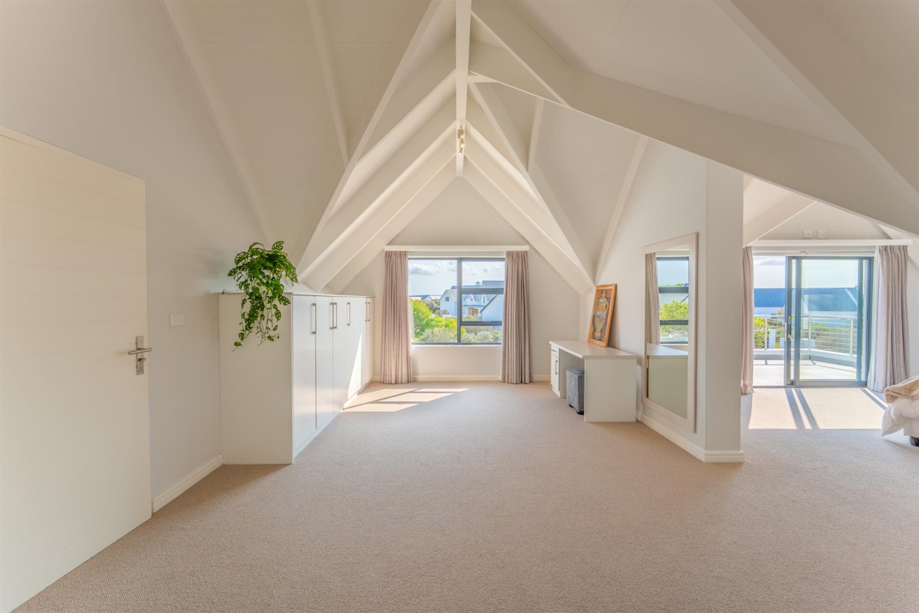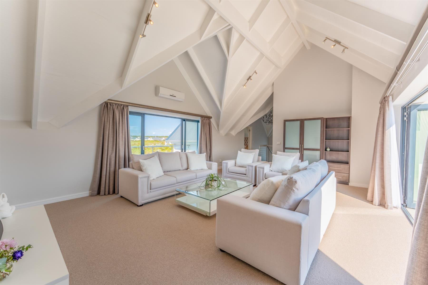The ground-floor lounge and dining area, featuring a modern gas fireplace, offers a welcoming setting for daily living, while the upstairs lounge is bathed in natural light and features air conditioning and two balconies on opposite sides, perfectly positioned to capture both sunlight and refreshing coastal breezes.