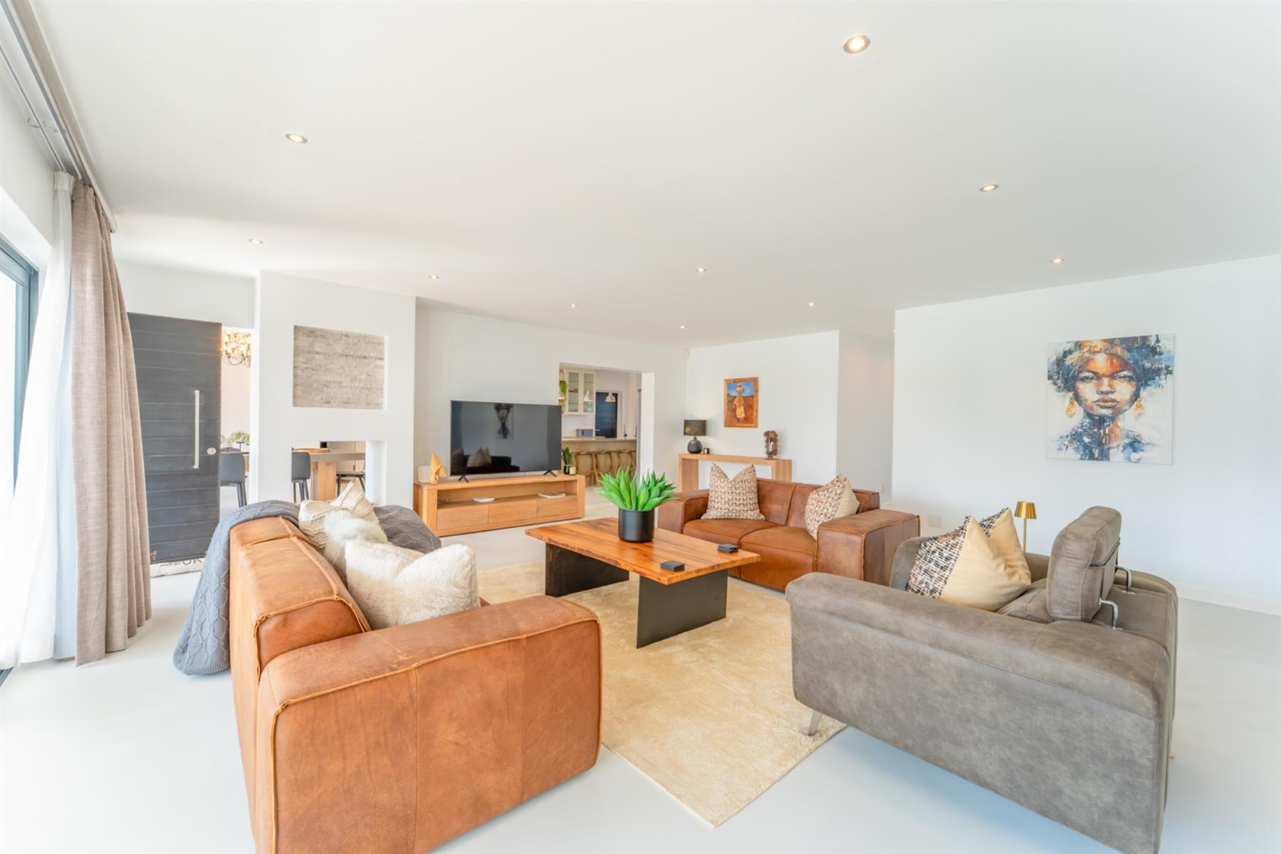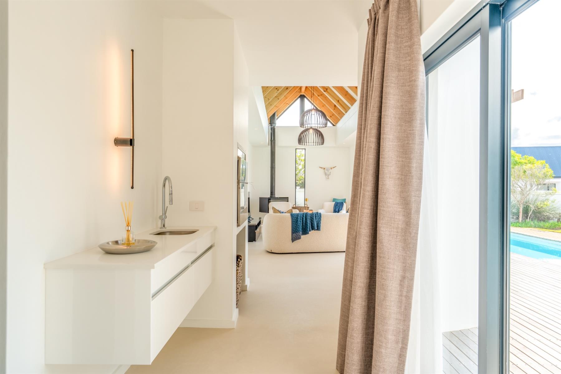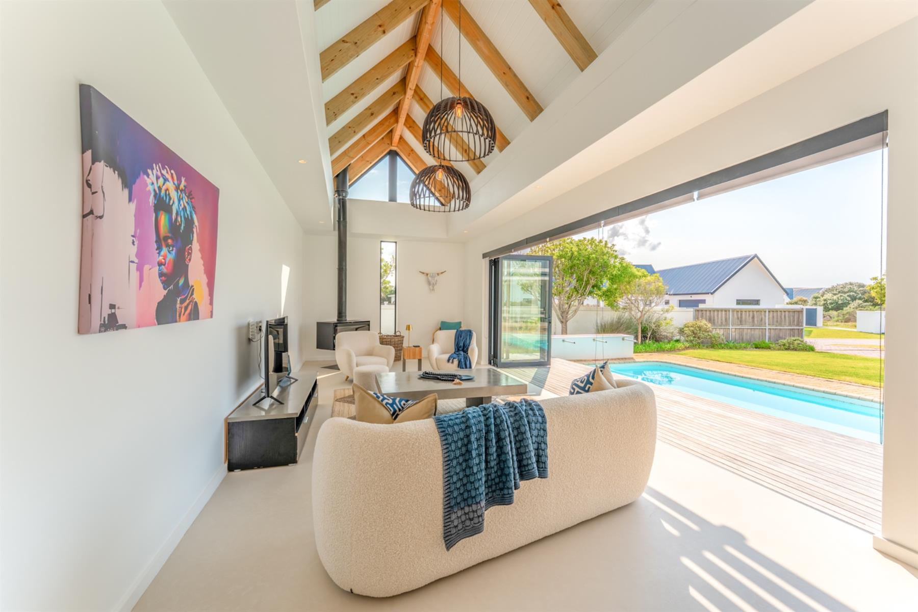 Inside, the home is designed for versatility and comfort, featuring three distinct lounge areas and a thoughtfully designed entertainment space. A sophisticated built-in bar with custom cabinetry leads to the indoor braai area, which flows into a luxurious lounge complete with a cozy fireplace. From here, stacker doors open onto a private heated pool oasis, creating the ultimate year-round entertaining space.