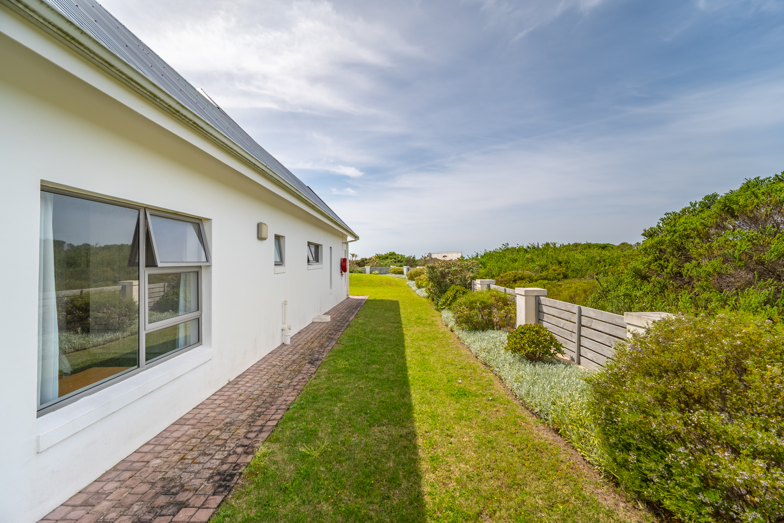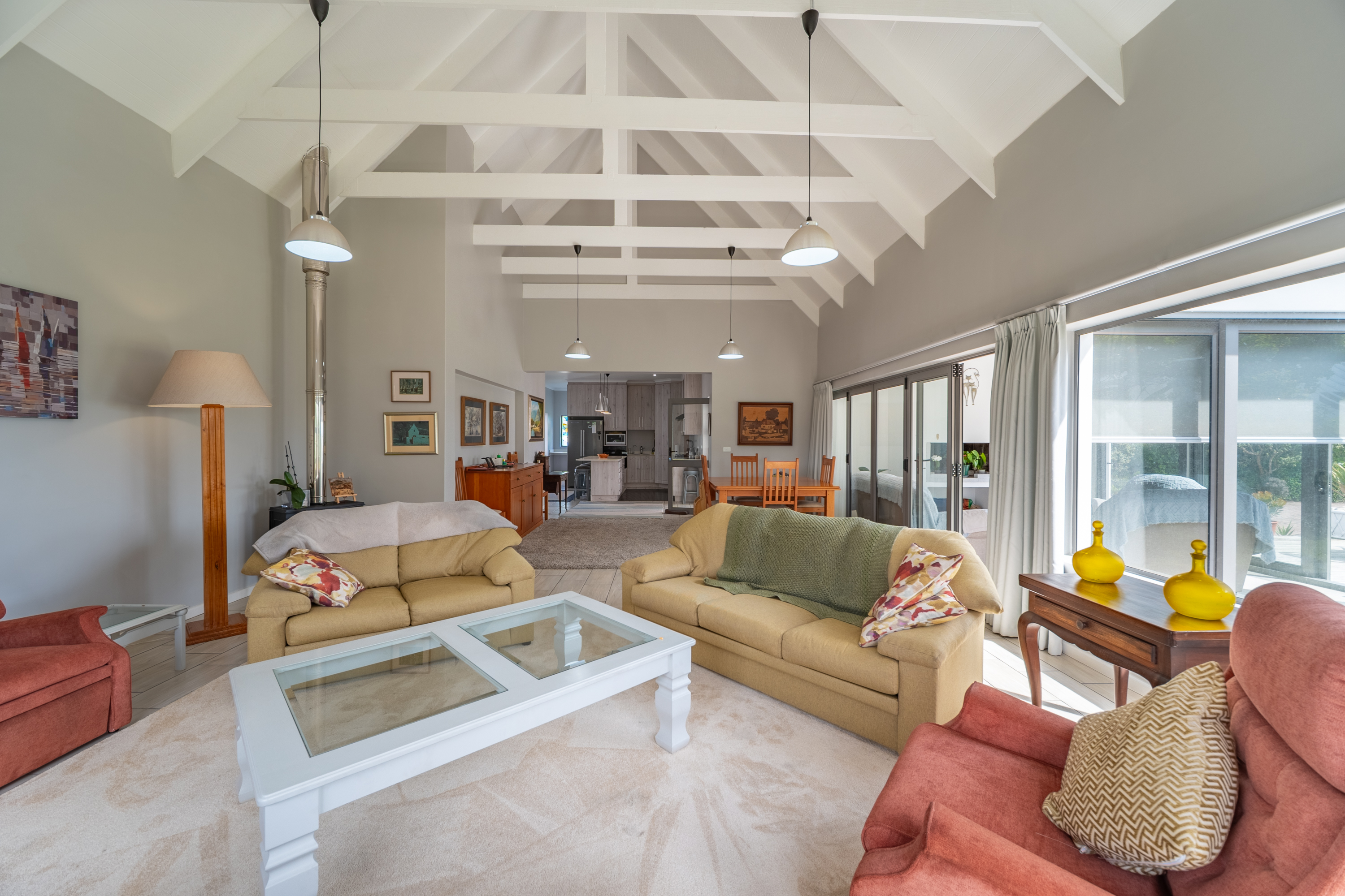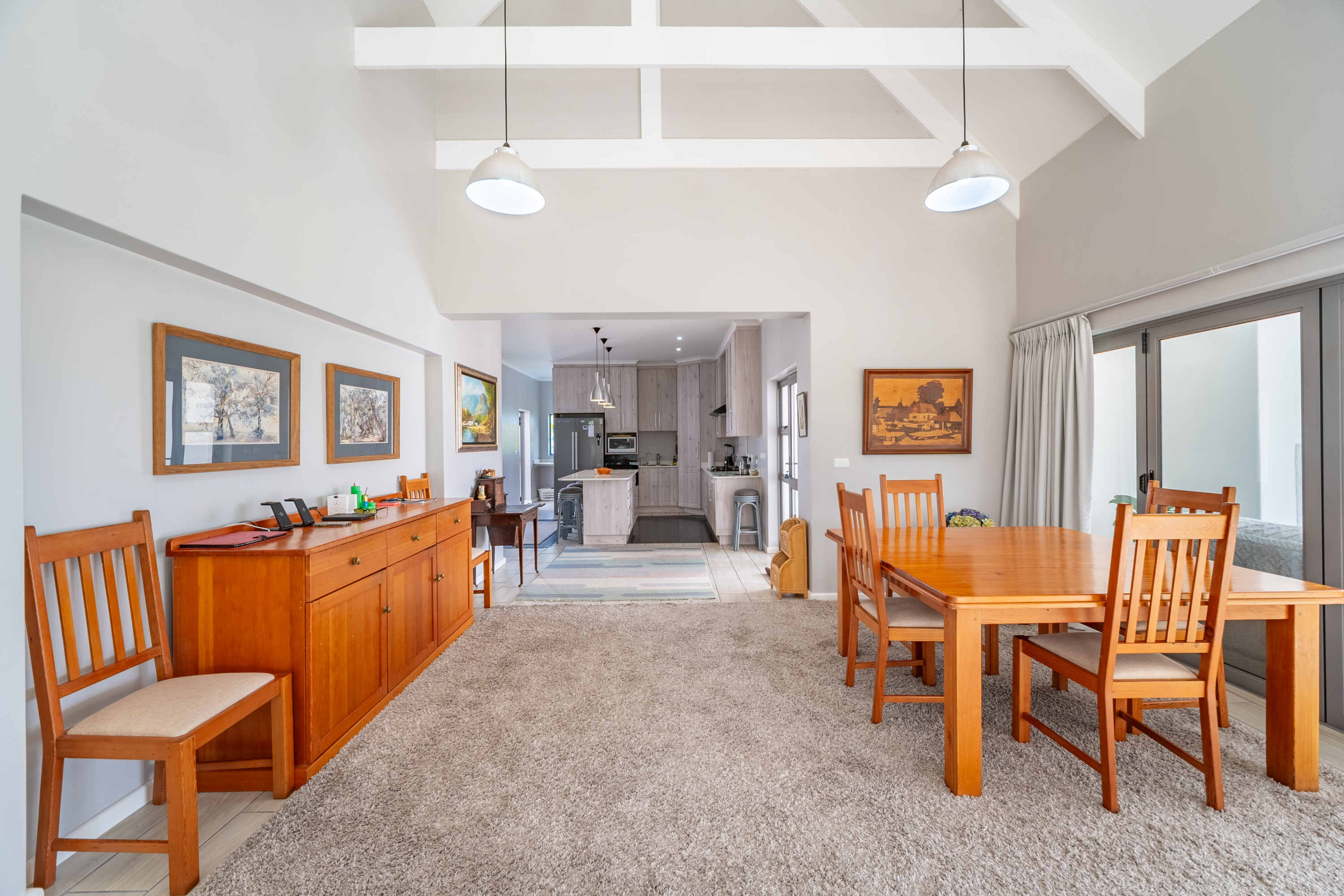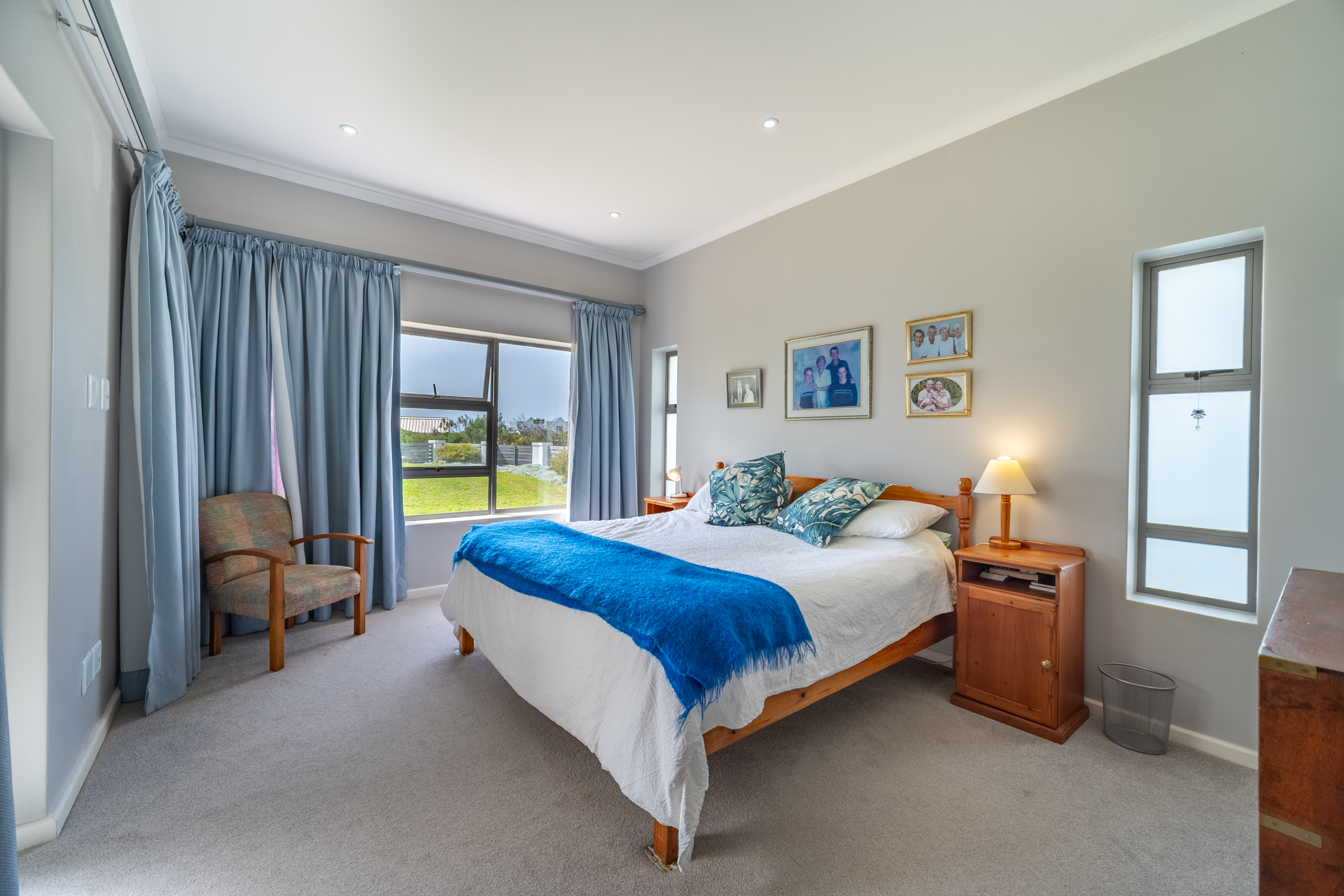 Bedrooms are thoughtfully positioned away from the main living spaces for extra privacy. The main suite enjoys its own little patio and peaceful garden outlook, while the two additional bedrooms are generous in size—one even has its own en-suite. A clever nook in the passage makes for an ideal work-from-home or study spot.