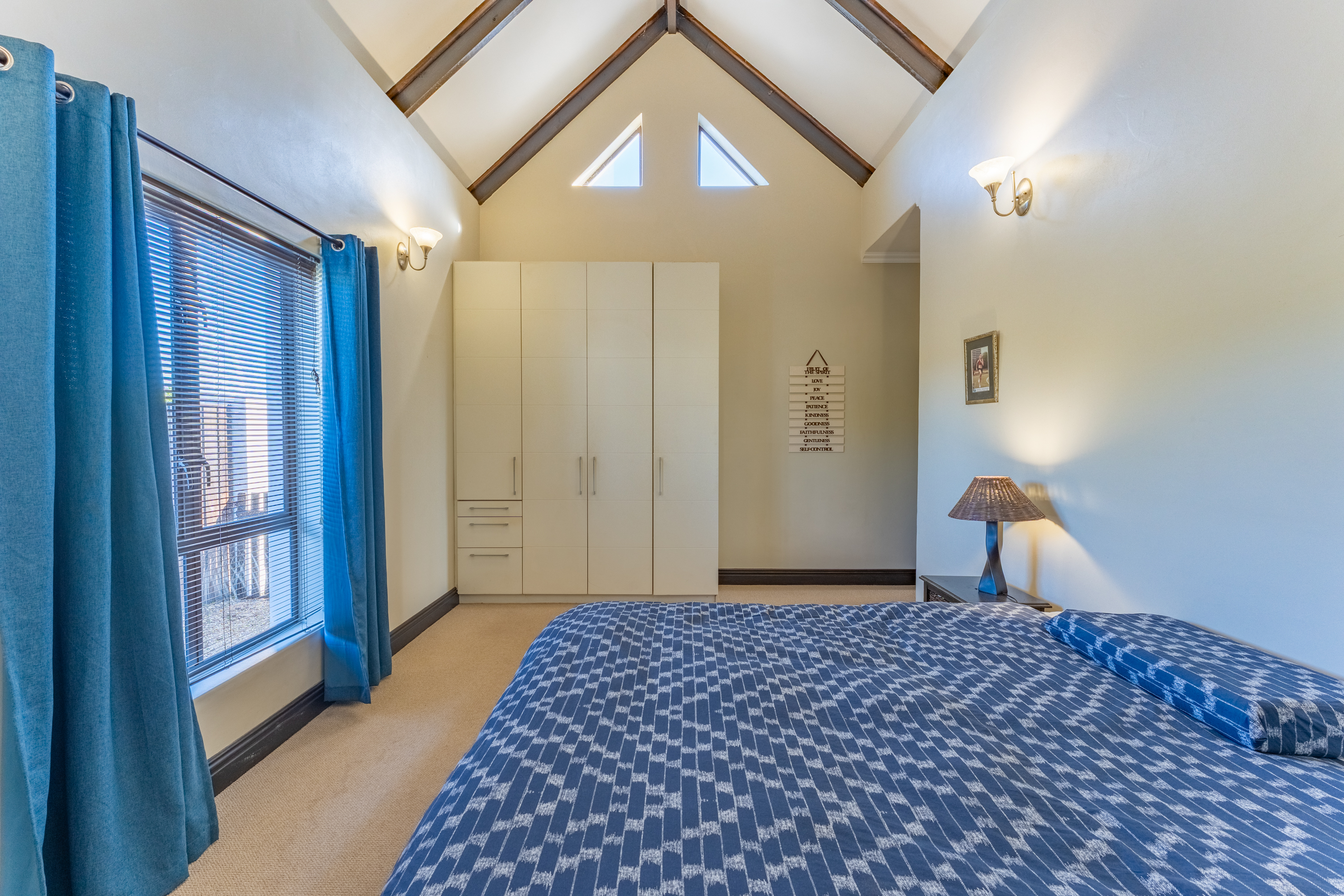 The triple-sized garage includes extensive built-in cupboards, offering excellent storage. The garden is established, low-maintenance, fully walled, and pet-friendly, with enough space for tenants who enjoy outdoor living.