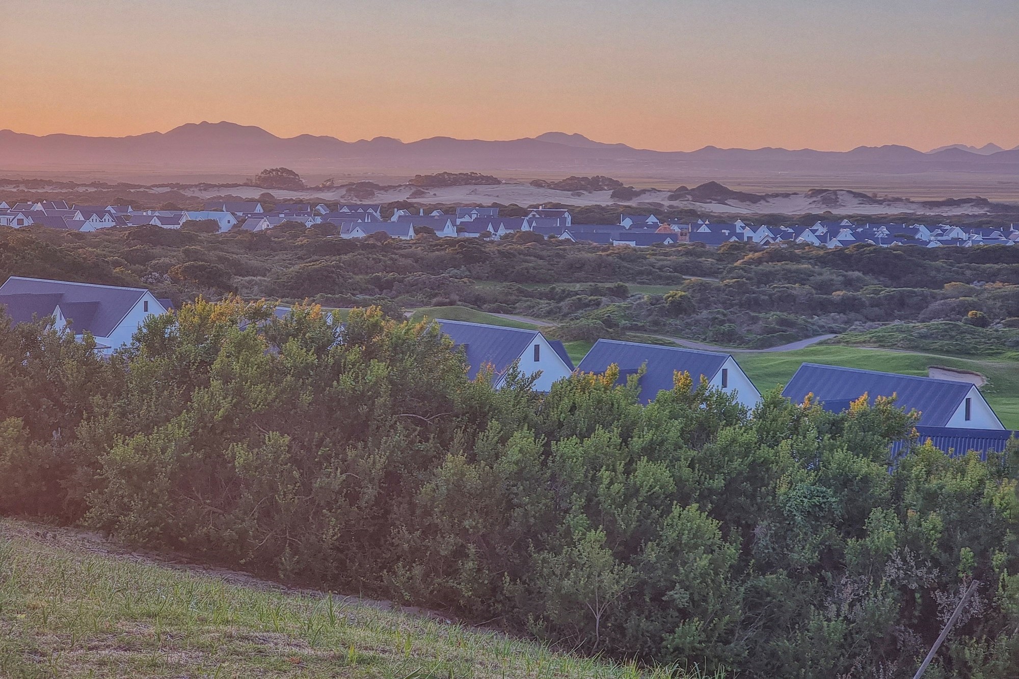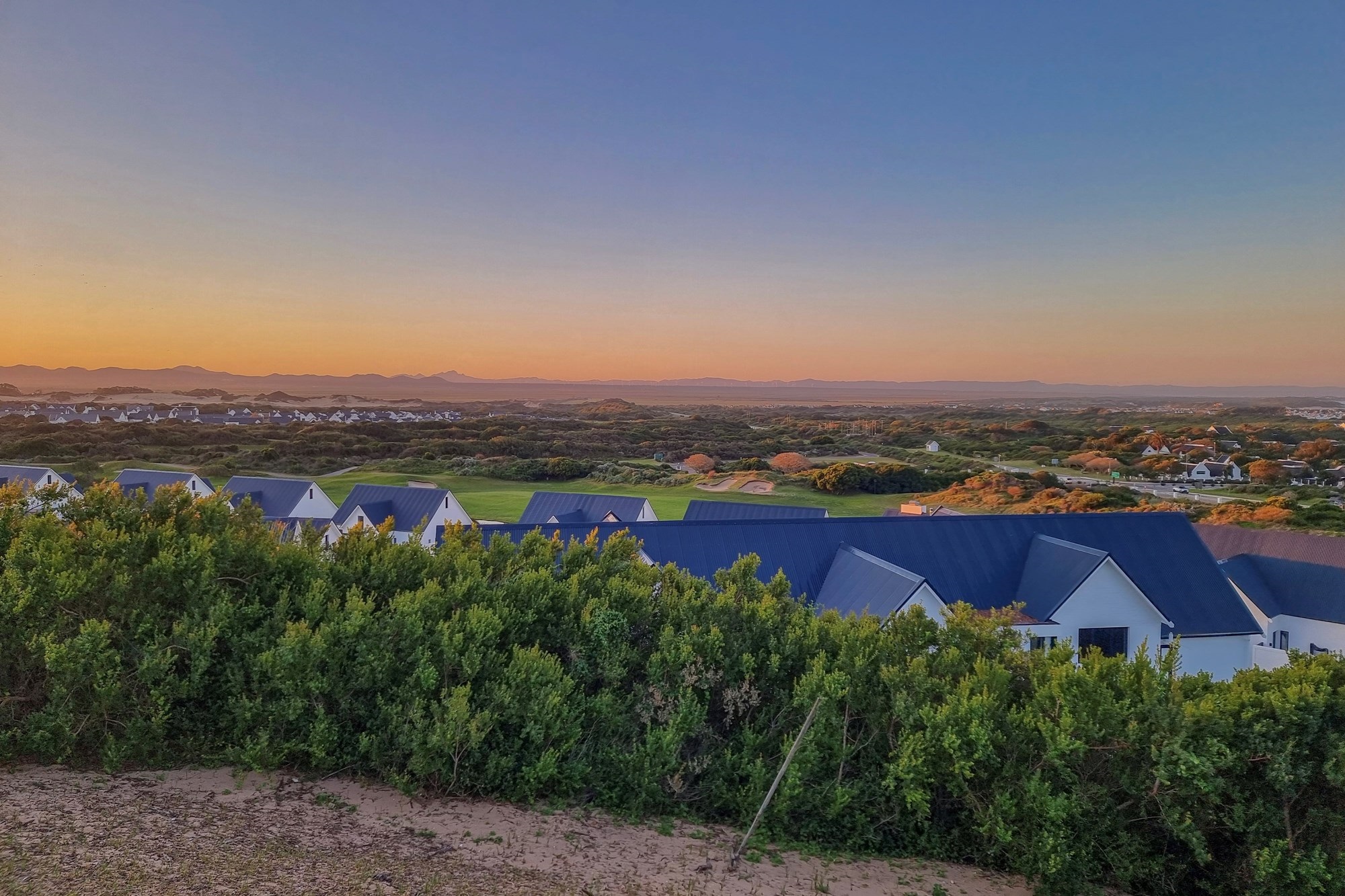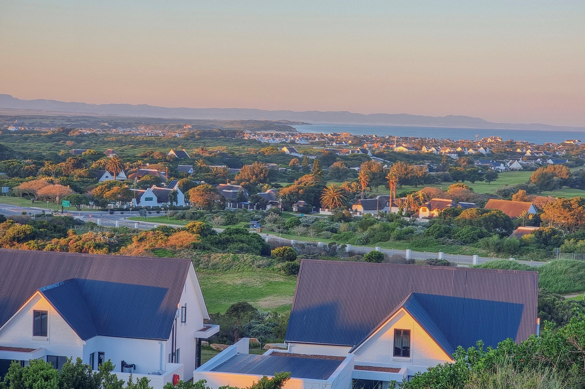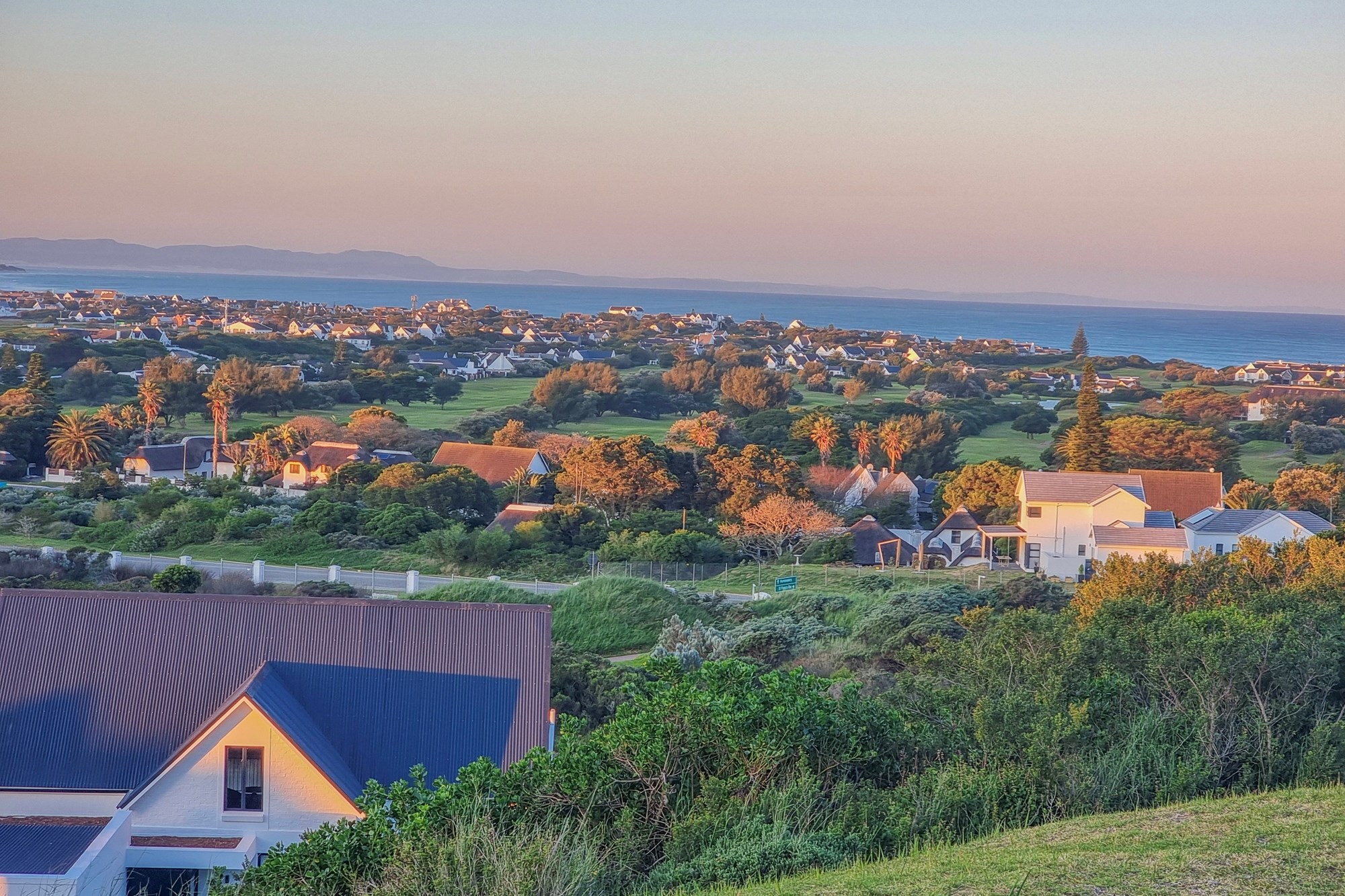 This exceptional property in St Francis Bay Links offers sweeping, uninterrupted views across the Sand River Estuary, the village, Cocks Comb Mountain, the ocean, and the 18th fairway.