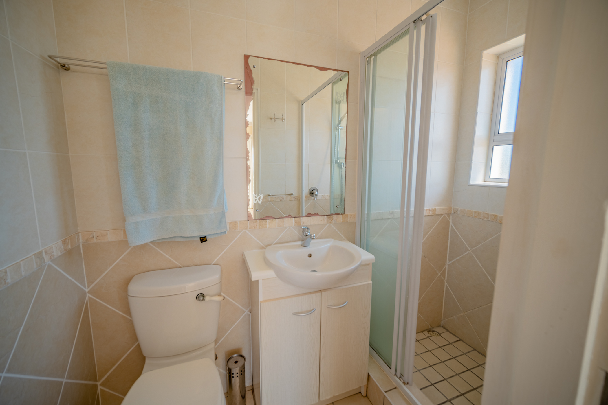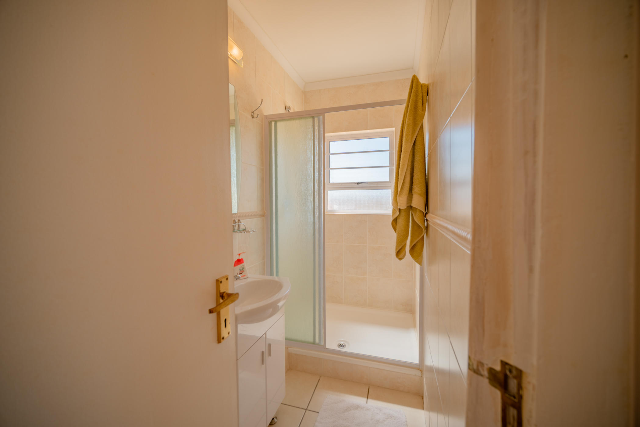 Upstairs is the very spacious main bedroom en-suite with study area, walk-in cupboards, large balcony with lovely sea views. TV point.