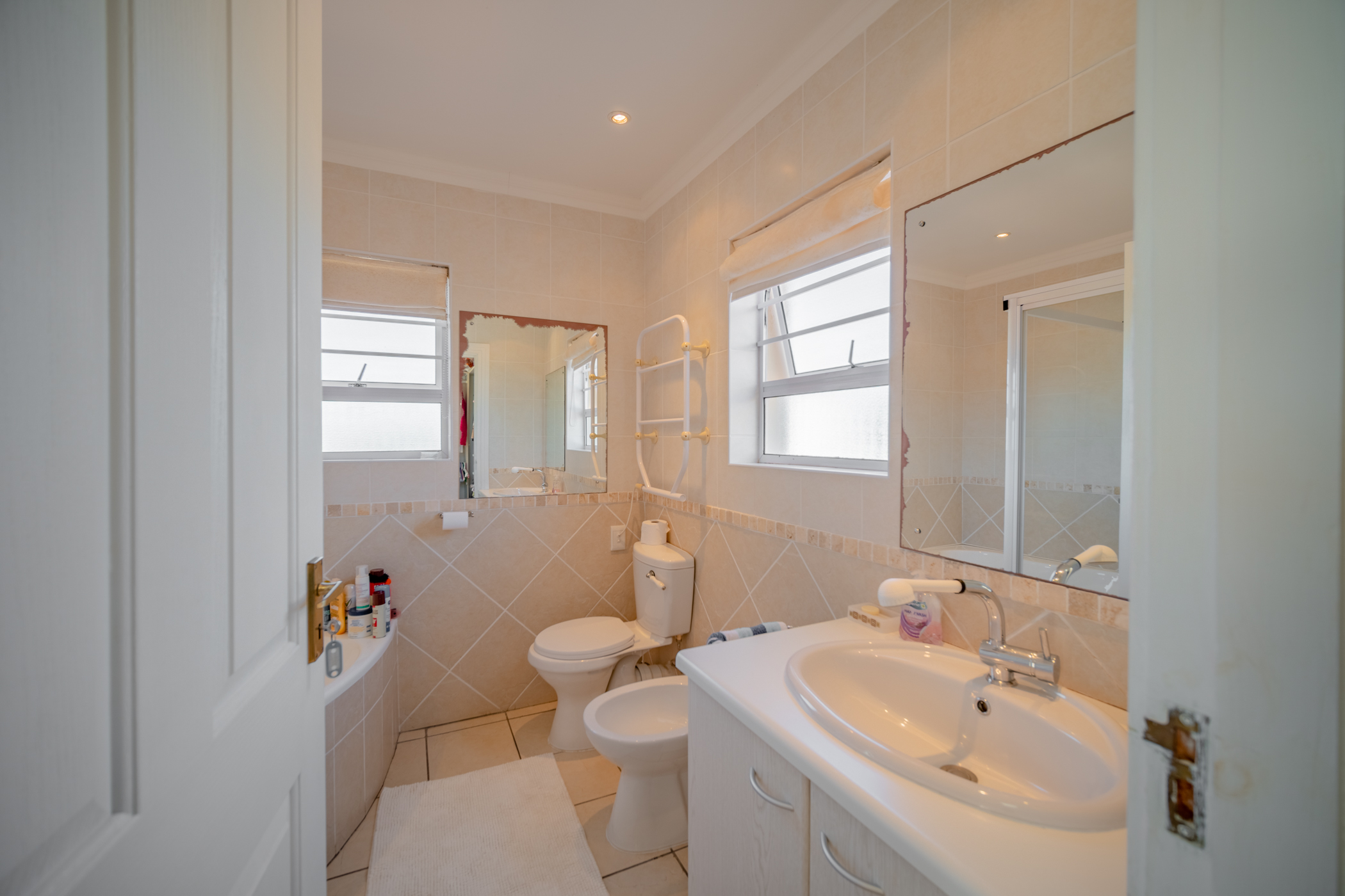 Lots of parking space in neatly paved driveway. Double garage with remote doors, outside loo. Property is fenced with a remote control sliding gate.