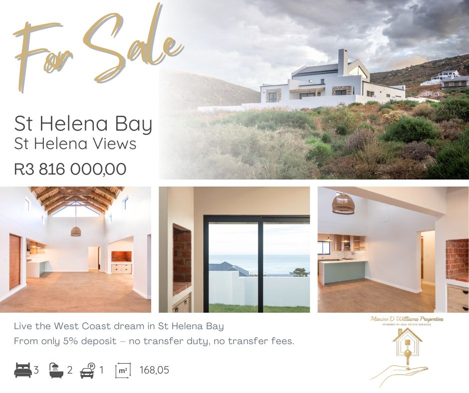 With just a 5% down payment, you can secure your future in St. Helena Bay by moving to the West Coast now.