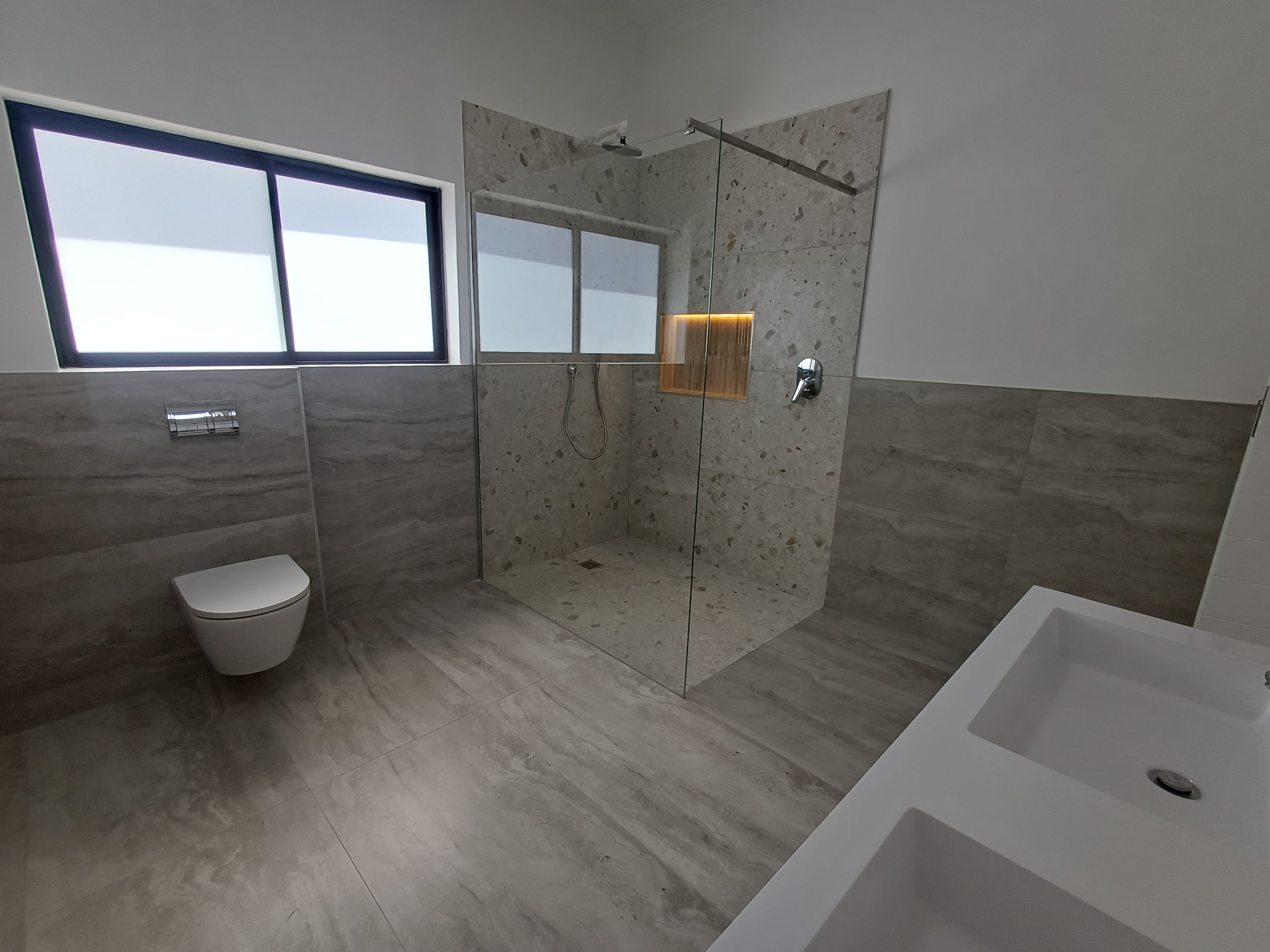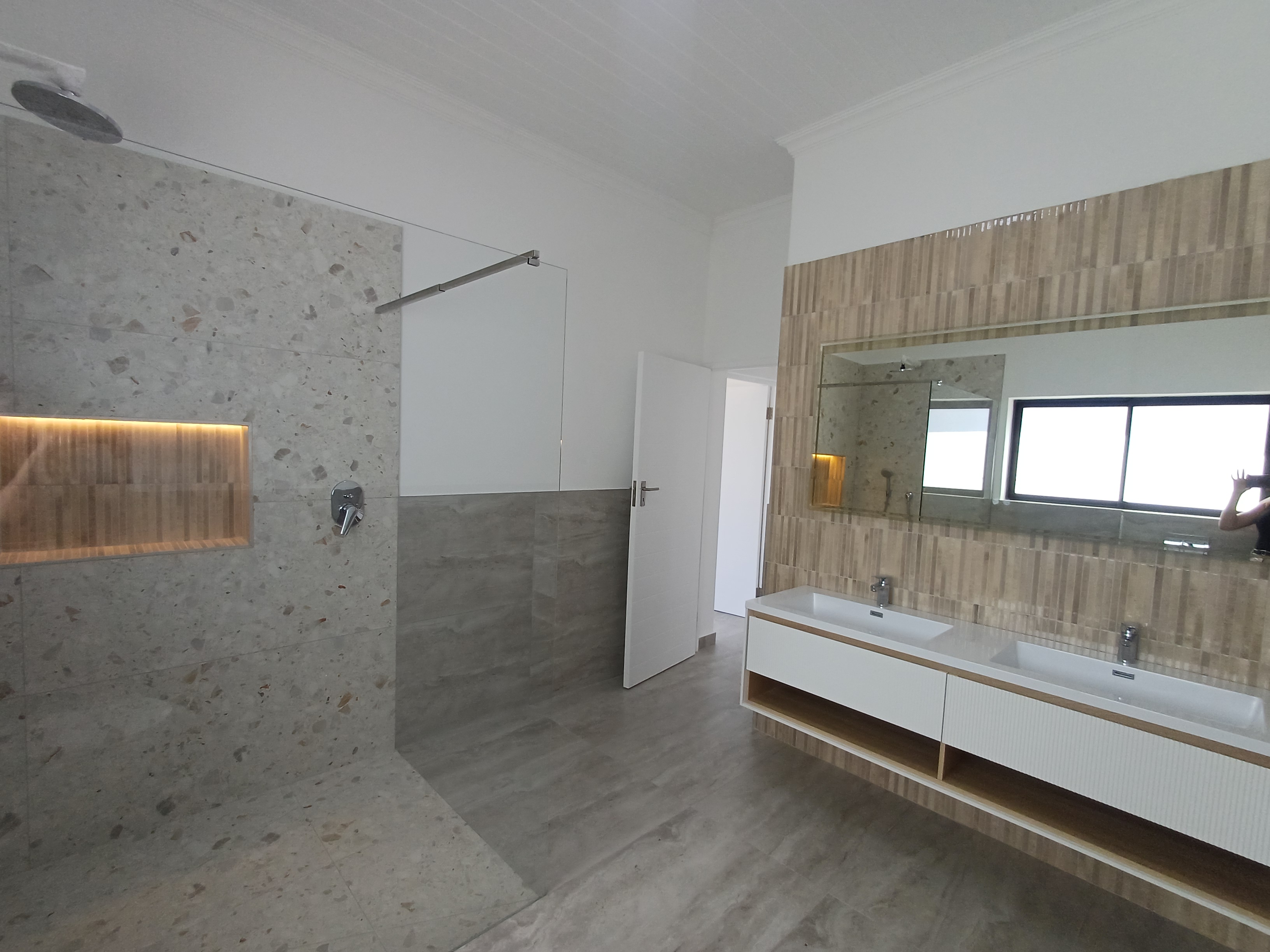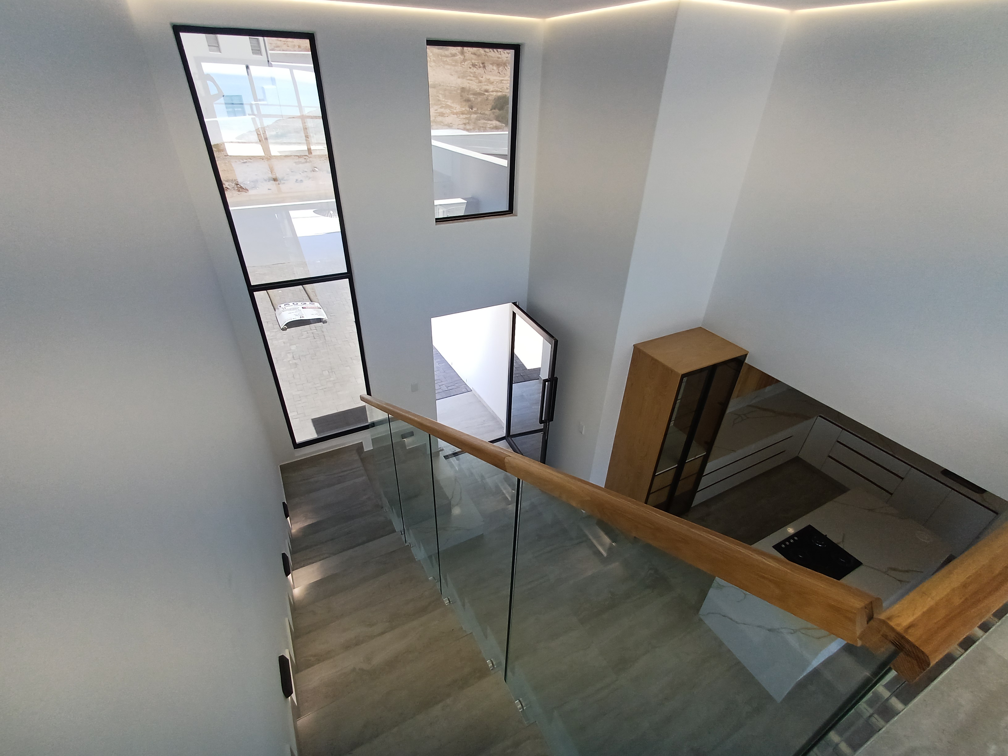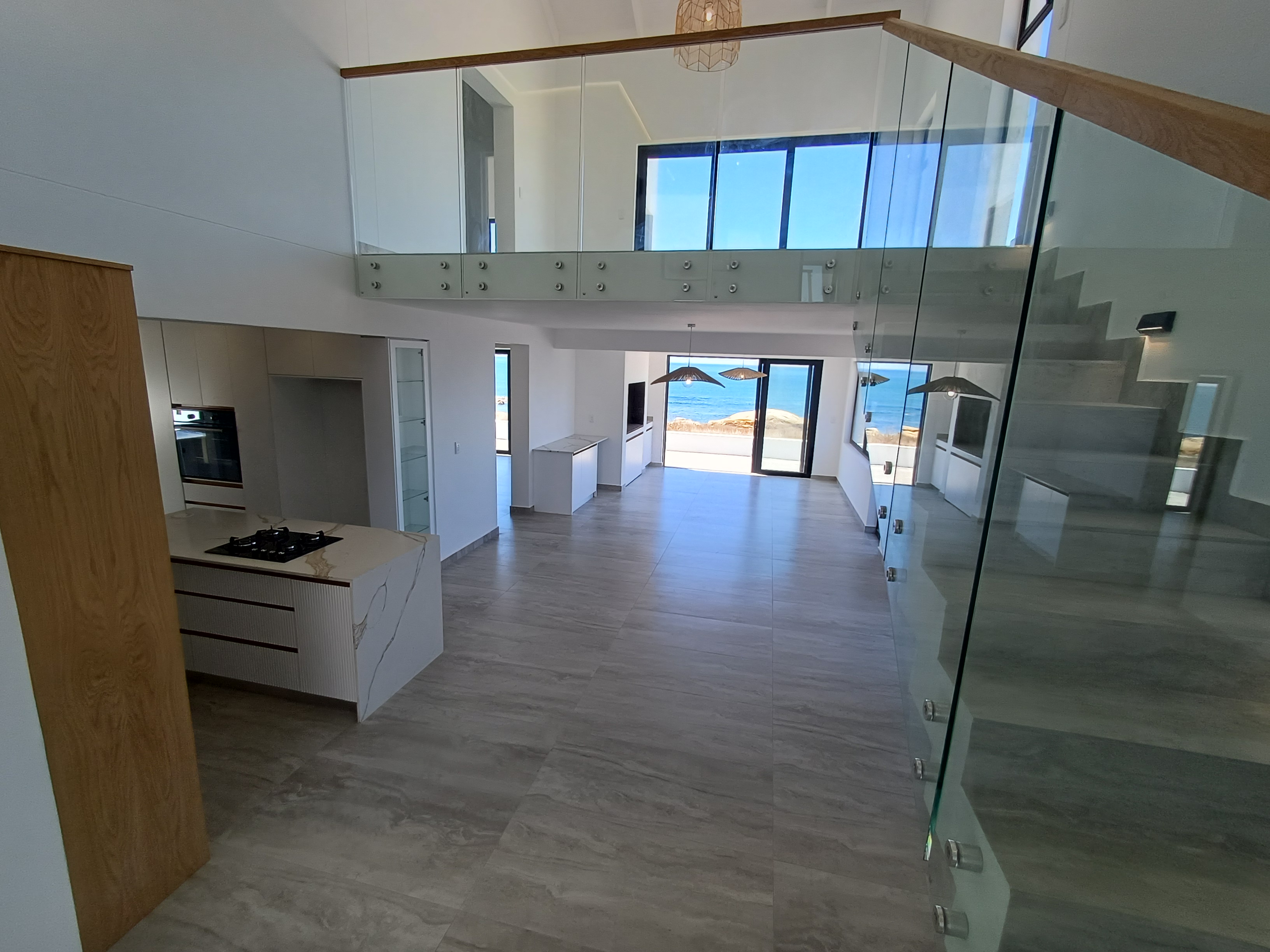 Clean modern lines combined with expansive floor-to-ceiling glazing, maximising natural light, framing the coastal landscape throughout the home.