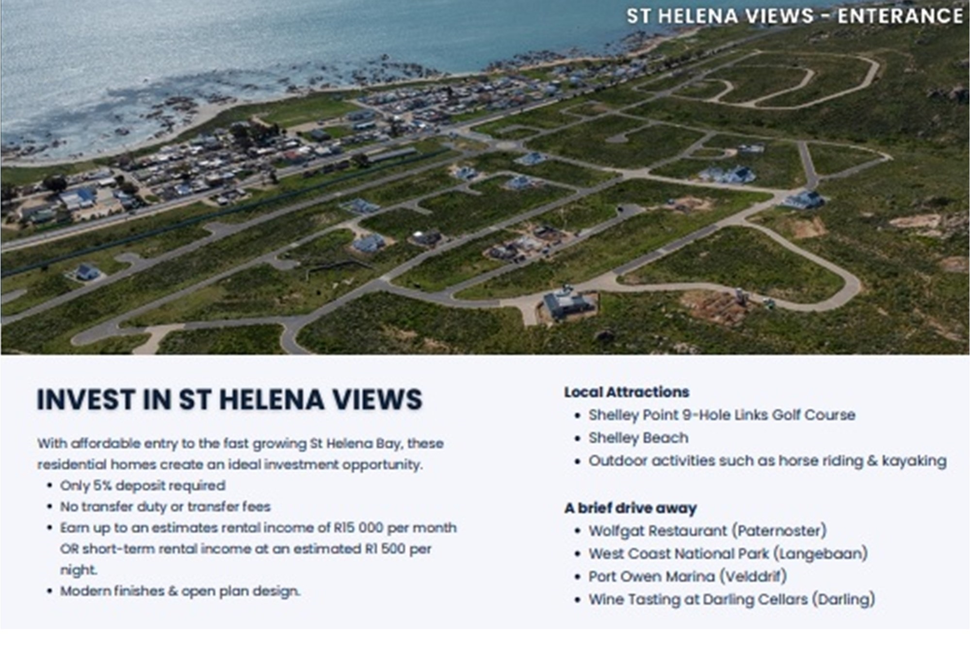 Discover a stunning new turnkey home in the serene St Helena Views, St Helena Bay. Perfectly blending modern comforts, eco-friendly features, and breathtaking ocean views, this property offers an ideal lifestyle for families, retirees, or holidaymakers seeking tranquility and luxury.