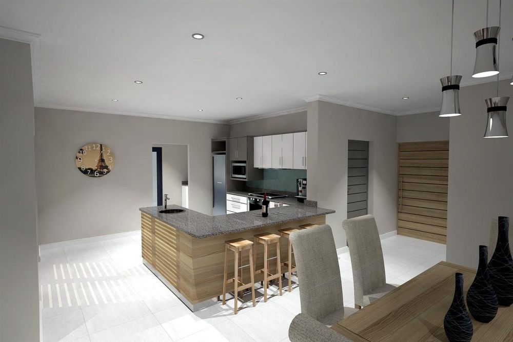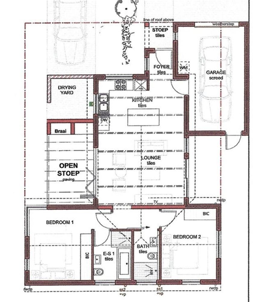 PLAN AA: Open plan lounge & kitchen, 2 bedrooms, 2 bathrooms, single automated garage, that opens directly into the house. Open patio, dry yard, Roll-on lawn on the entire plot.