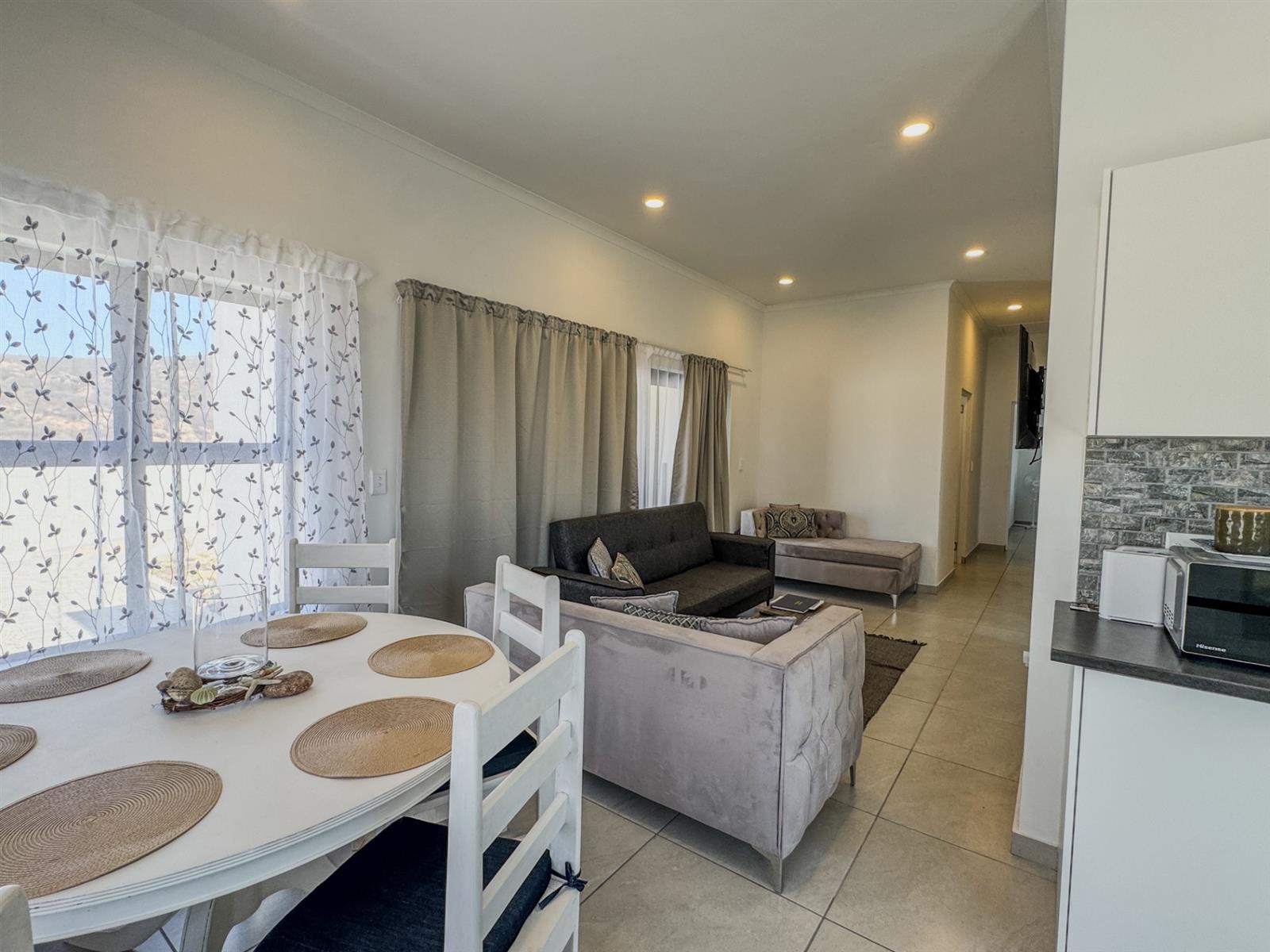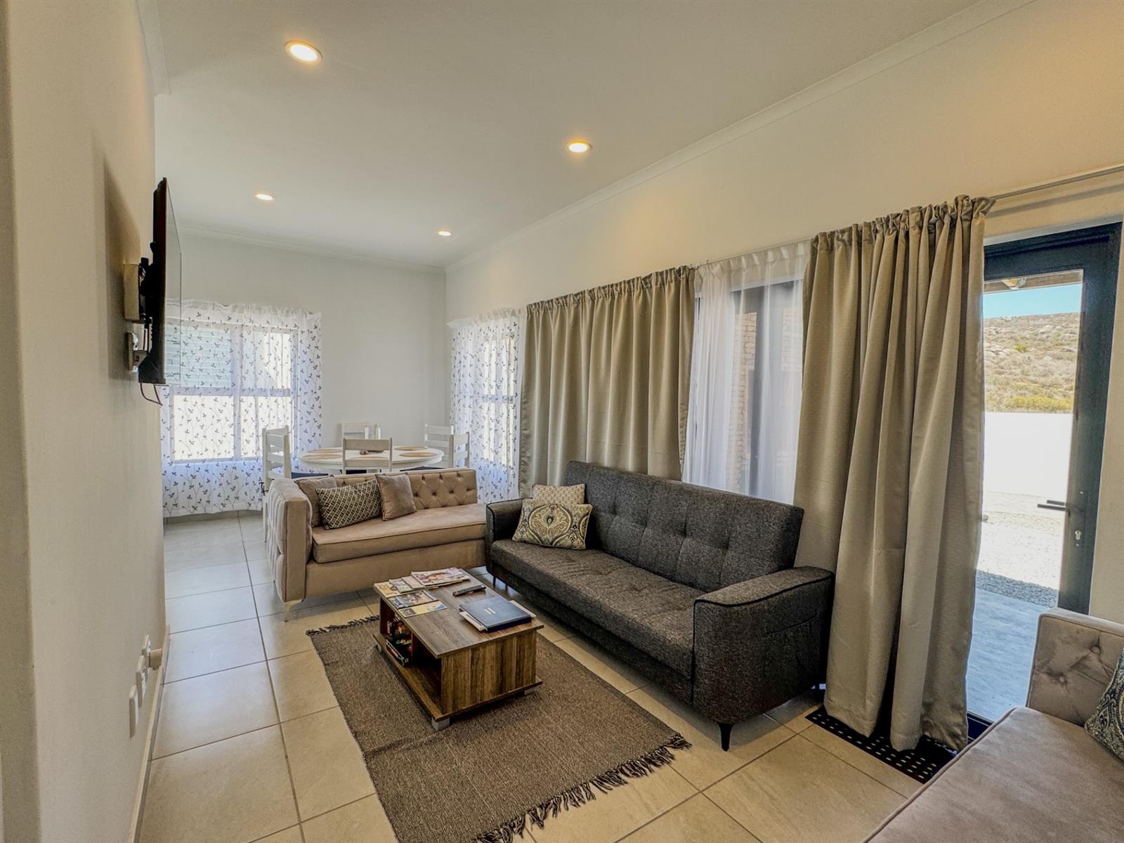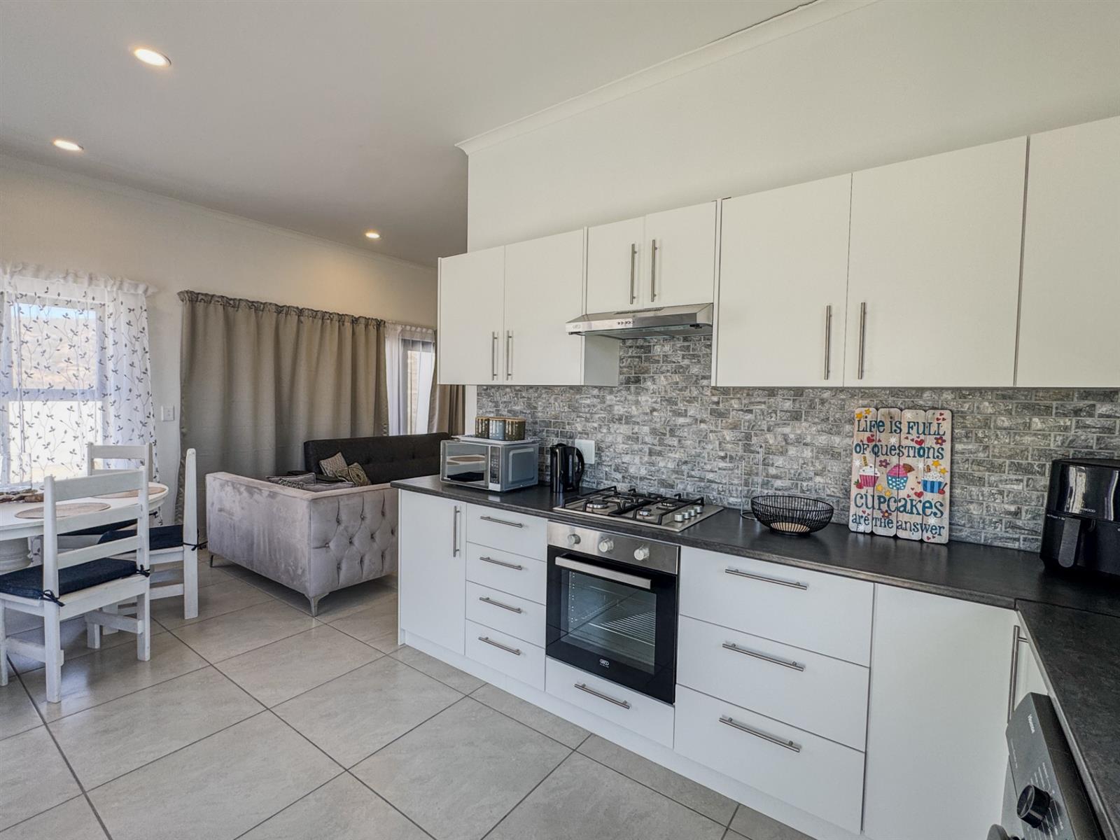 The open-plan kitchen and living area form the heart of the home, flowing seamlessly through stackable doors onto a covered braai patio – ideal for entertaining, relaxing, and soaking in the West Coast sunsets. Whether hosting guests or enjoying quiet evenings, this space is designed for effortless indoor-outdoor living.