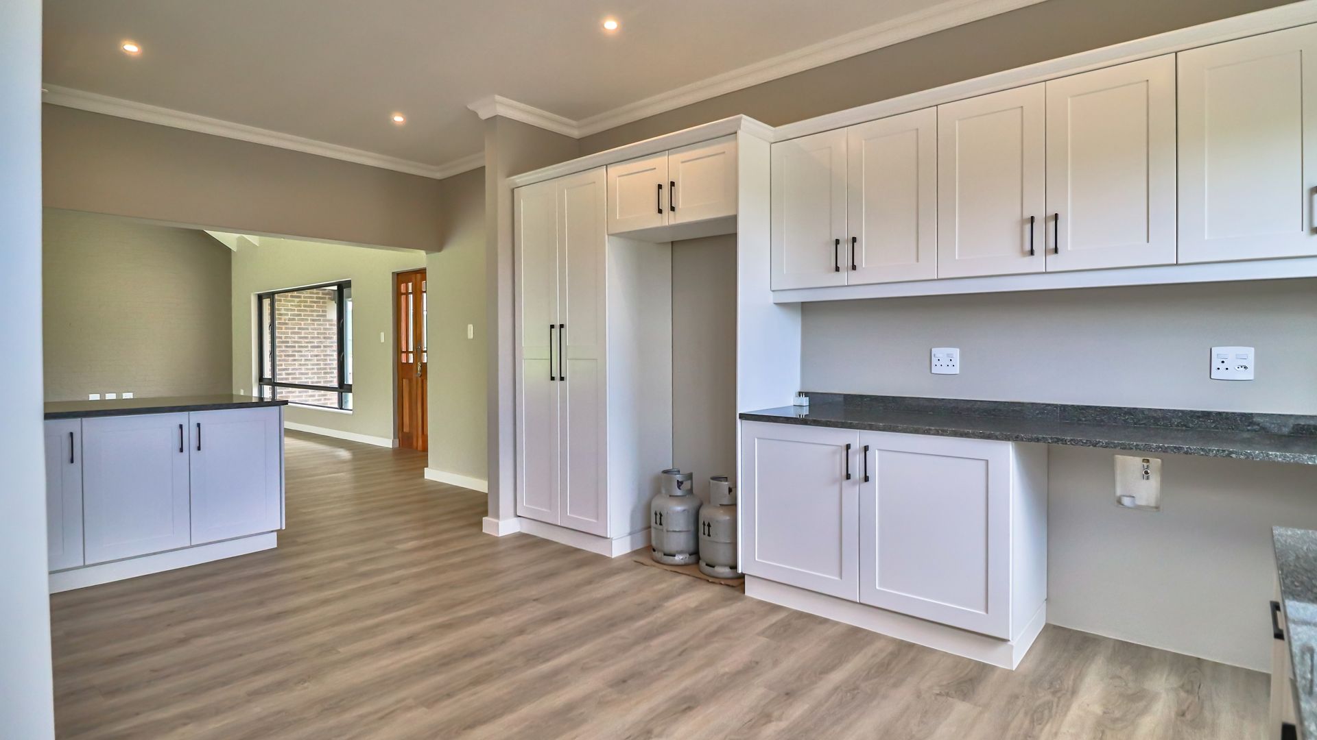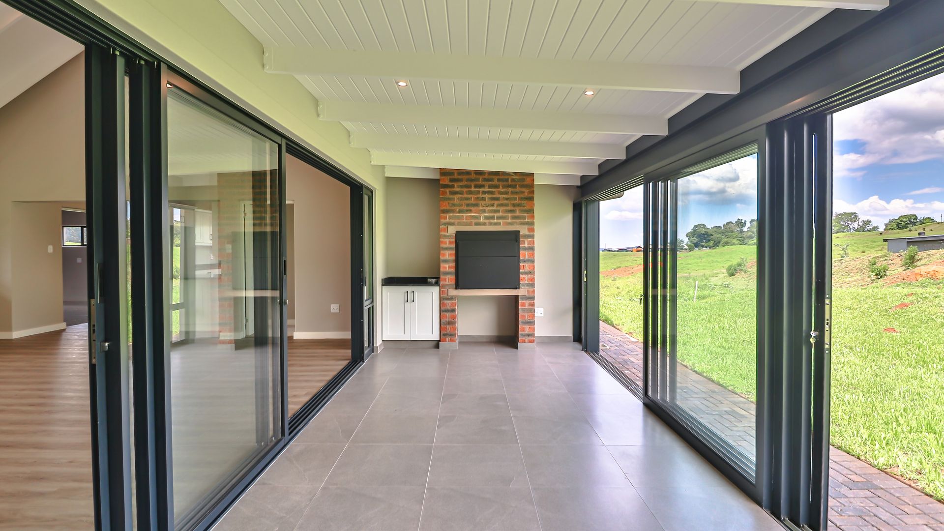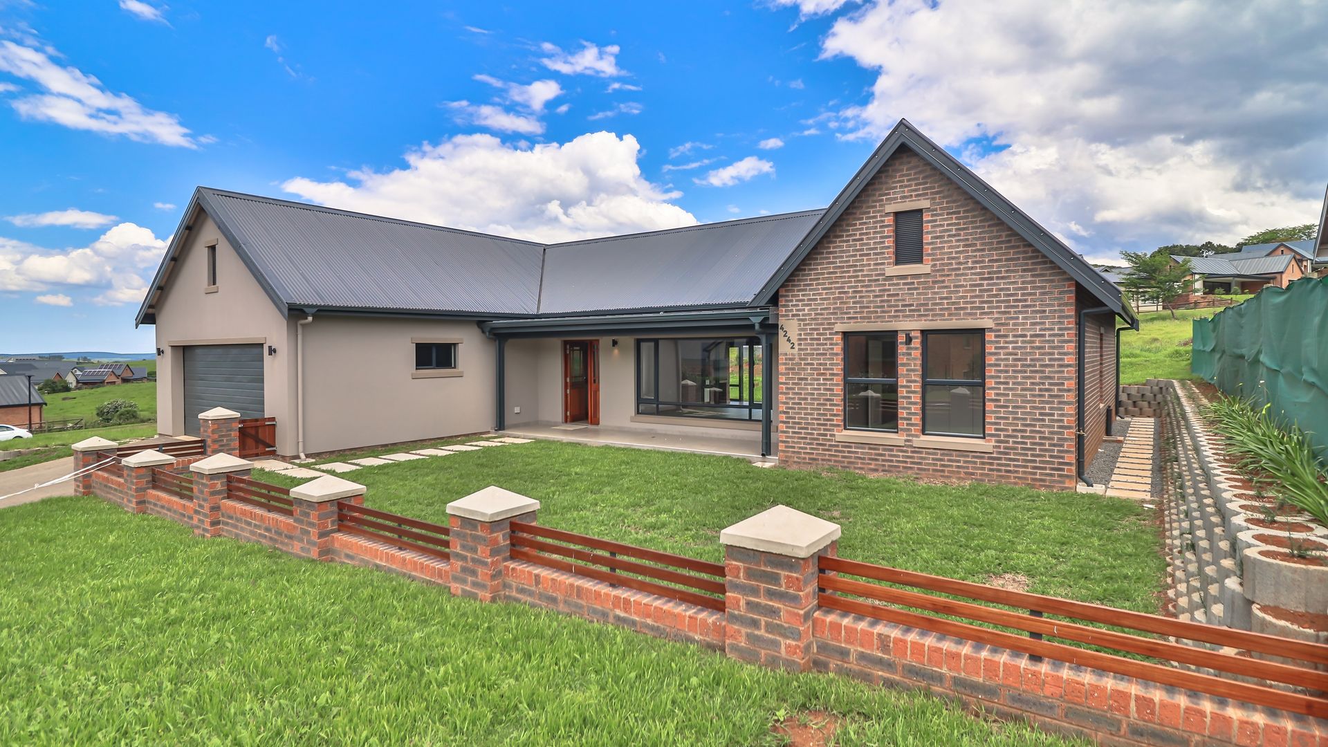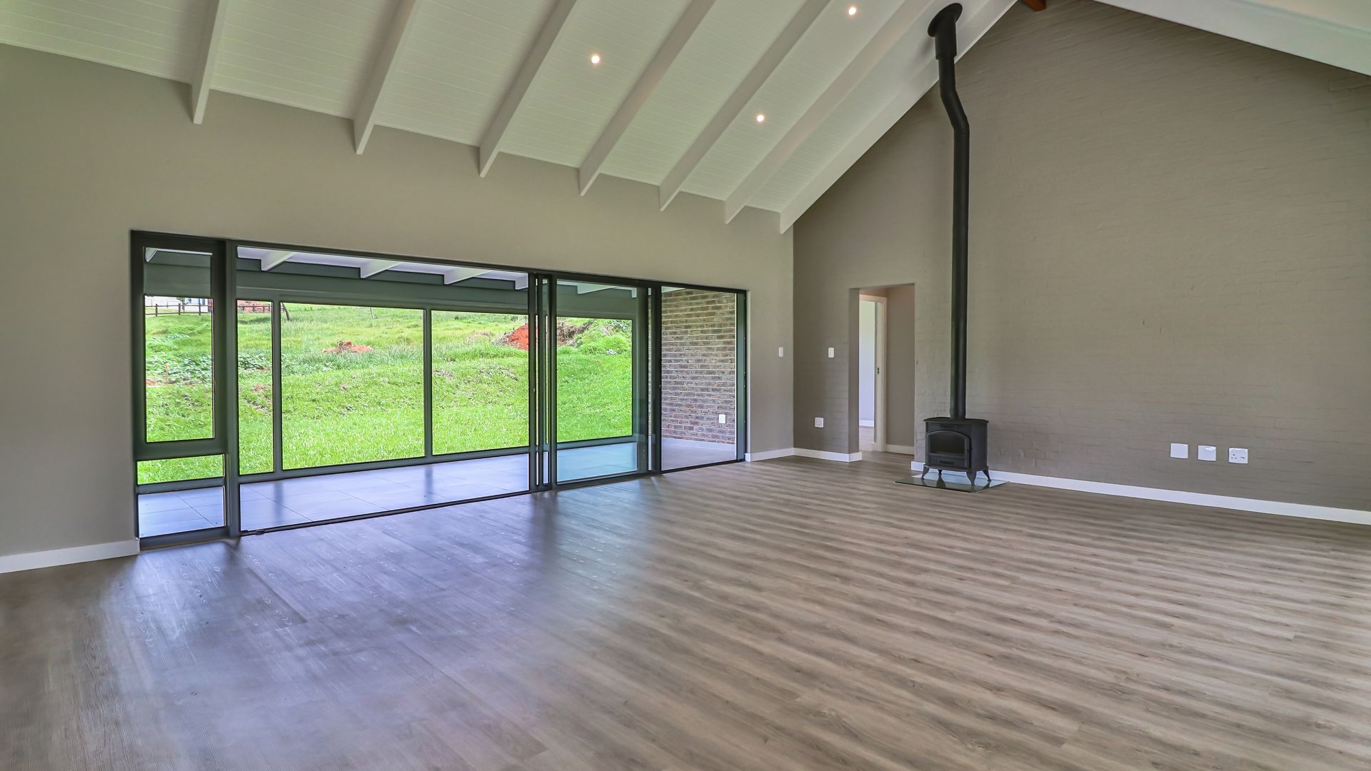 The brick and contrasting plaster home is sunny and light with 2 spacious verandahs, one enclosed with stack doors and boasting an indoor braai, for those cold windy days and the other open for the fresh breezes of summer. The lounge/dining room feel extra spacious with the vaulted ceiling for added character. A wood burning fireplace is situated in this area giving ultimate warmth to both rooms. The open plan kitchen, tastefully designed with a gas hob, electric oven and extractor fan includes a separate scullery.