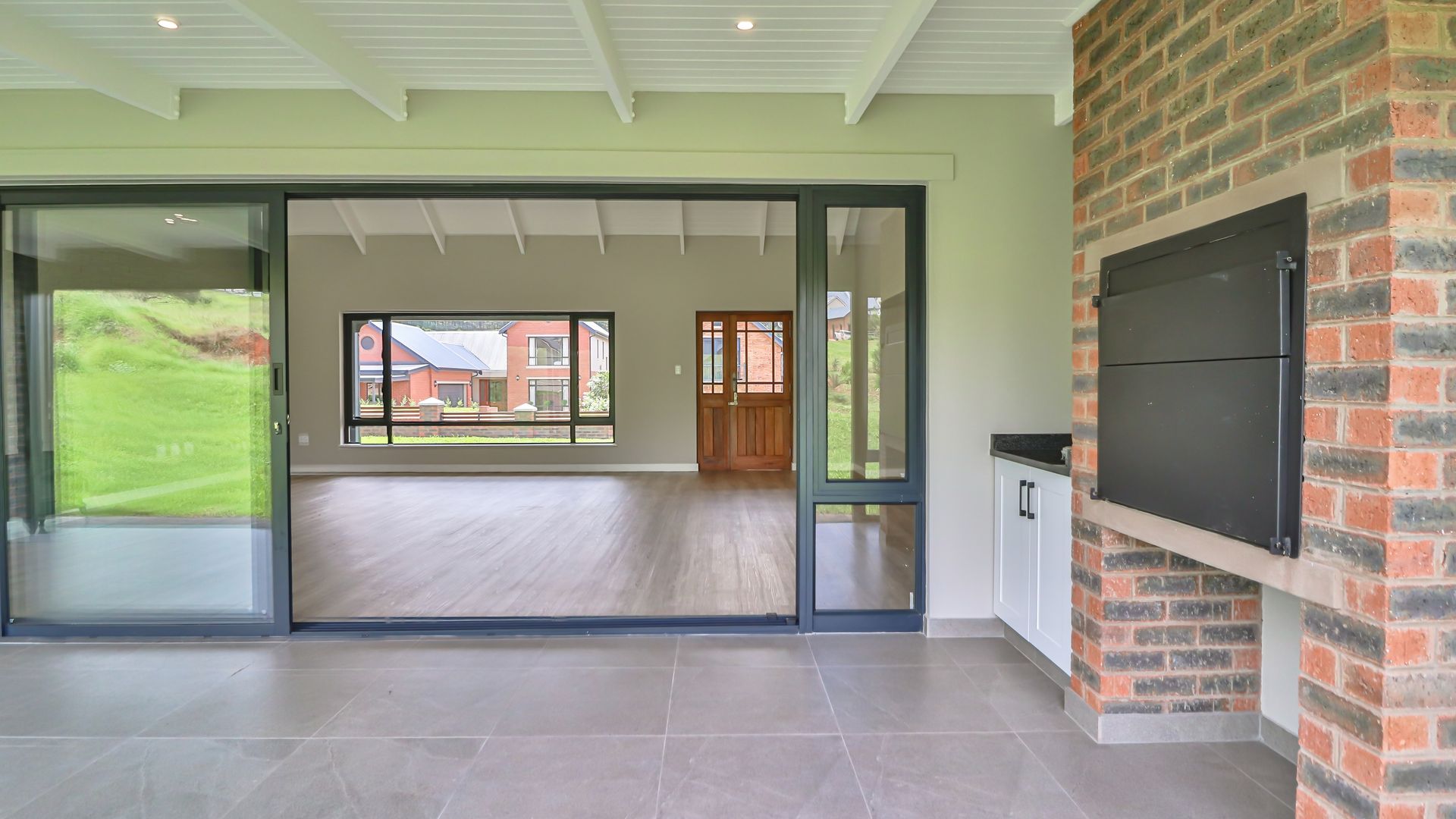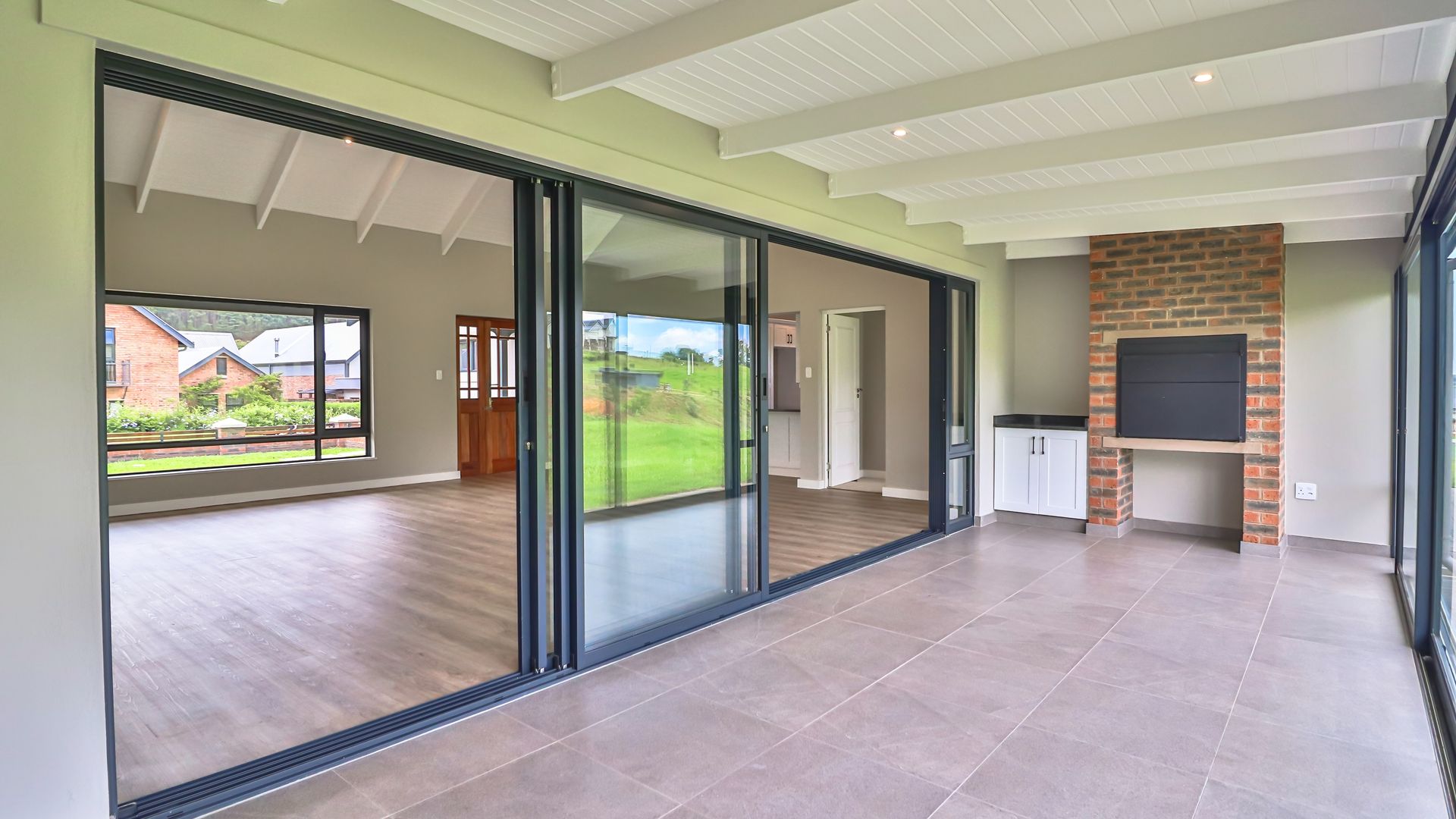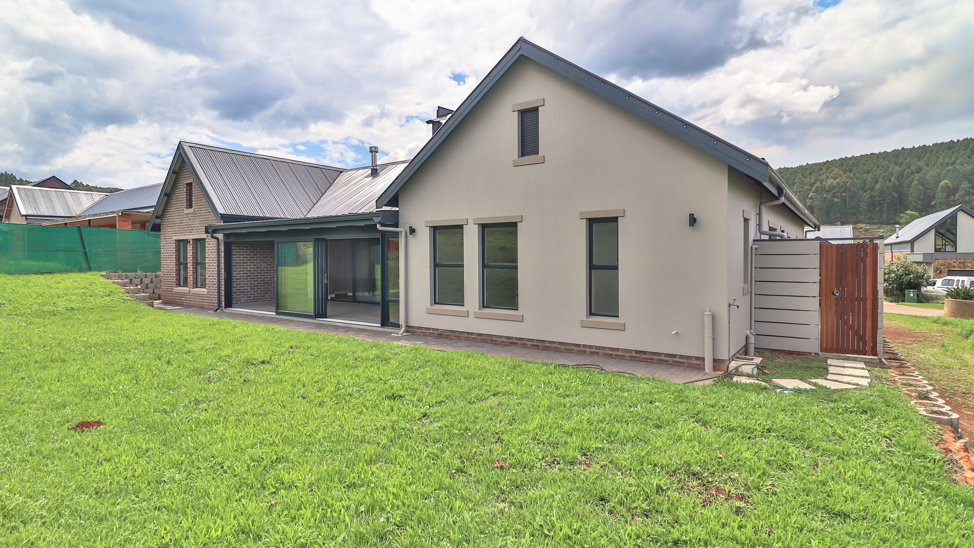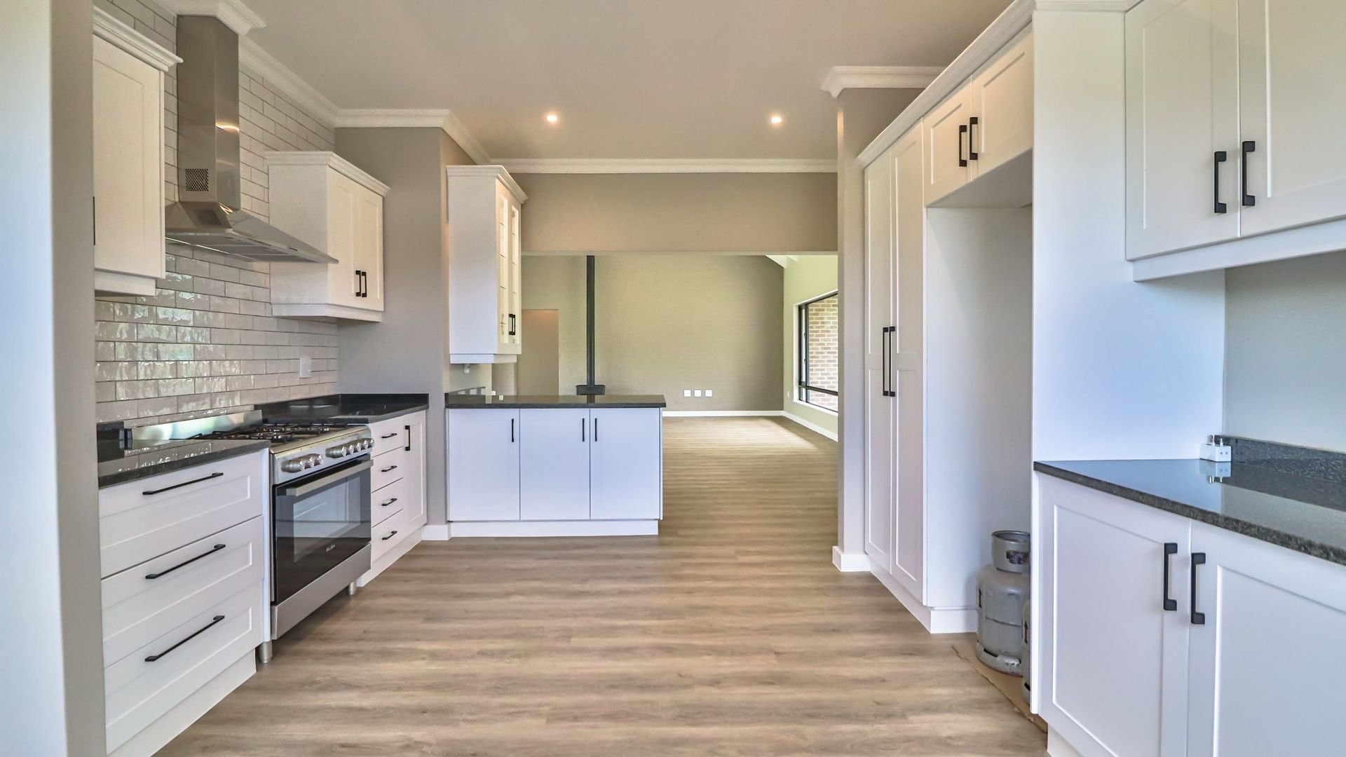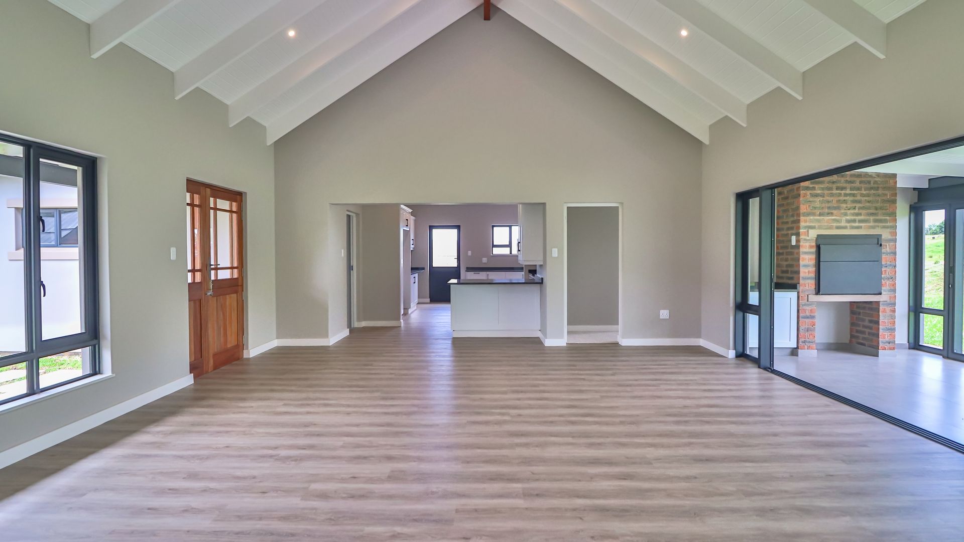 The brick and contrasting plaster home is sunny and light with 2 spacious verandahs, one enclosed with stack doors and boasting an indoor braai, for those cold windy days and the other open for the fresh breezes of summer. The lounge/dining room feel extra spacious with the vaulted ceiling for added character. A wood burning fireplace is situated in this area giving ultimate warmth to both rooms. The open plan kitchen, tastefully designed with a gas hob, electric oven and extractor fan includes a separate scullery.