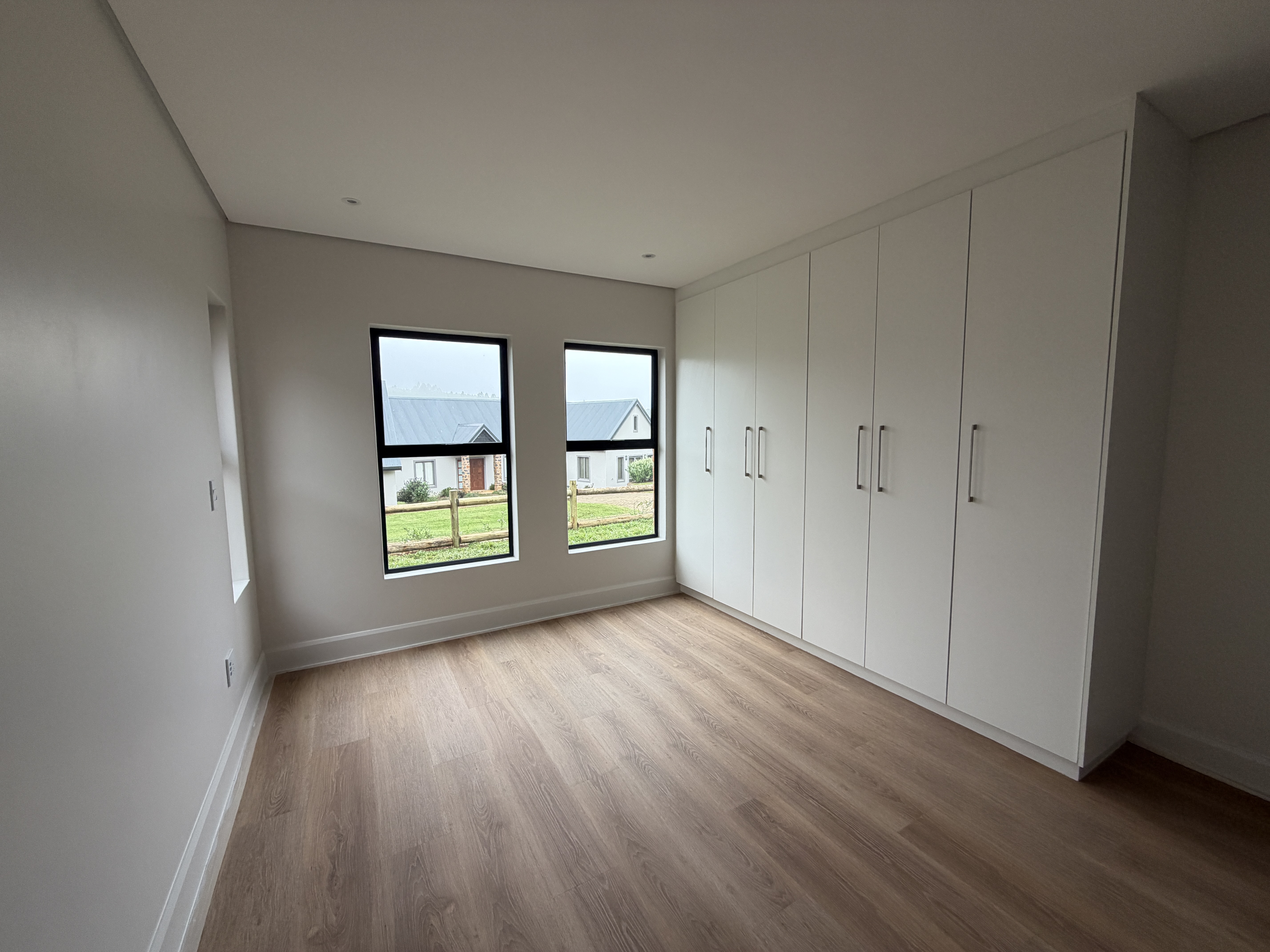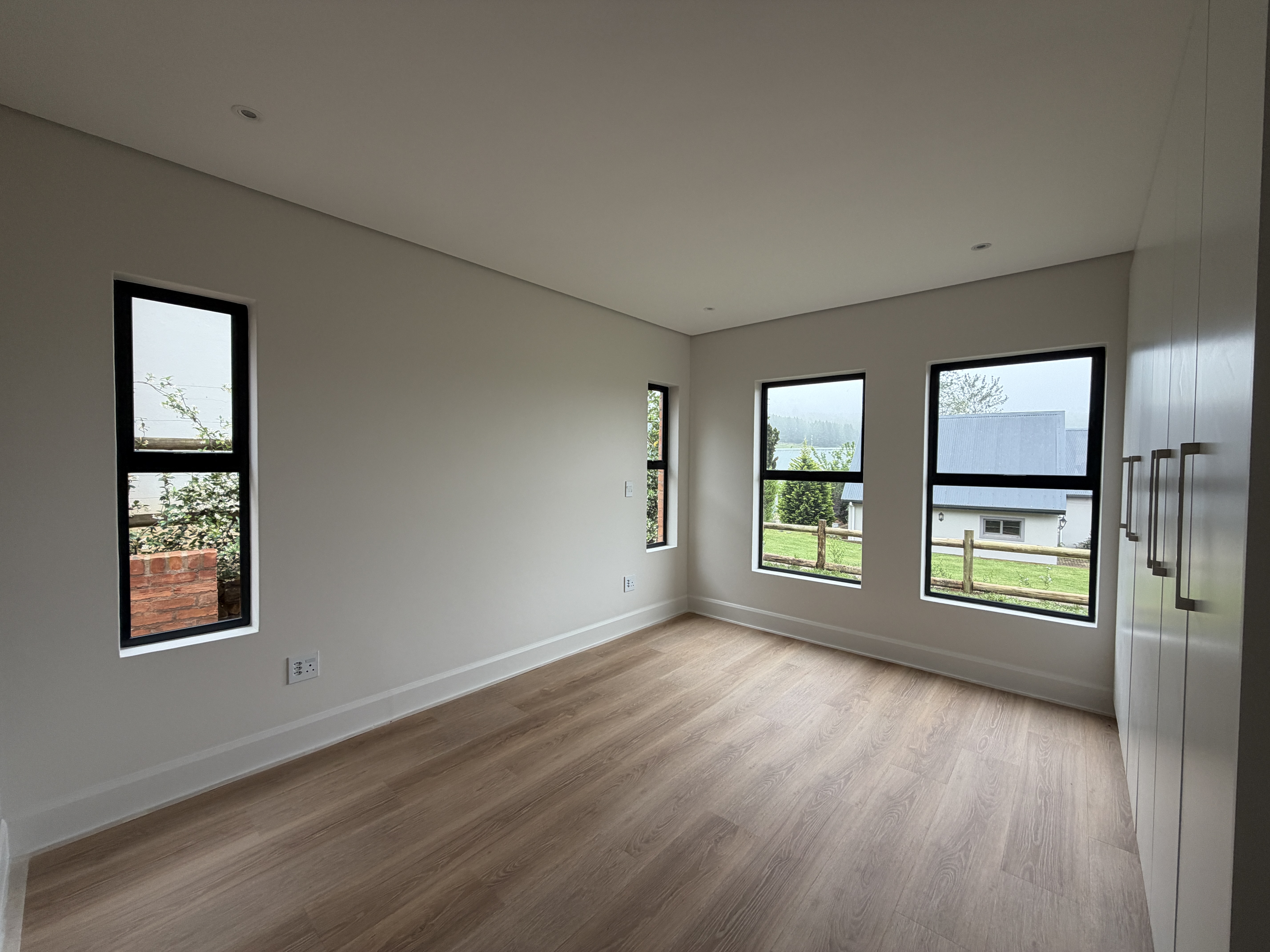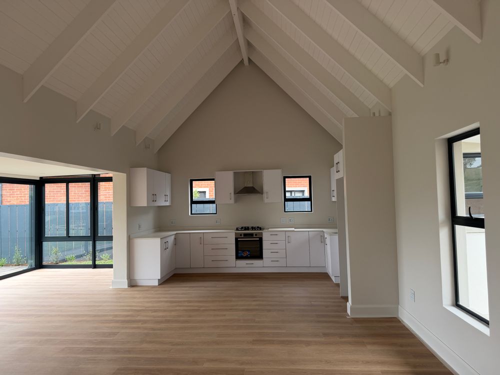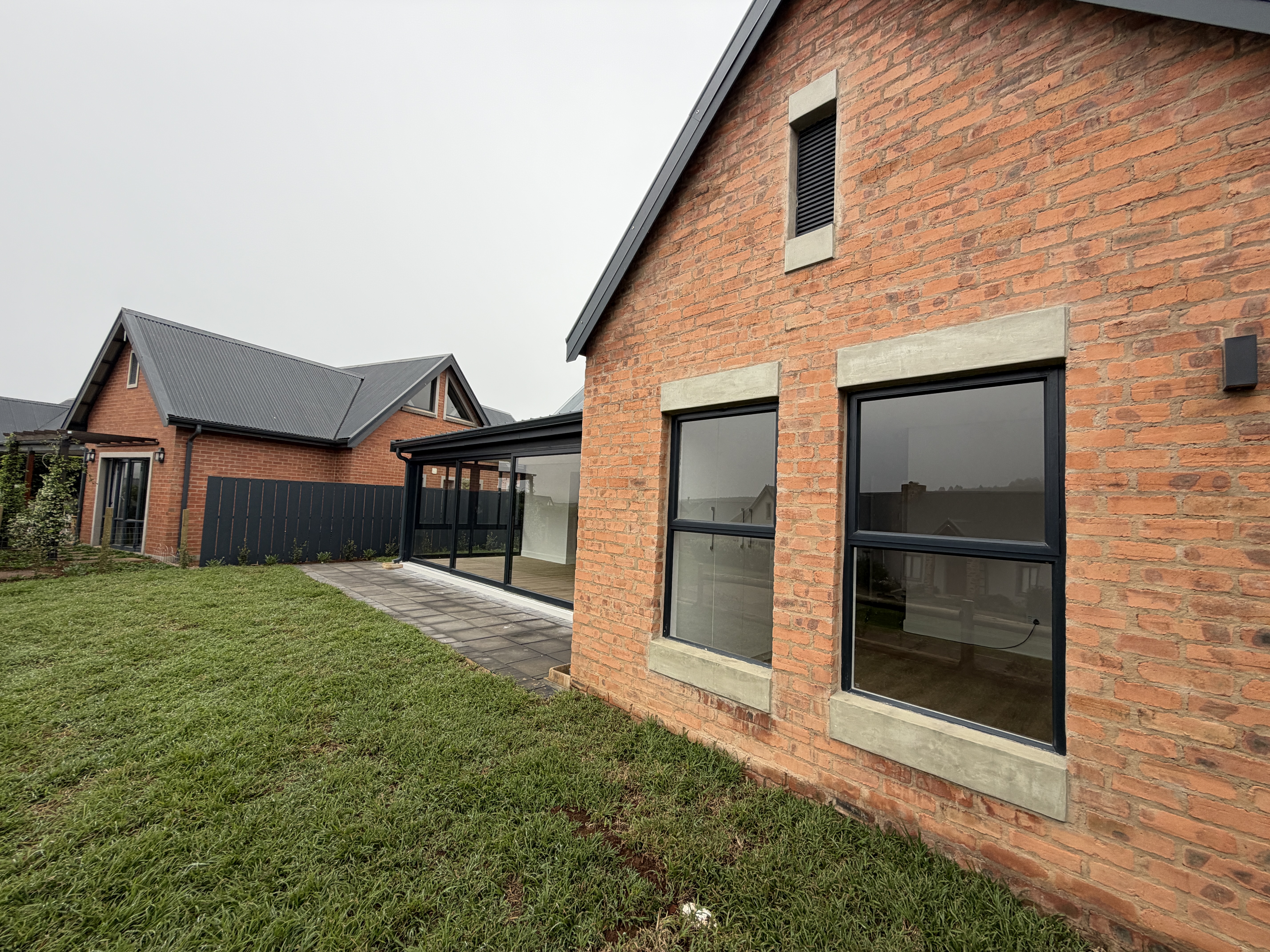 This beautifully designed 2-bedroom, 2-bathroom freestanding home for sale in Hilton offers an exceptional lifestyle within the secure and sought-after St John’s Village Estate. Currently nearing completion, the home enjoys breathtaking views across the vineyards and the open grazing lands where the estate’s resident Nguni herd roam — a true reflection of relaxed Midlands country living blended with modern convenience. The light-filled, double-volume living spaces and stylish vinyl flooring create an inviting, contemporary atmosphere ideal for both entertaining and everyday comfort.