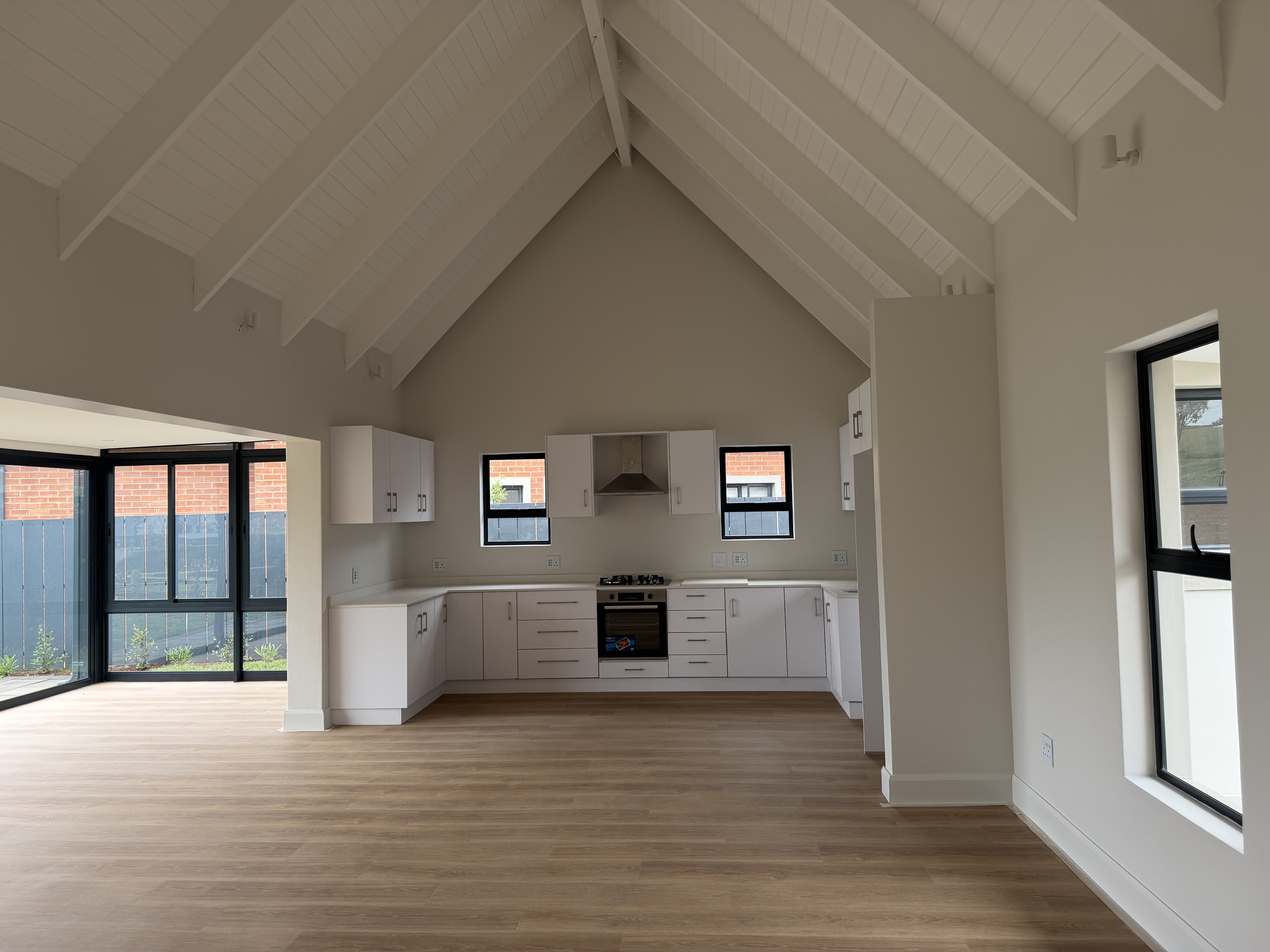The modern kitchen features Caesarstone countertops, a gas hob, and a separate scullery for added practicality. The open-plan design flows seamlessly into the spacious lounge and dining area, complemented by a functional study nook and a glass-enclosed verandah that frames tranquil countryside views. A single garage and protected carport provide secure parking and easy access, completing this low-maintenance and well-priced home that perfectly balances form and function.