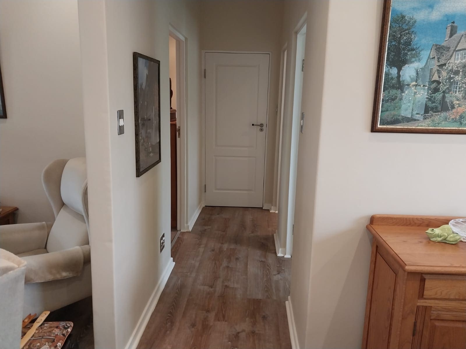 The main bedroom has an en-suite bathroom with a shower, basin and toilet . The other 2 bedrooms are served by another bathroom with a bath, basin and toilet. All the bedrooms have plenty of built-in cupboards.
