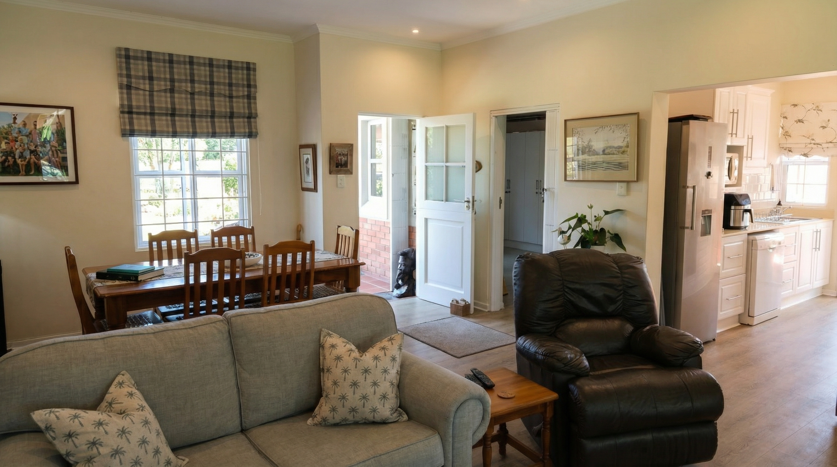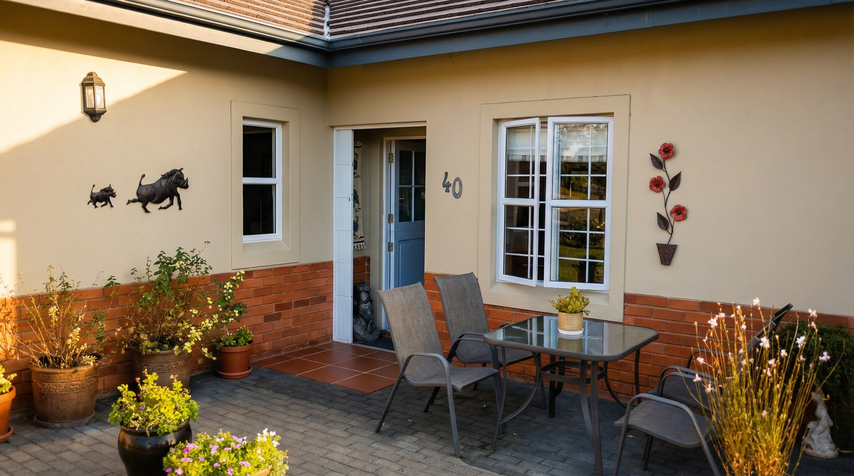 The ready to move in home features generous open-plan living areas that flow seamlessly to a private patio, creating wonderful an indoor-outdoor living space ideal for entertaining or quiet enjoyment of the natural surroundings. The kitchen is well laid out with excellent storage and practicality, while the bedrooms are comfortably sized, with the main bedroom enjoying its own ensuite bathroom and access to the enclosed veranda. The double garage, with laundry and additional cupboard space, provides secure parking and additional convenient access to the house.. Solar panels and an invertor is the cherry on the top, A gas geyser ensures hot water for the bathrooms and kitchen.