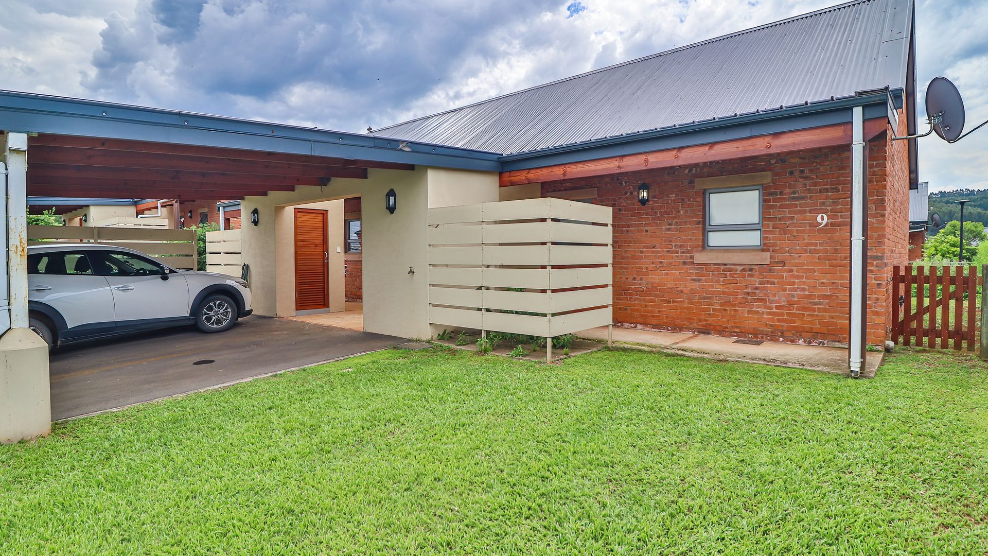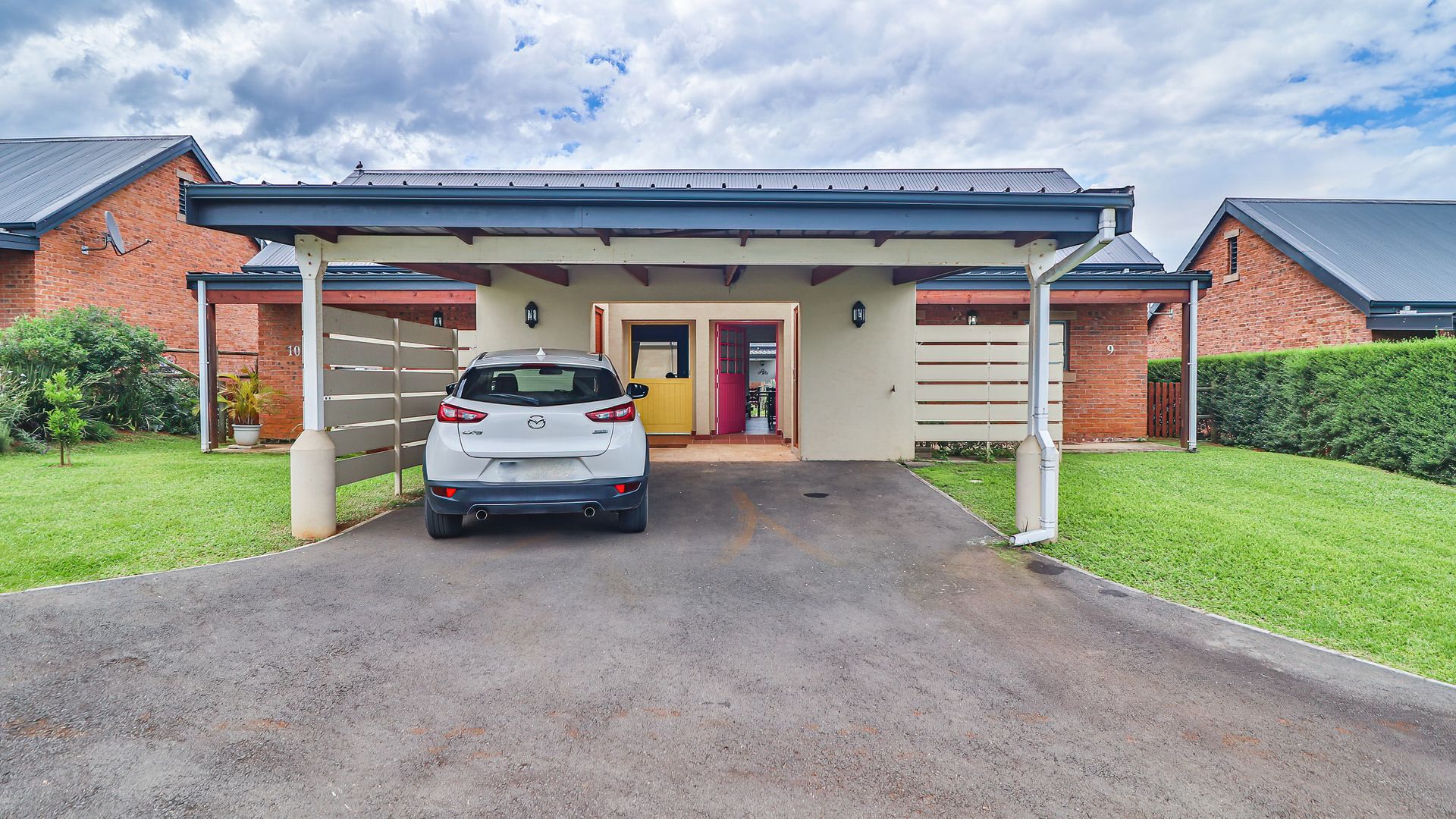 A single carport, +-18sqm is conveniently placed at the front of the unit which leads to a covered verandah and the front entrance. To the right of the entrance there is a compact storeroom which can accommodate a washing machine below the shelving.