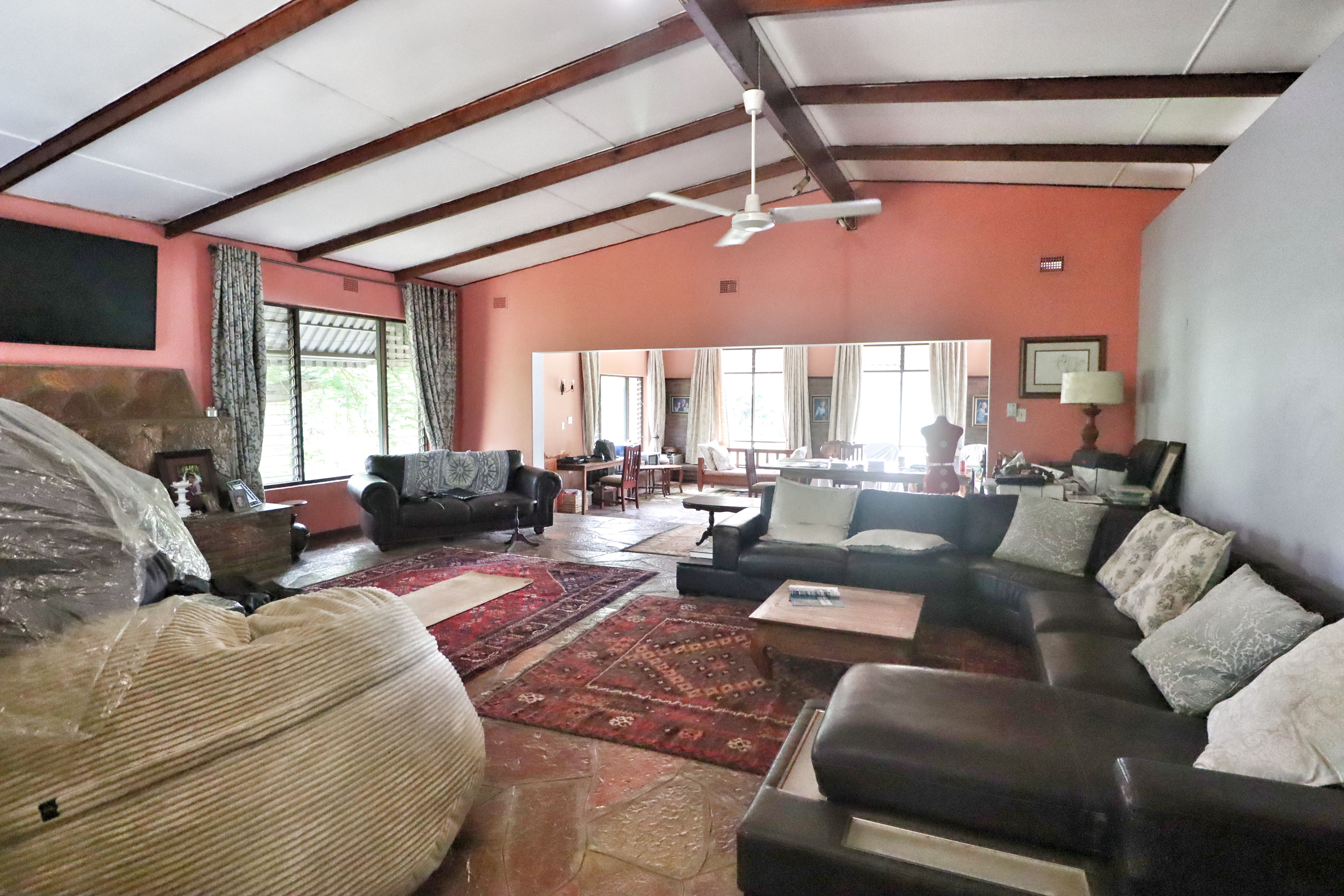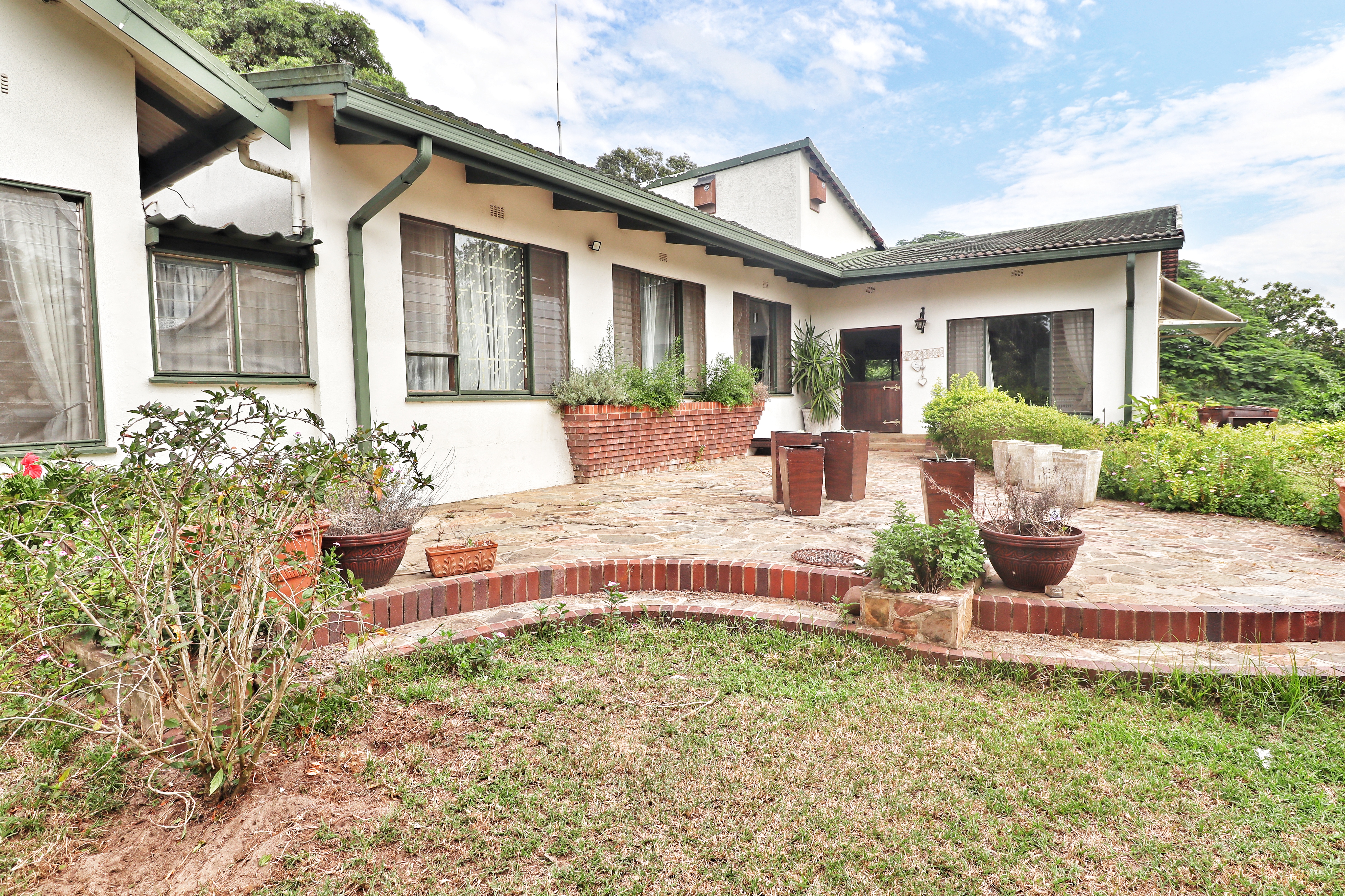 Stunning small holding in the beautiful and secure Monzi community, 15 minutes outside St Lucia. The over 4-hectare property boasts a wonderfully spacious 5-bedroom home, additional 3-bedroom cottage, separate outside office, stables, domestic quarters with multiple rooms, 2 x double garages, an outside laundry room and stables.