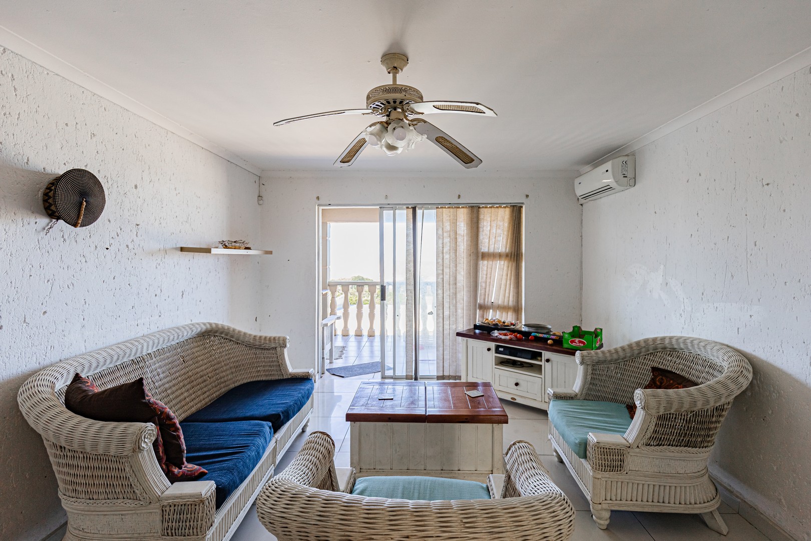 The main bedroom has an en-suite bathroom and sliding doors which lead to the balcony that has stunning sea view. All 3 bedrooms have built in cupboards, ceiling fans and are well sized. The guest bathroom consists of a bath, toilet and basin. The kitchen is open plan and has a breakfast nook. The lounge opens up to the balcony where you can enjoy outside dining and relaxation. Each unit has its own designated garage as well as visitors parking. The complex is fully walled with an automated gate.