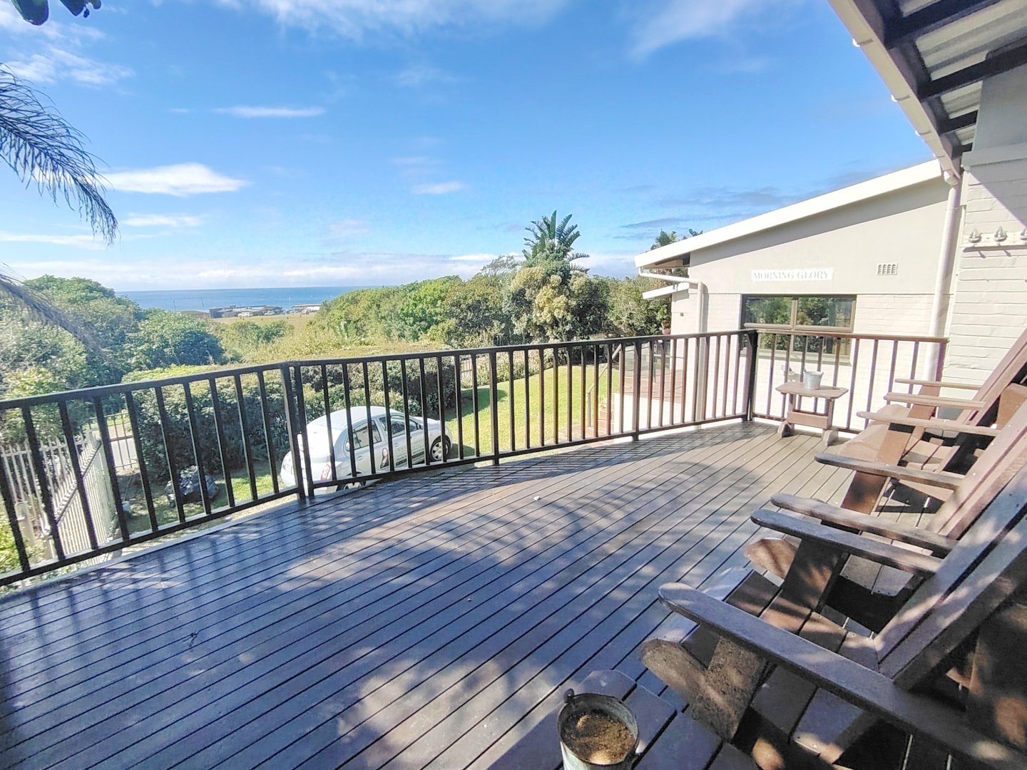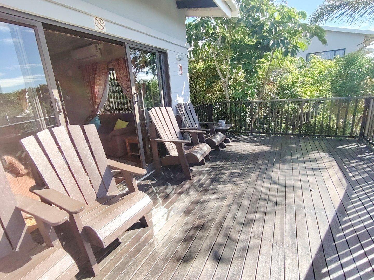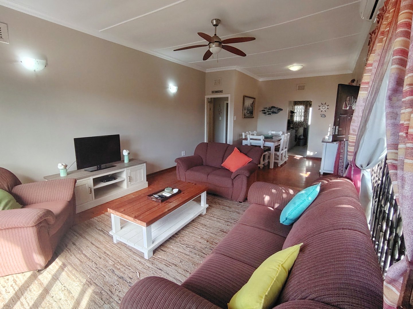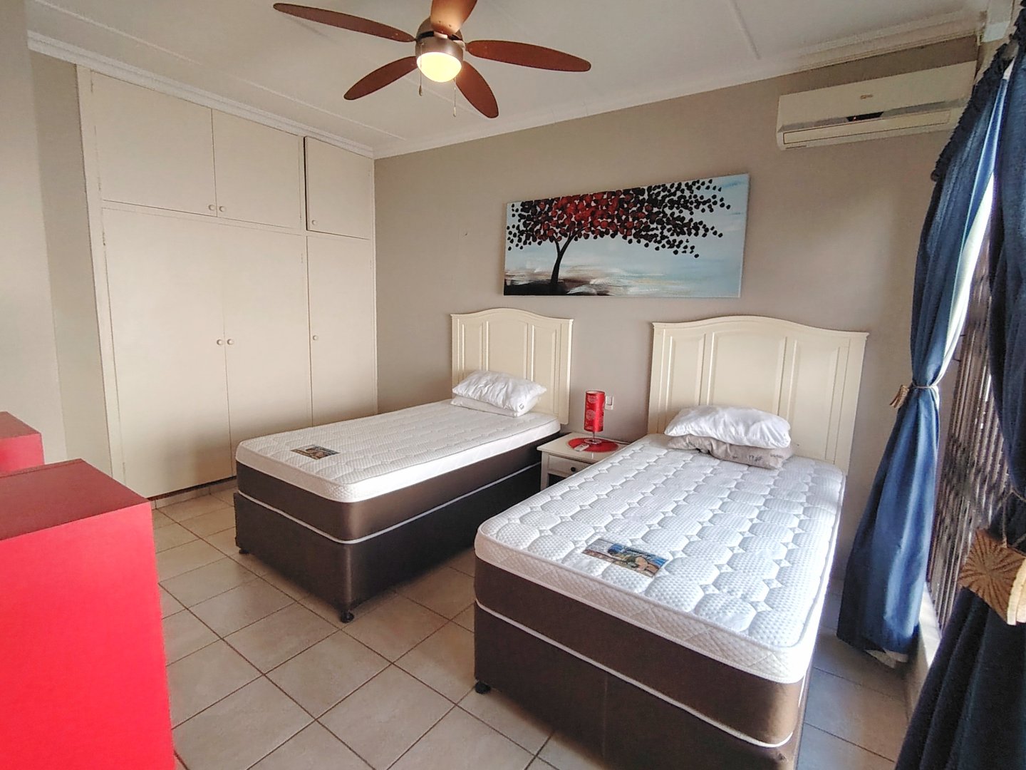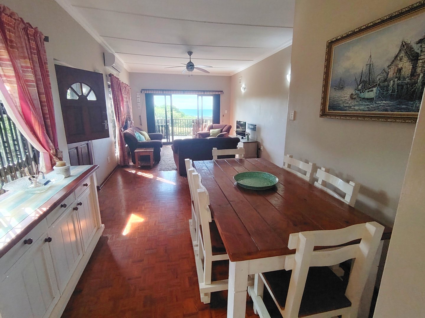 Take a walk through this gorgeous newly renovated unit, all windows, door and burglar bars are aluminium . When entering the complex, the unit is to the right with a single garage and a wooden deck that provides an additional parking in the shade. With ten steps to the door, you enter a spacious open plan dining room / lounge. The lounge offers an air conditioning and is spacious and flows out onto a wooden deck with gorgeous sea views and the unit is walking distance to St Michaels Beach. The lounge, dining room and entrance hall has parquet floors and the rest of the unit is tiled. Moving back into the unit, the dining room is next to the lounge and the practical kitchen with electrical oven / stove, granite tops and a lot of cupboard space will steal your heart. The back door leads to a private court yard with an outside shower, concrete table and bench and braai facility. Let's explore further, the main bedroom is massive and has it's own lounge area with sea view and build in cupboards. The bathroom is just on the other side of the entrance hall with a shower, basin and toilet. The second bedroom is facing the court yard - it's spacious with build in cupboards and it's own bathroom (shower, basin and toilet). This unit is ideal for holiday rentals and or permanent living on the lower South Coast of Kwazulu-Natal.