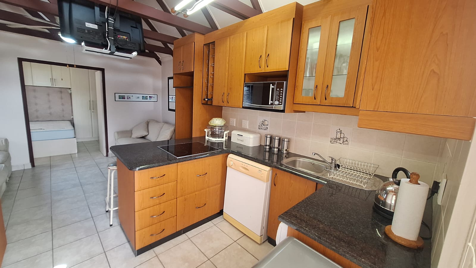 Conveniently located in the heart of Uvongo, this well-appointed apartment is within walking distance of all local amenities and the beautiful Uvongo Beach. The apartment features a spacious, well-equipped open-plan kitchen, a cozy lounge and TV, a generously sized bedroom with built-in cupboards, and an en-suite bathroom. The modern bathroom is neatly maintained and includes a shower. There is a lot of extra cupboard space in this apartment and is also sold with extras such as a microwave, air fryer, washing machine, tumble dryer, dishwasher, etc. A small balcony offers additional versatility and creates extra living space or a dining area. The complex boasts excellent facilities, including undercover parking, a large communal swimming pool, and an expansive undercover lapa with braai facilities—ideal for social gatherings. Whether you're seeking a convenient holiday retreat or a comfortable permanent residence, this apartment is a fantastic opportunity. Contact me today to arrange a viewing!
