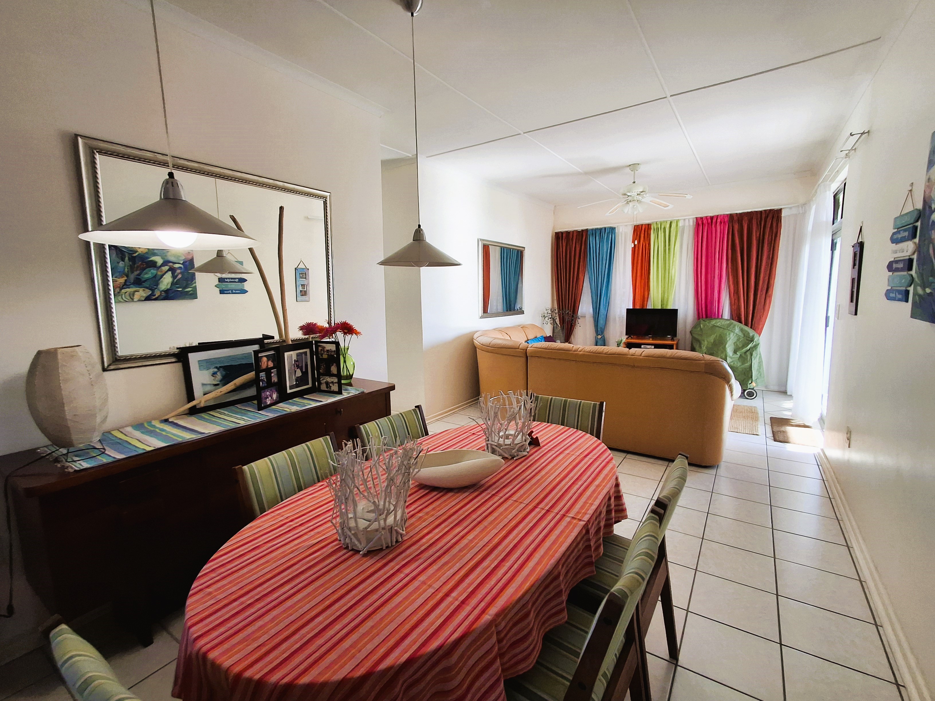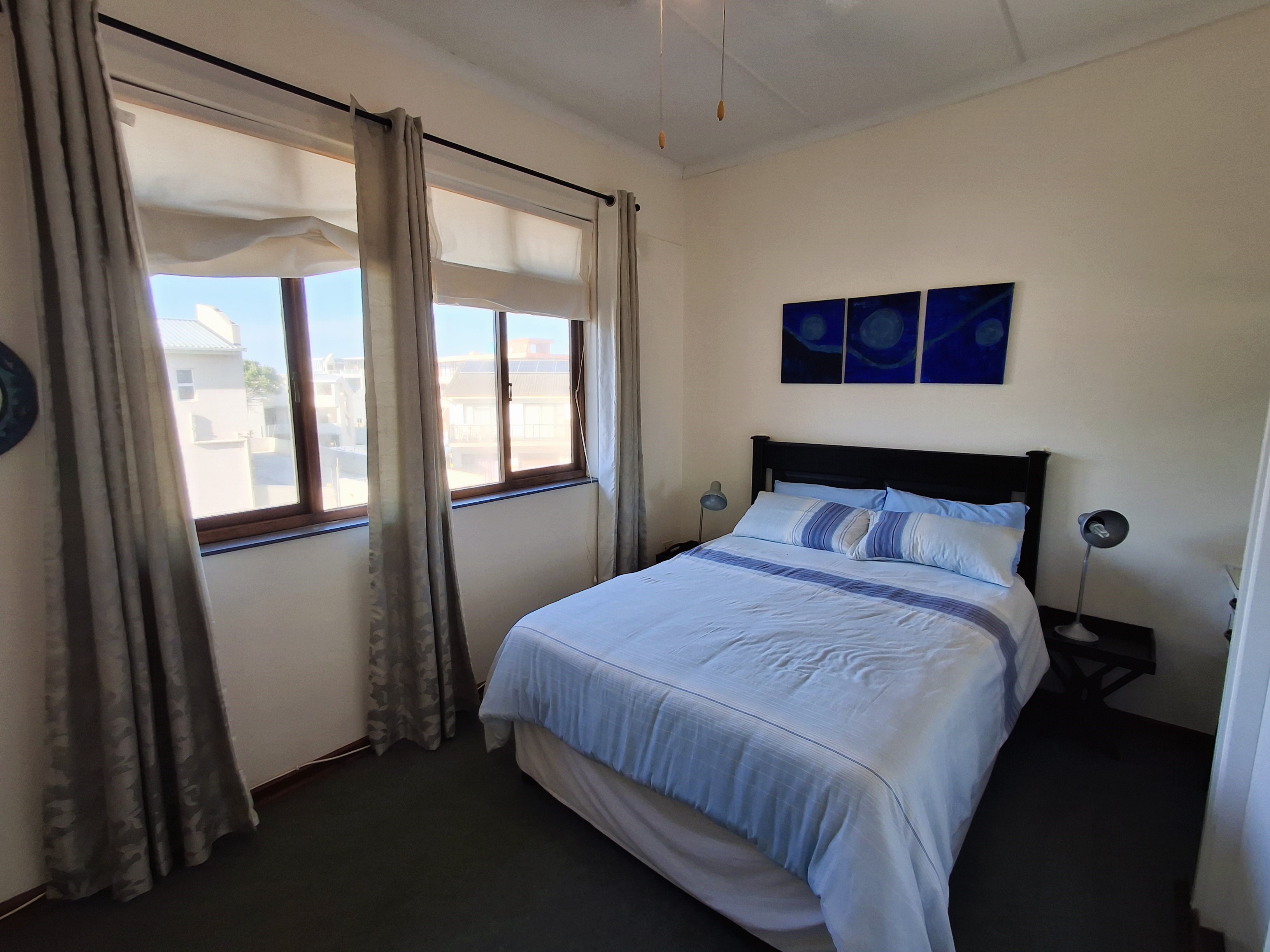 Step into an airy open-plan lounge, dining, and kitchen area, fully equipped to comfortably accommodate six guests. The patio and lounge offer stunning sea views, and with gas and charcoal braais allowed, it’s the ideal space for relaxing or entertaining.