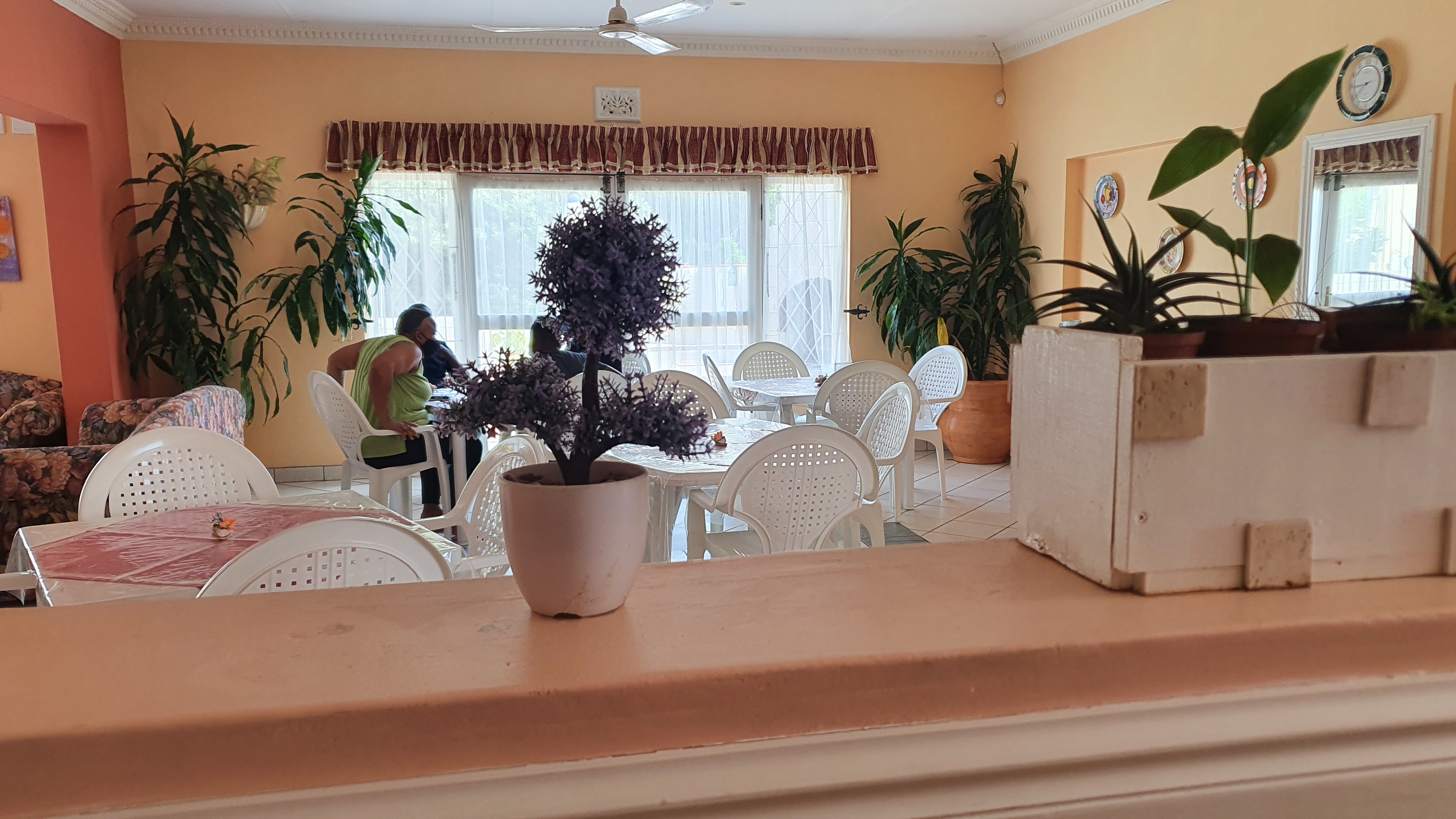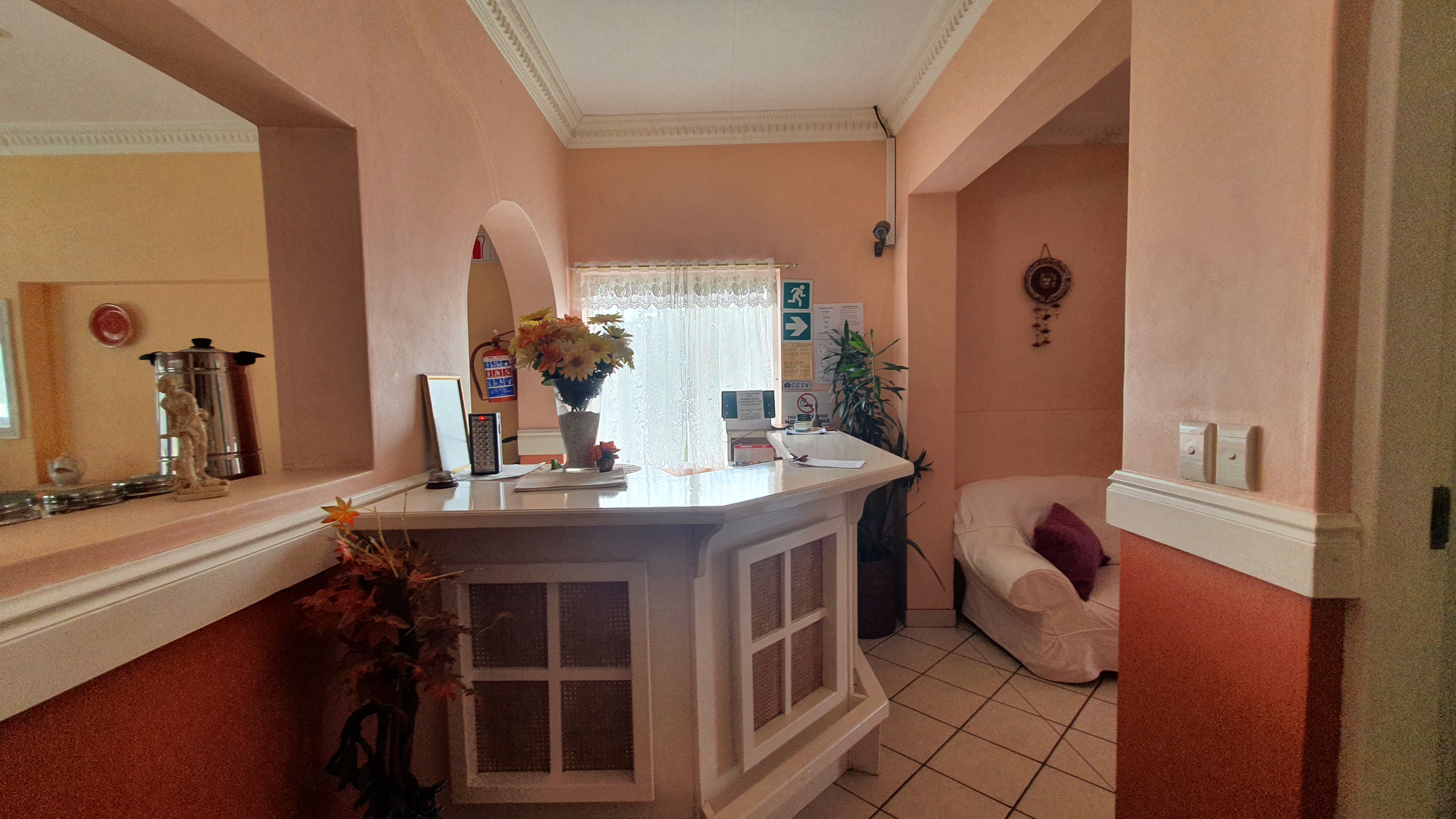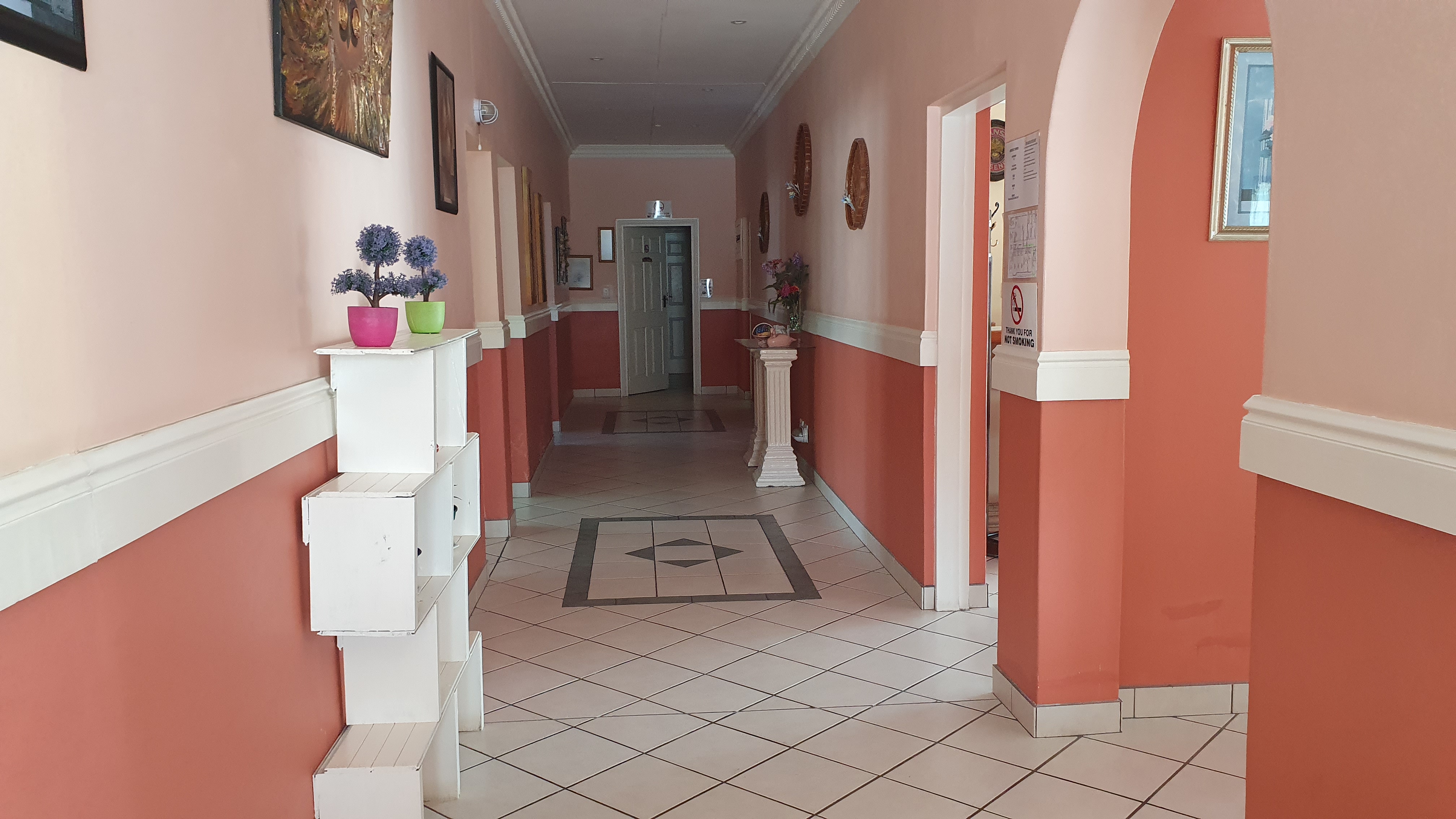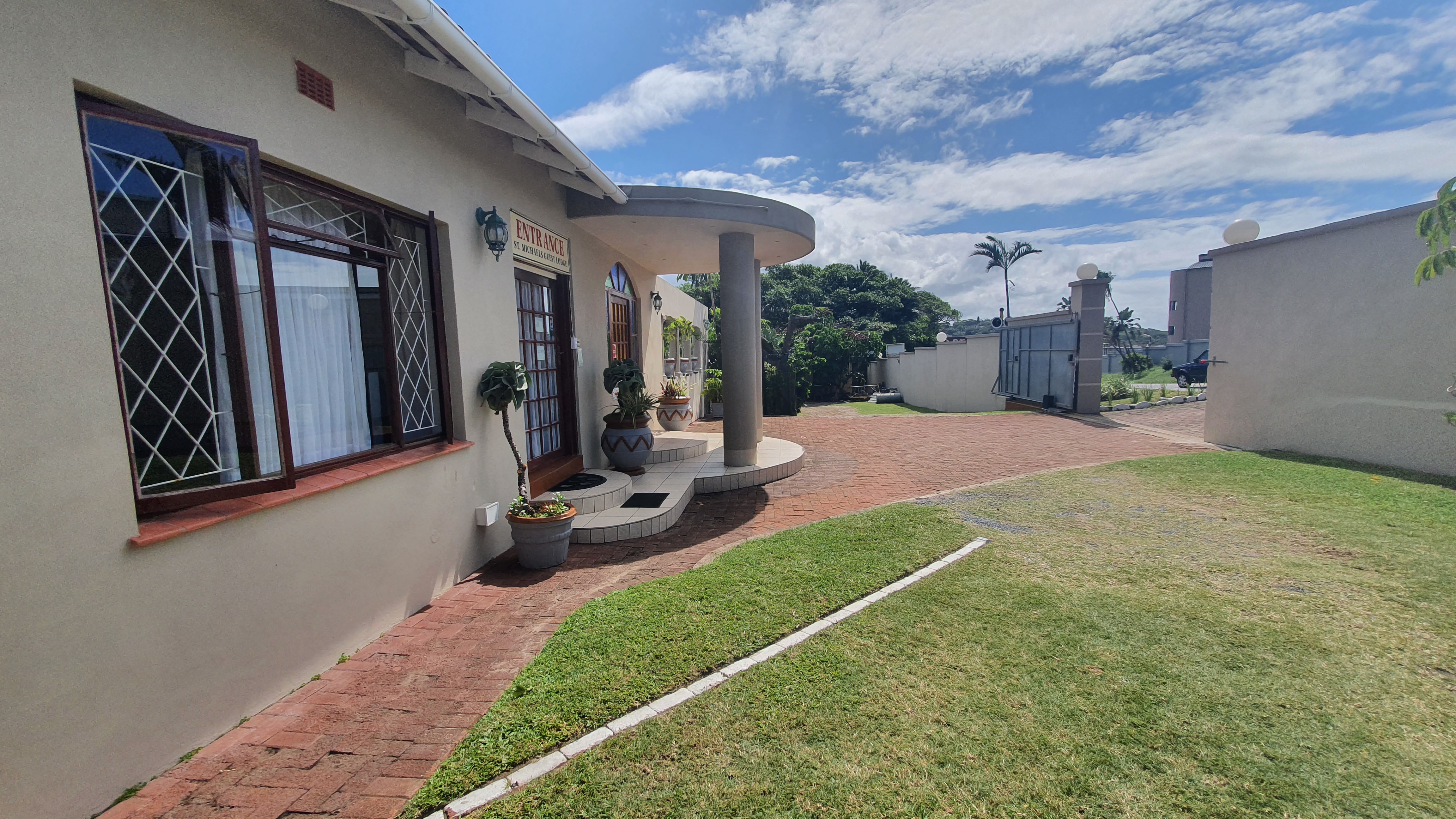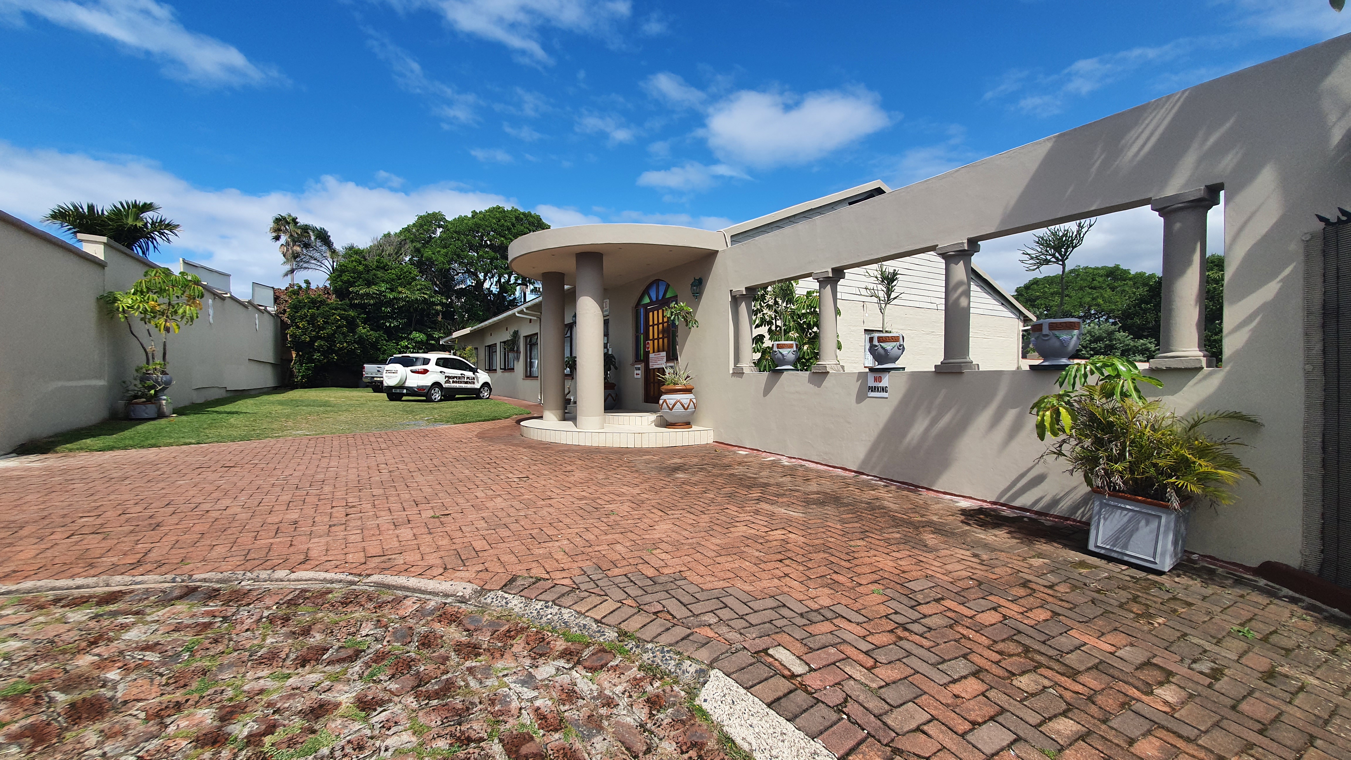 Welcoming entrance, enough parking.