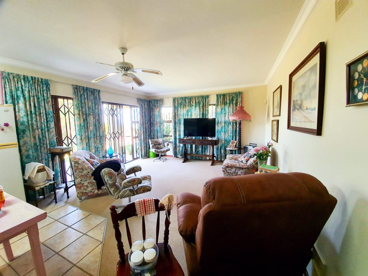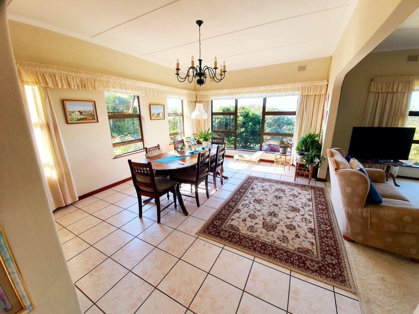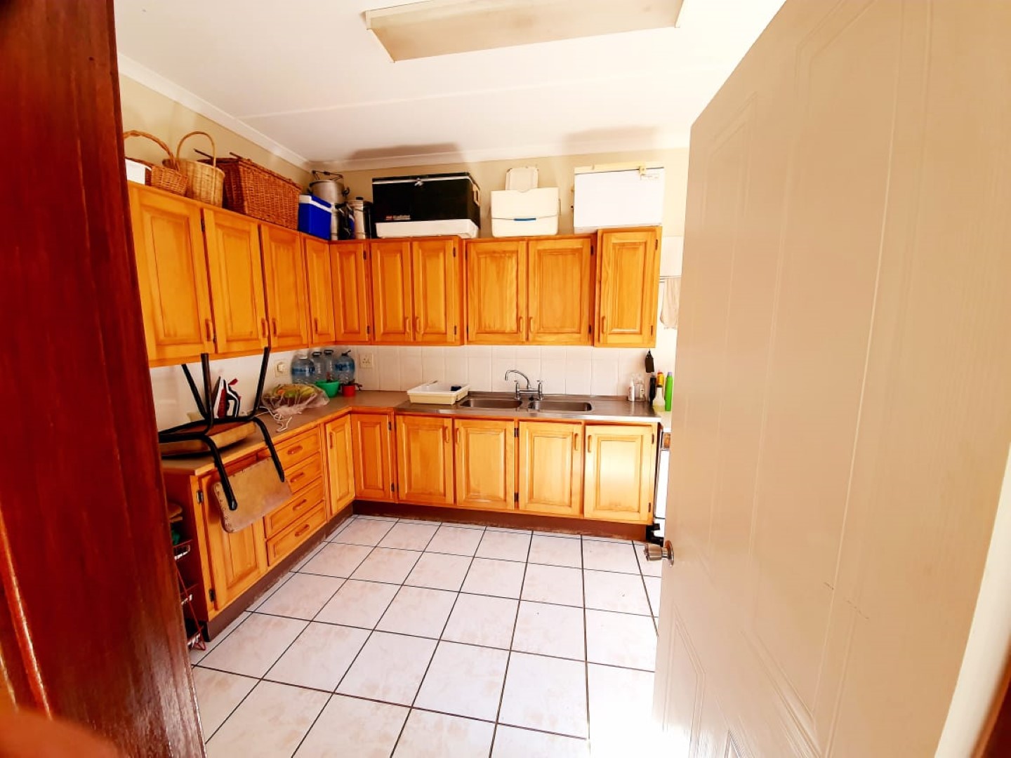 There is an over sized double garage and 3 carports, another 2 bedroom flat, lounge, open plan to kitchen and 2 bathrooms. There are 2 solar geysers which reduces the expense of the electricity bill.